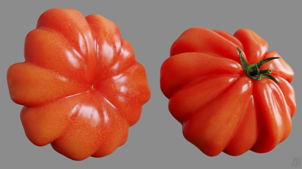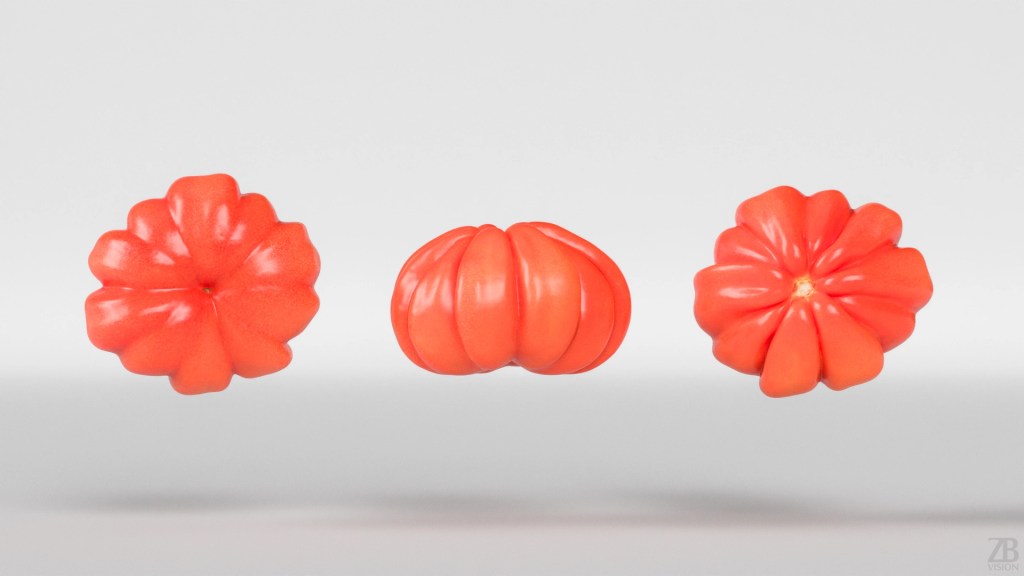 Photorealistic 3D tomato model, Aumônière/cœur de bœuf variety