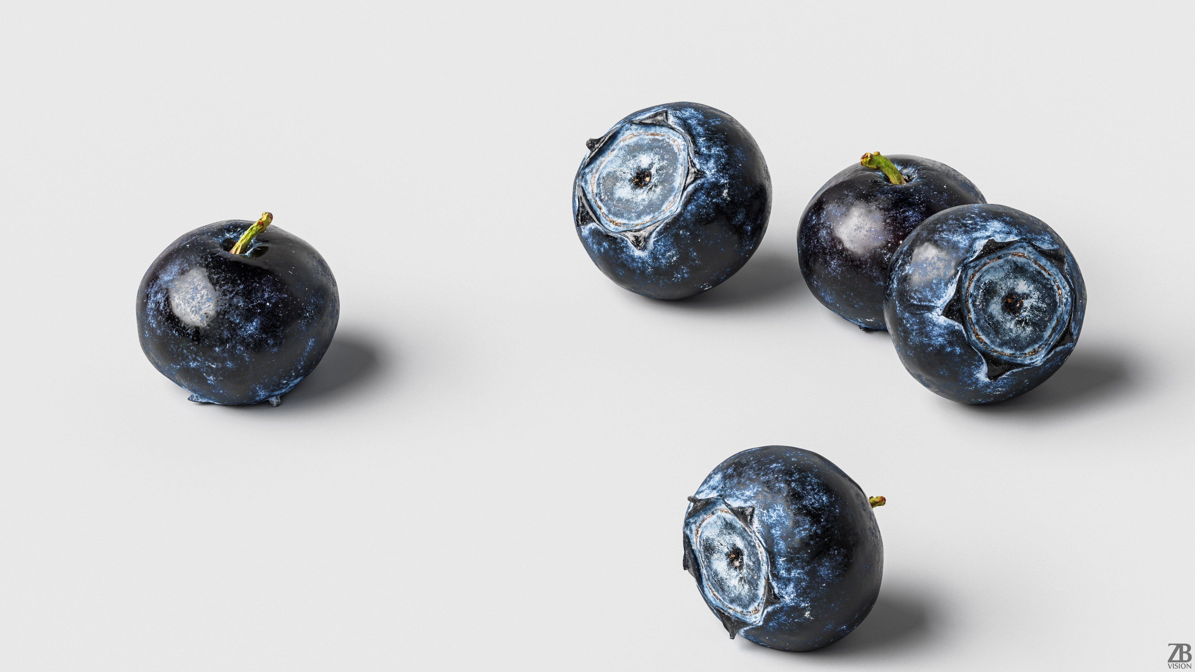 This is a 3d model of a blueberry. It was modeled and prepared for photorealistic renderings, close-ups, stills and animation. The blueberry model is ready to be inserted in your scene out of the box.