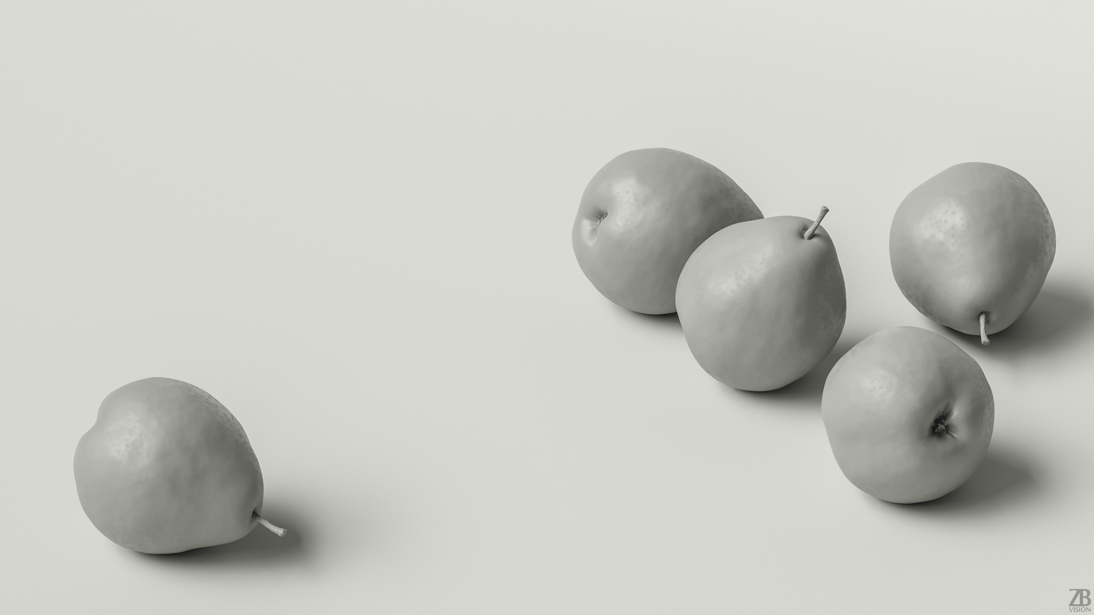 5 maps are supplied with this model. 8192×8192 16bit PNGs and downsampled version in 2048×2048 JPGs. The maps include diffuse, AO, specular, normal, displacement. A 16K diffuse texture is also included. The pear model is uvw unwrapped.