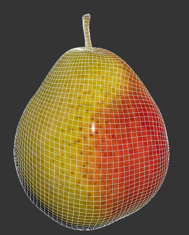 The pear model is presented as single mesh in 2 versions. Mesh is quad based. Base model polycount is 5k. High detail model included in .max and .obj formats. High detail model has 1273k quads.