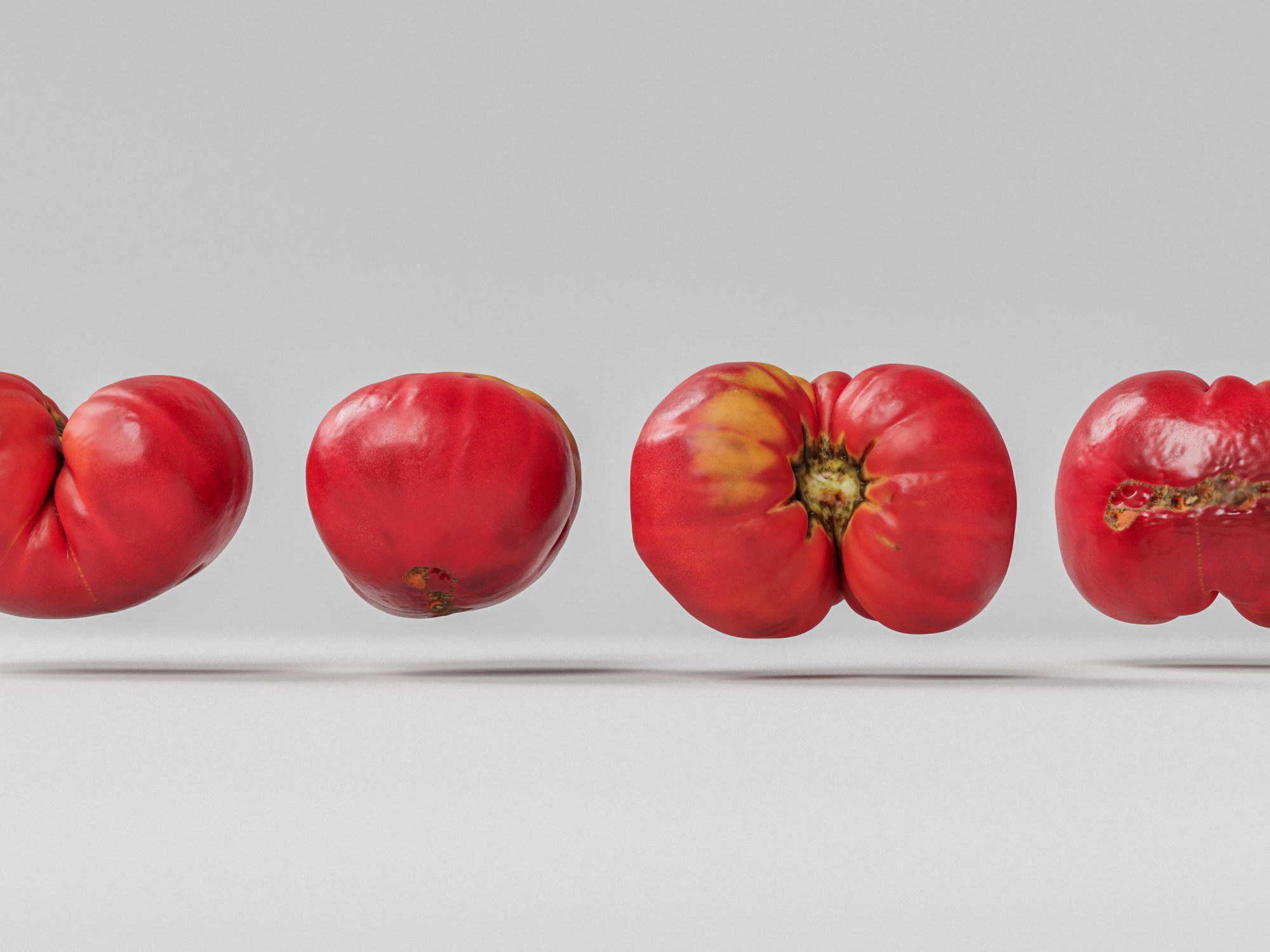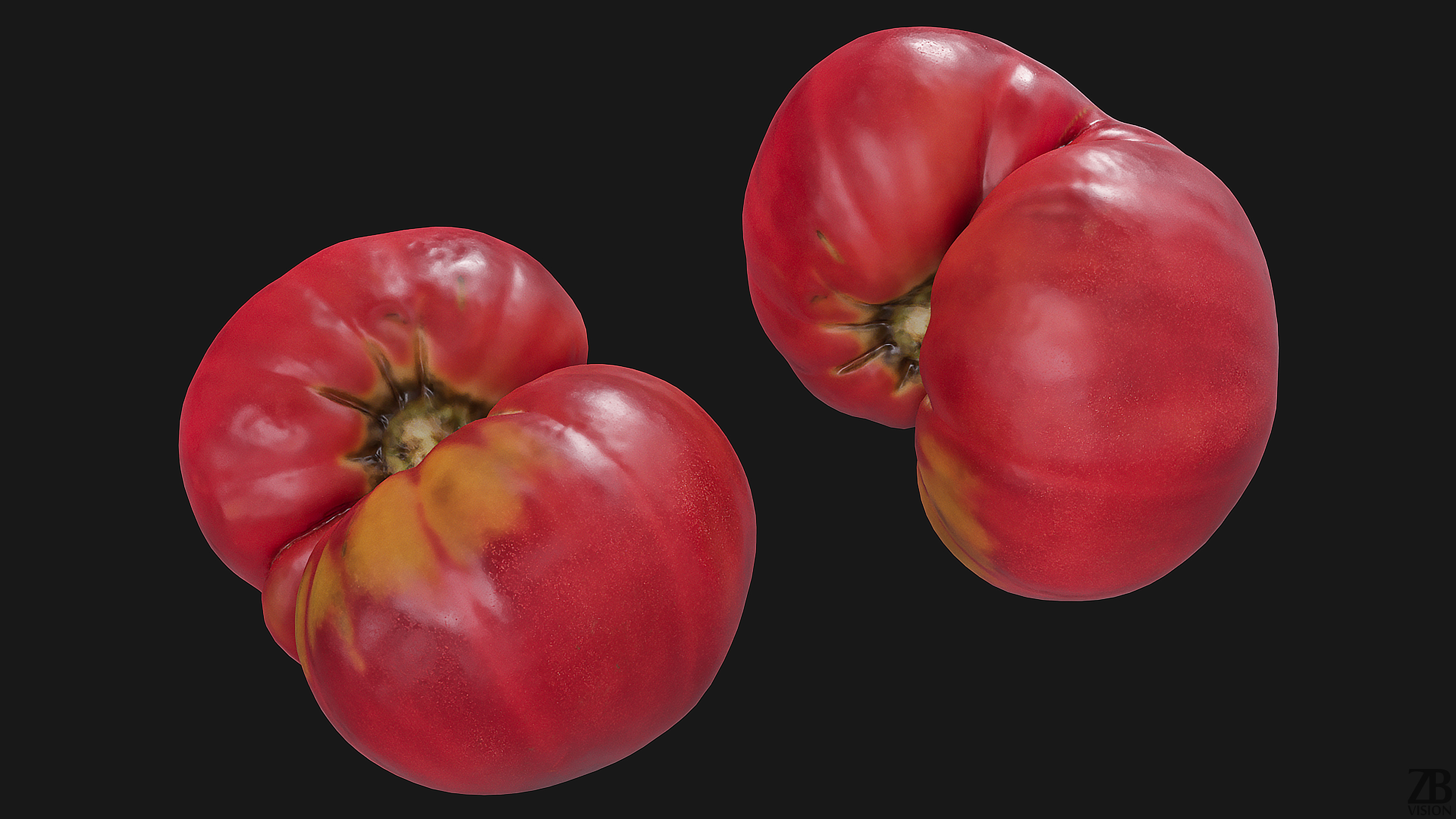 5 maps are supplied with this model. 8192×8192 PNGs and downsampled version in 2048×2048 JPGs. The maps include diffuse, AO, specular, normal, displacement. The tomato model is uvw unwrapped. A 16K diffuse map is also included.