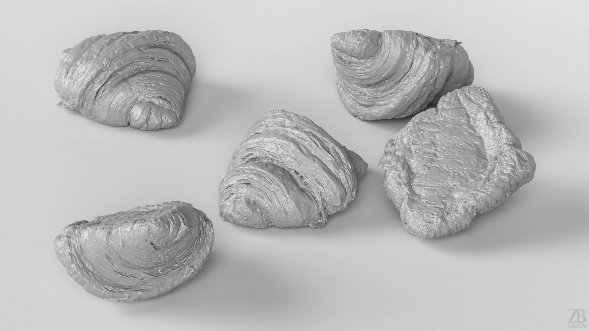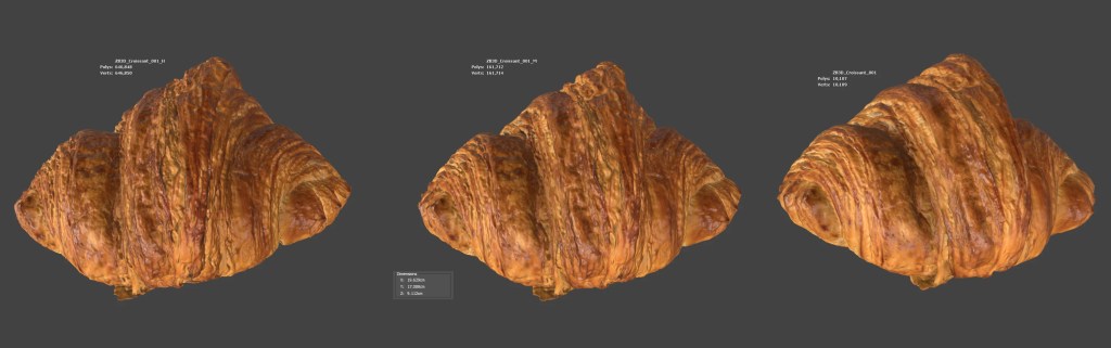 Enhance your visualizations, product designs, or still-life projects with this 3D croissant model. It boasts multiple levels of detail (10K, 161K, 646K polycounts)