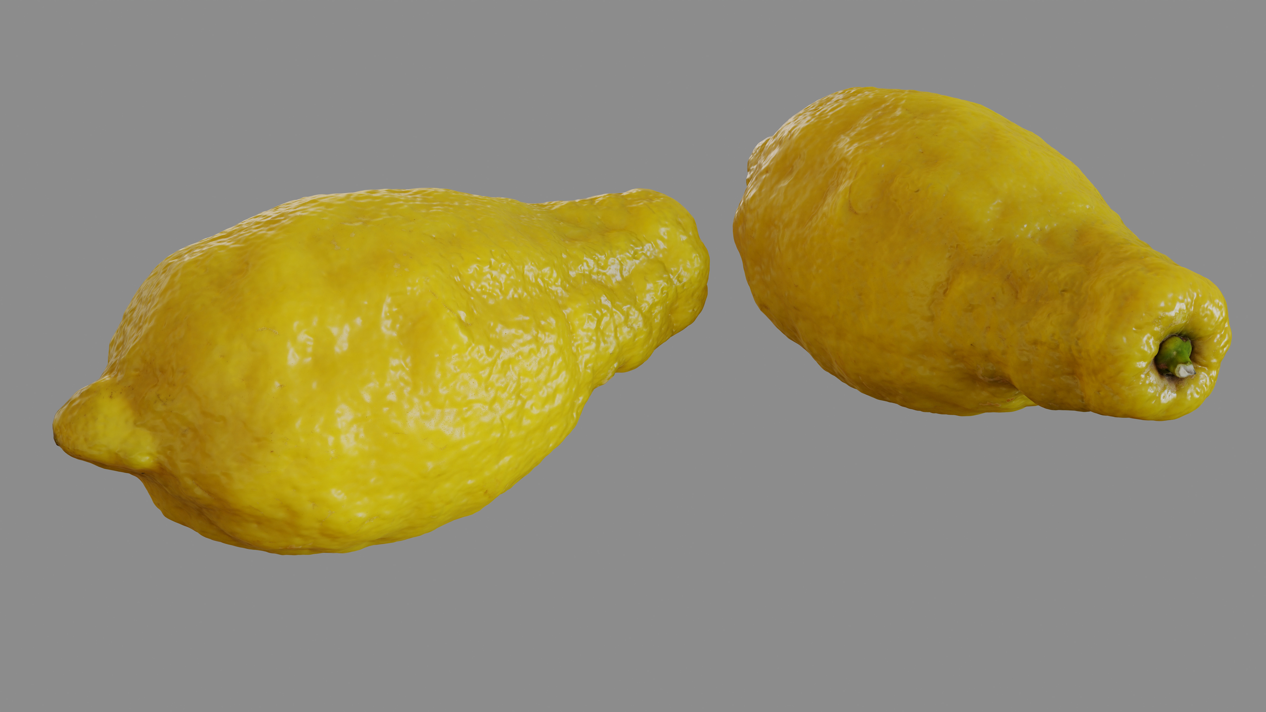 5 maps are supplied with this model. 8192×8192 PNGs and downsampled version in 2048×2048 JPGs. The maps include diffuse, AO, glossiness, normal, displacement. A 16K diffuse map is also included. The citron lemon model is uvw unwrapped.