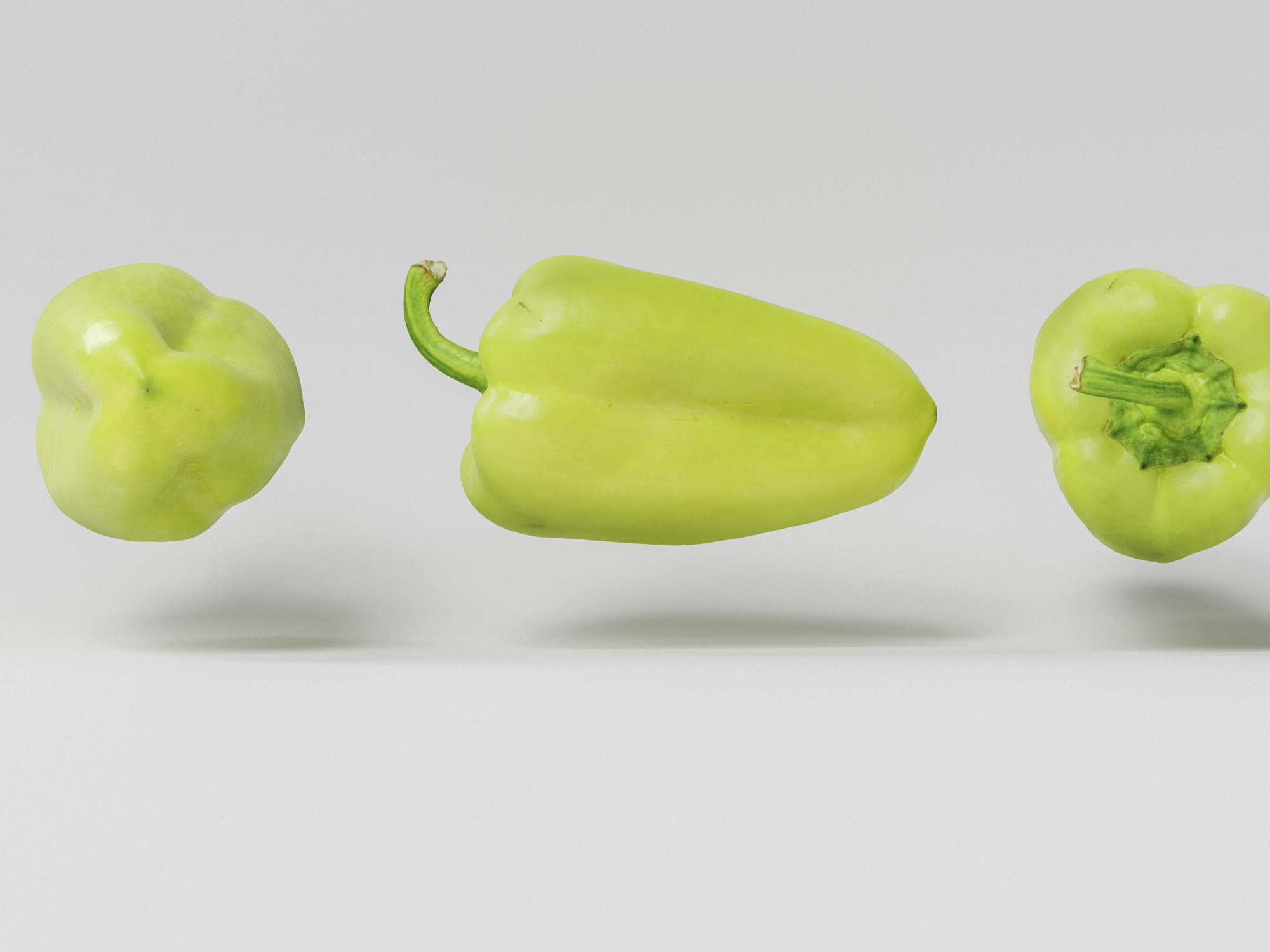All preview images were rendered with Corona. You will get only the paprika bell and not the scenes used for the preview renders. Please also take into consideration that the preview images are the result of the post-production and the look of bell pepper 3d model in your scene may differ due to the specific settings of your own scene. Product is ready to render out-of-the-box. Please note that the lights, cameras, and any background not described above objects are not included in the product. The model is clean and alone in the provided files, centred at origin and has real-world scale.