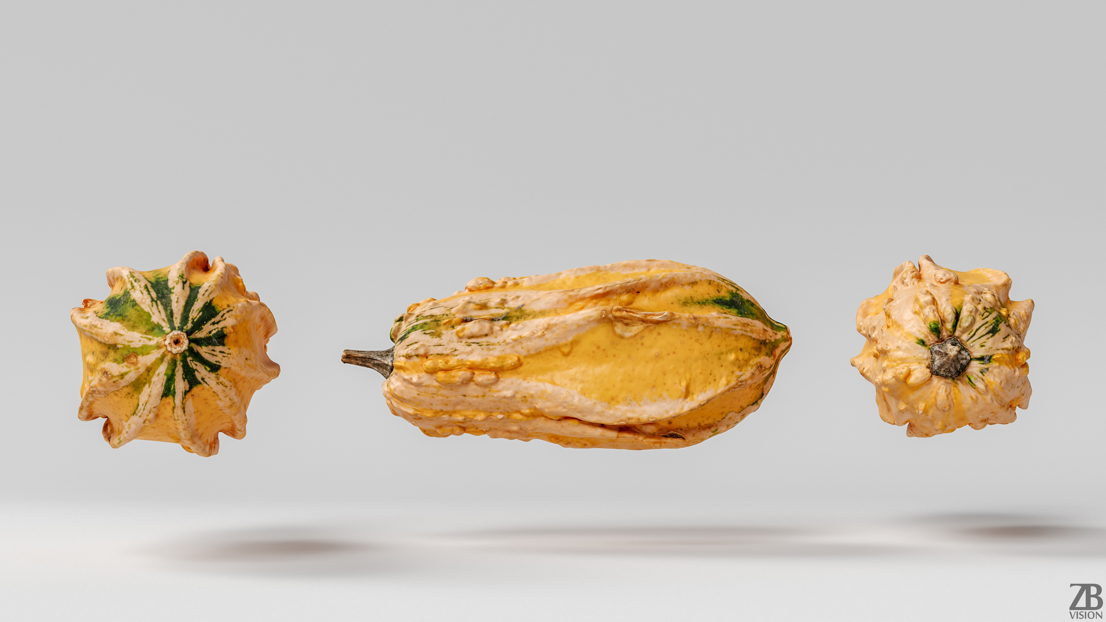 This is a 3d model of a decorative pumpkin/squash/gourd. It was modeled and prepared for photorealistic renderings, close-ups, stills and animation. The squash model is ready to be inserted in your scene out of the box.