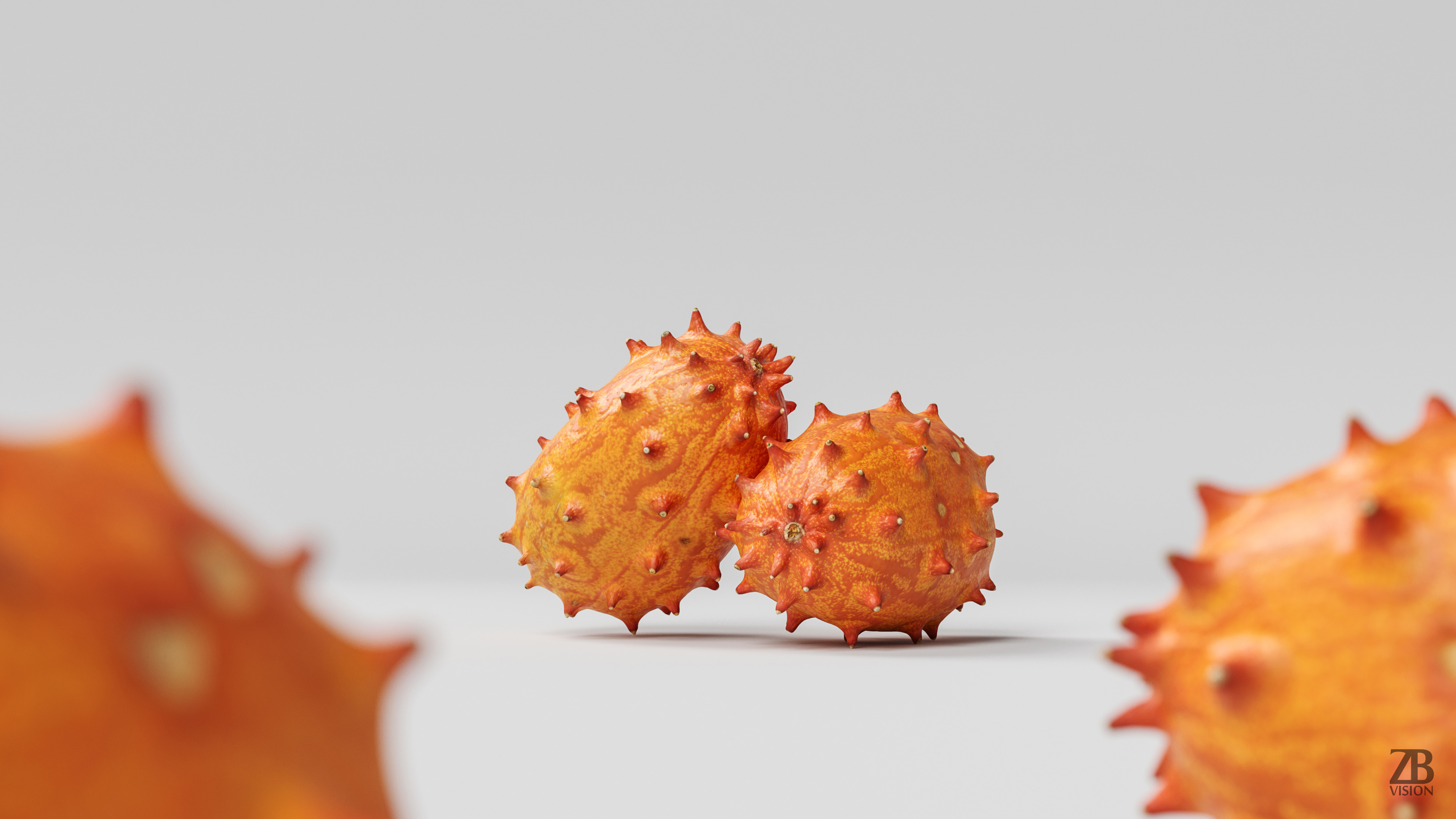 This is a 3d model of a kiwano. It was modeled and prepared for photorealistic renderings, close-ups, stills and animation. The horned cucumber model is ready to be inserted in your scene out of the box.