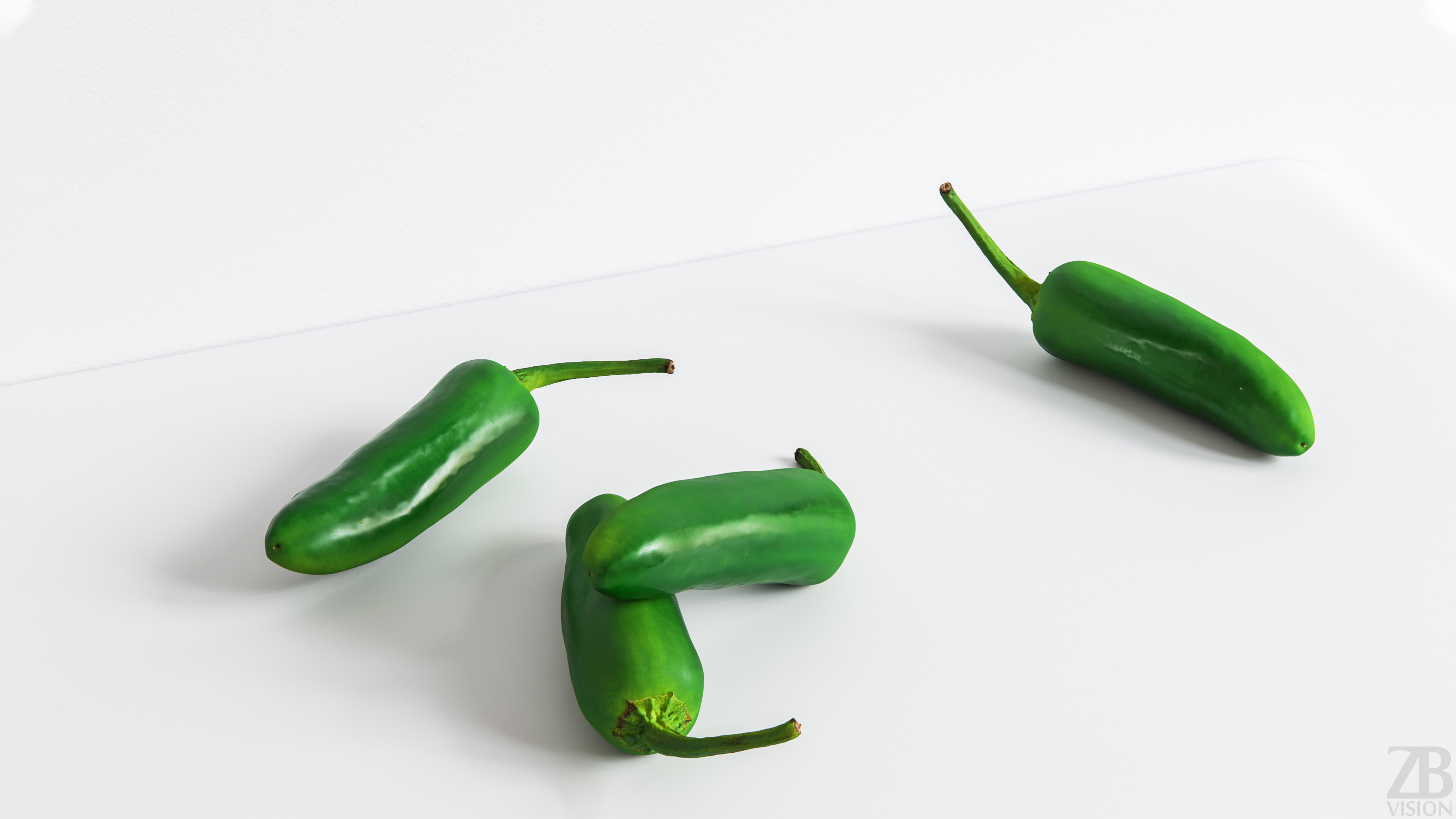 All preview images were rendered with Corona. You will get only the jalapeno pepper and not the scenes used for the preview renders. Please also take into consideration that the preview images are the result of the post-production and the look of jalapeno 3d model in your scene may differ due to the specific settings of your own scene. Product is ready to render out-of-the-box. Please note that the lights, cameras, and any background not described above objects are not included in the product. The model is clean and alone in the provided files, centred at origin and has real-world scale.