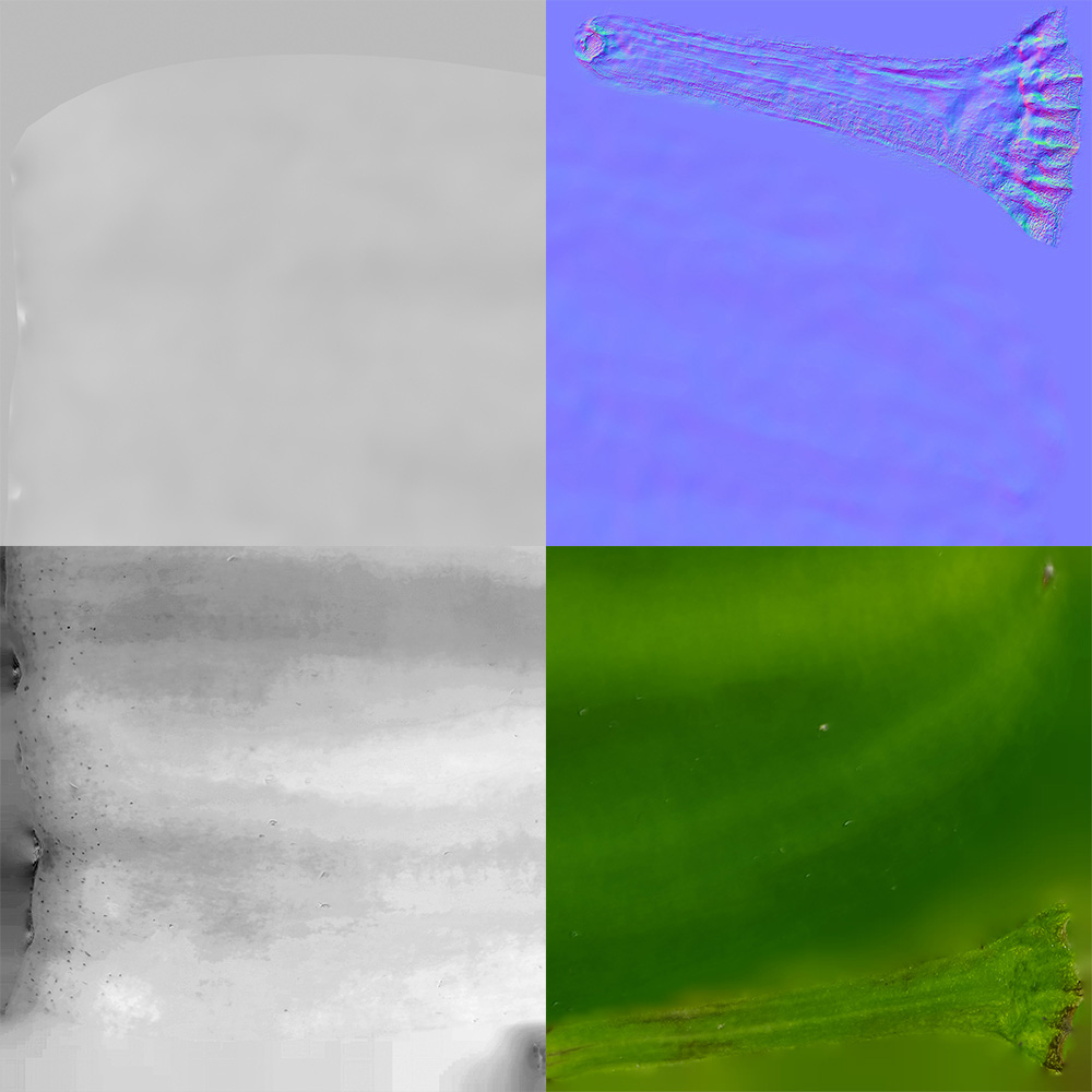 6 maps are supplied with this model. 8192×8192 PNGs and downsampled versions in 2048×2048 JPGs. The maps include ao, diffuse, glossiness, normal, displacement(tif) and sss amount. A 16K diffuse texture is also included. The jalapeno fruit model is uvw unwrapped.