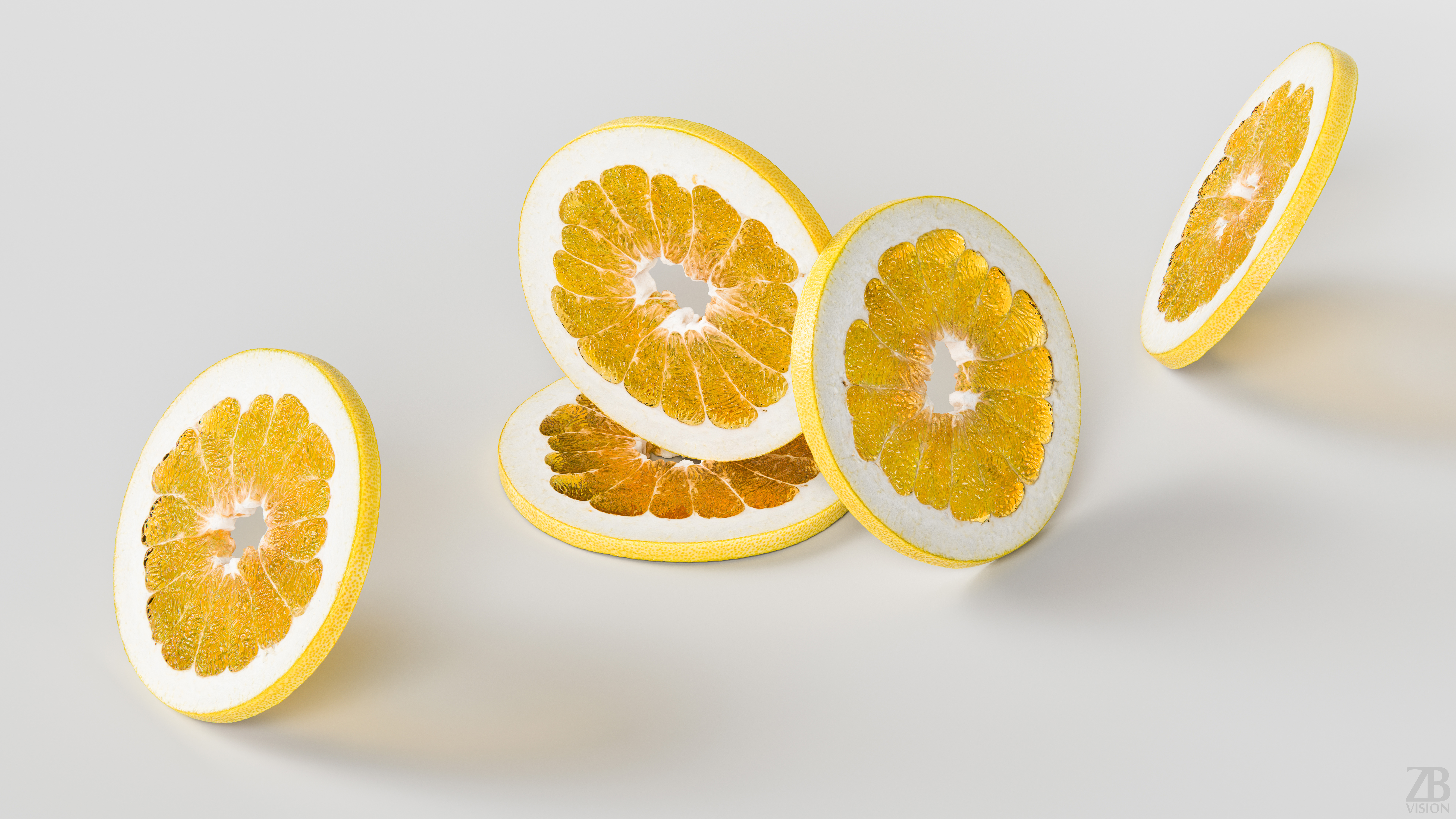 6 maps are supplied with this model. 8192×8192 PNGs and downsampled versions in 2048×2048 JPGs. The maps include ao, diffuse, glossiness, normal, displacement(tif), and translucency mask. A 16K diffuse texture is also included. The citrus grandis slice model is uvw unwrapped.