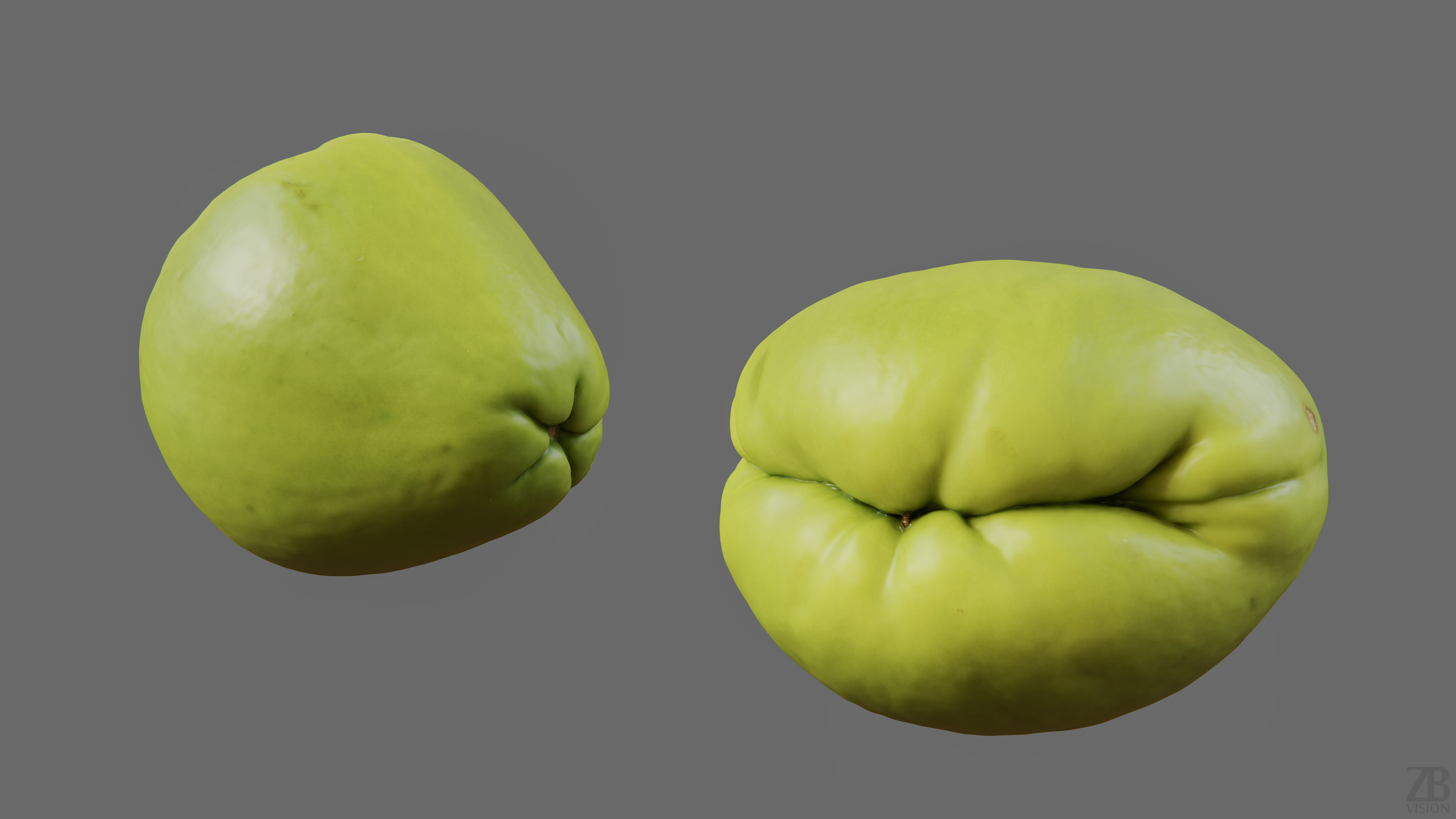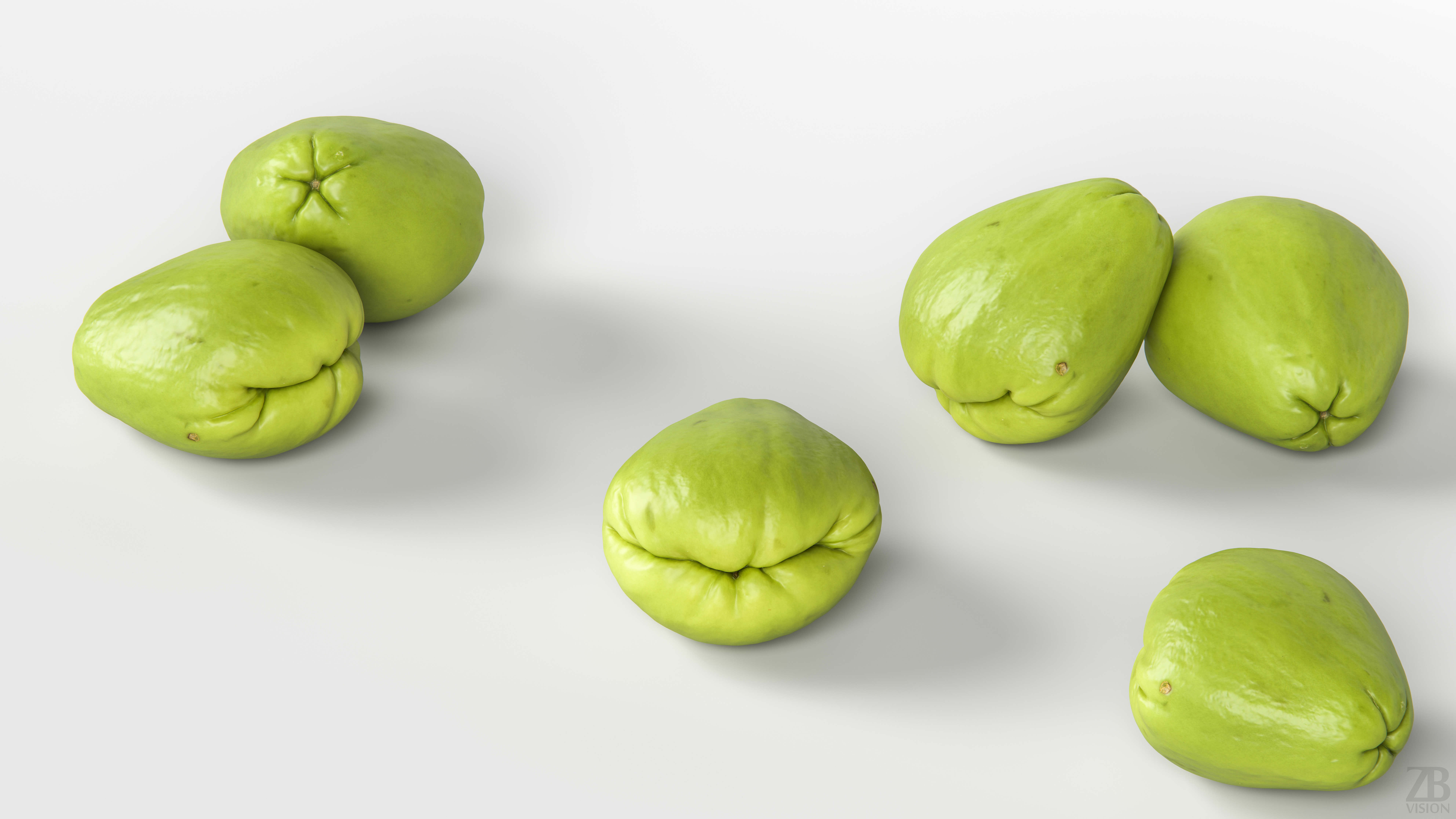 All preview images were rendered with Corona. You will get only the chayotee and not the scenes used for the preview renders. Please also take into consideration that the preview images are the result of the post-production and the look of mirliton 3d model in your scene may differ due to the specific settings of your own scene. Product is ready to render out-of-the-box. Please note that the lights, cameras, and any background not described above objects are not included in the product. The model is clean and alone in the provided files, centered at origin and has real-world scale.