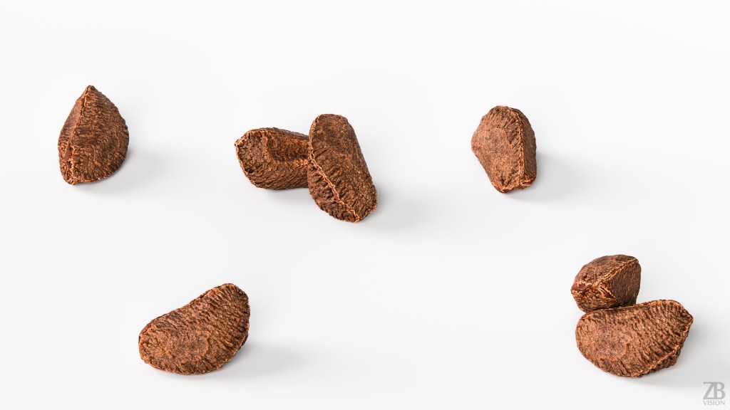 This is a 3d model of a brazil nut. It was scanned and prepared for photorealistic renderings, close-ups, stills and animation. The nut shell model is ready to be inserted in your scene out of the box.