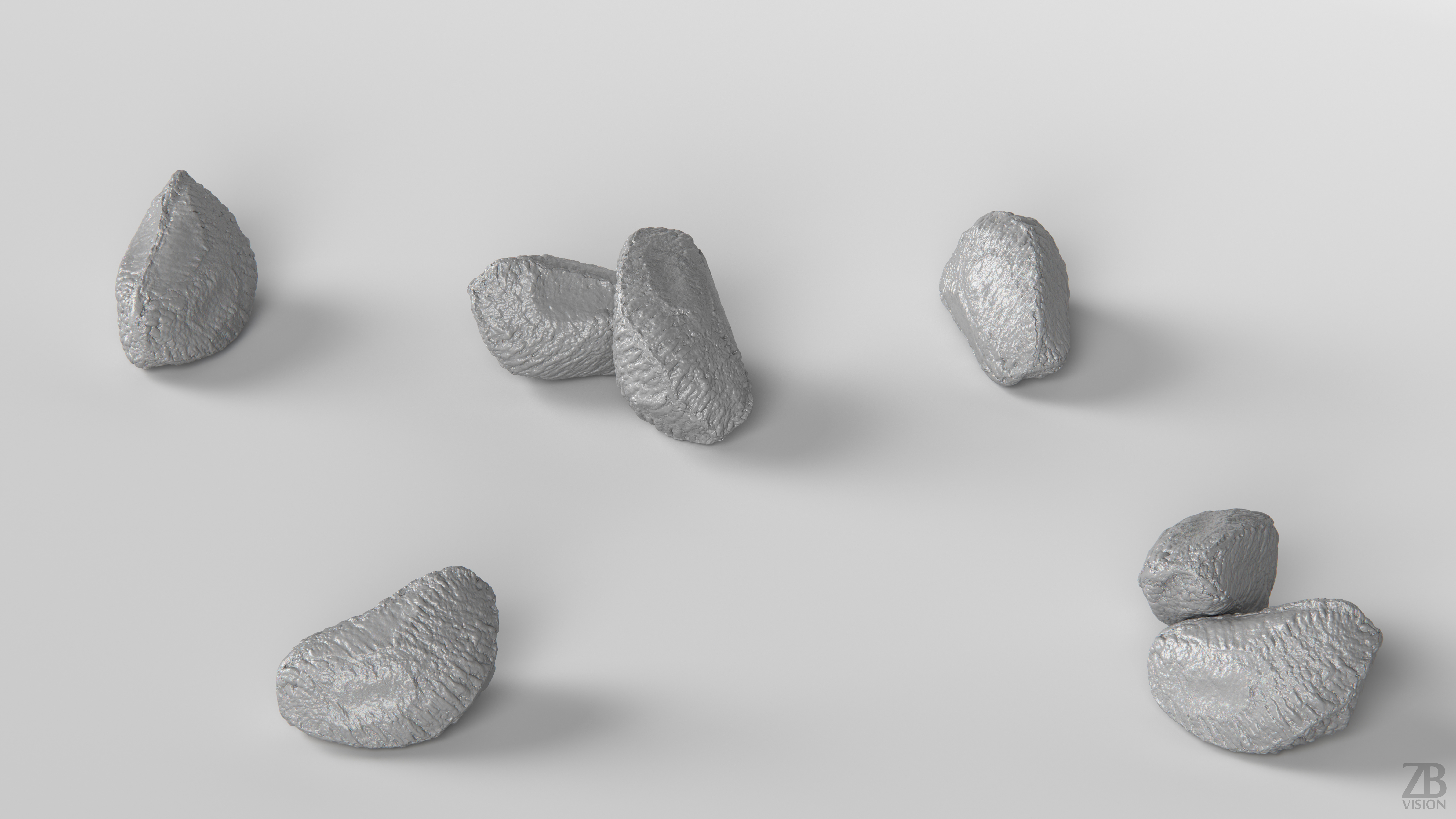5 maps are supplied with this model. 8192×8192 PNGs and downsampled versions in 2048×2048 JPGs. The maps include ao, diffuse, glossiness, normal and displacement(tif). A 16K diffuse texture map is also included. The brazil nut seed model is uvw unwrapped.