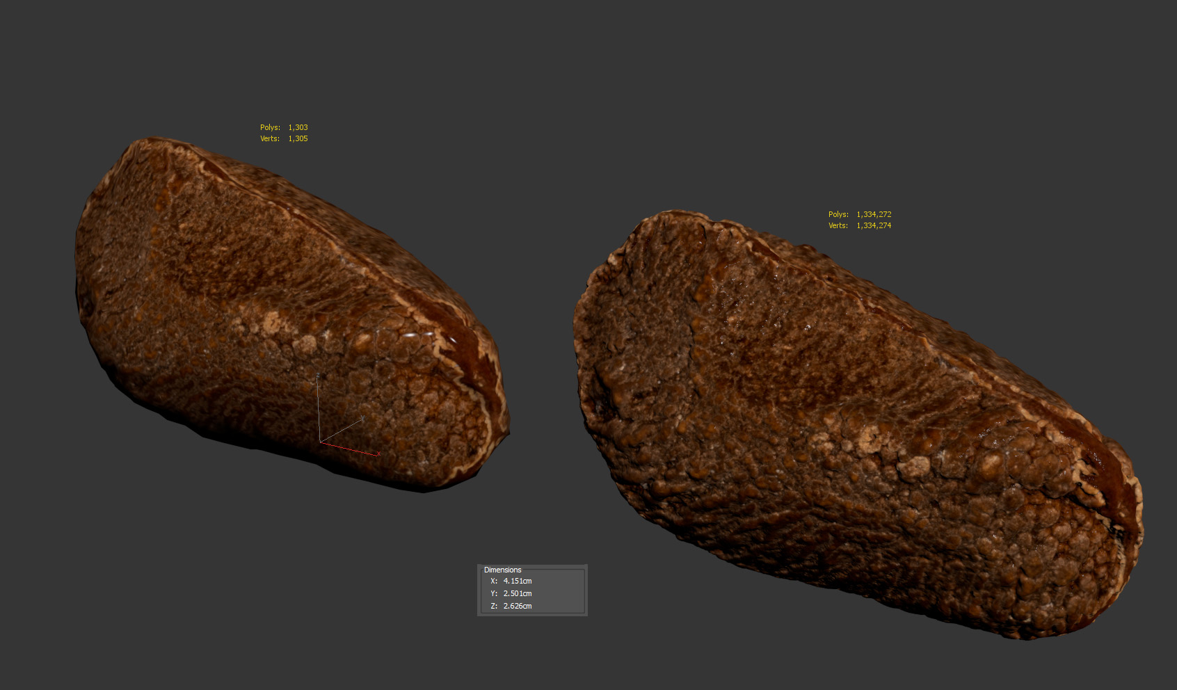 The seed model is presented as single mesh in 2 versions: low and high. Mesh is quad based. Base low model polycount is 1303. Low and High detail model included in .max and .obj formats. High detail model has 1334k quads.
