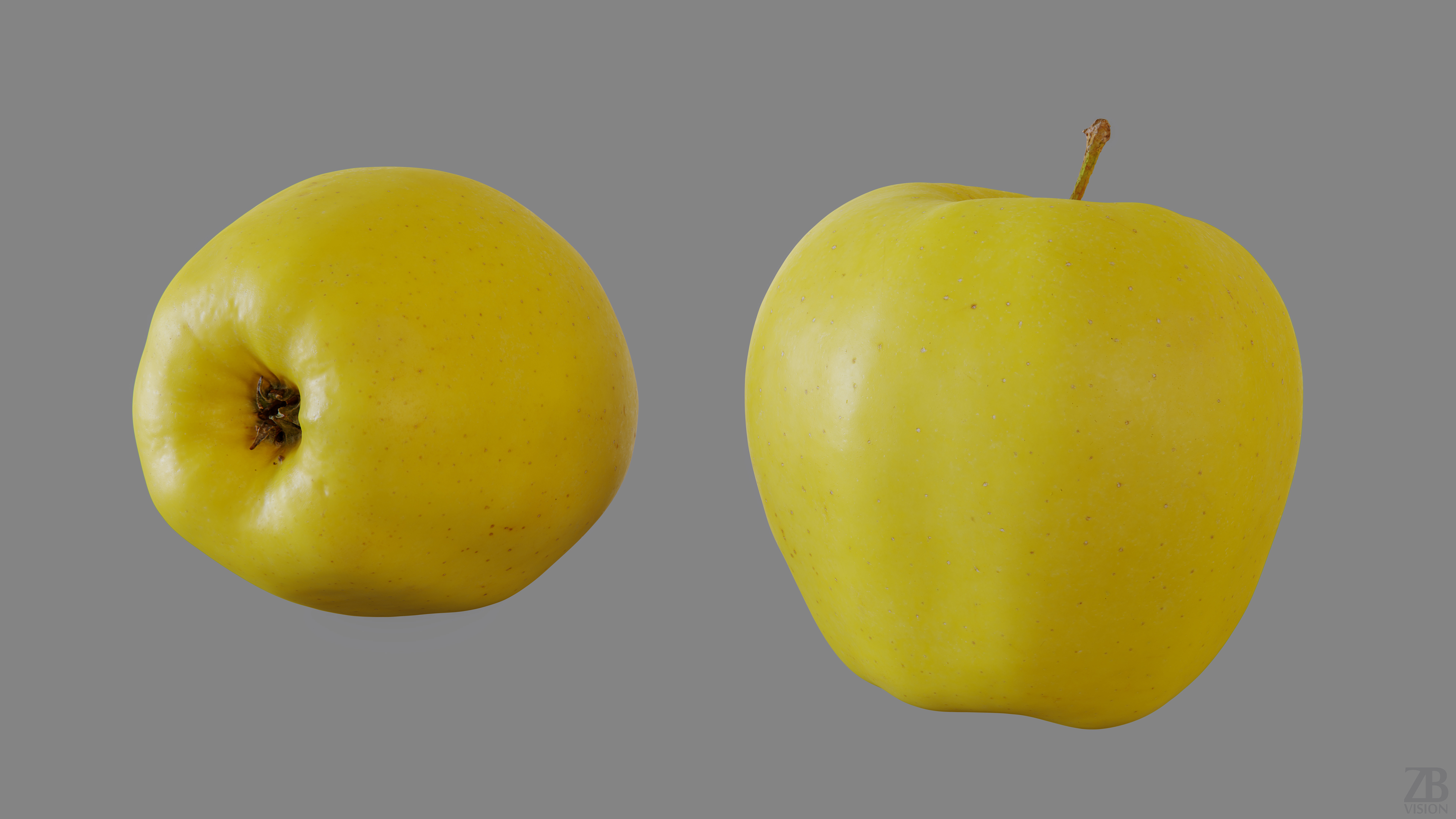 This is a 3d model of an apple, golden delicious variety. It was scanned and prepared for photorealistic renderings, close-ups, stills and animation. The apple model is ready to be inserted in your scene out of the box.