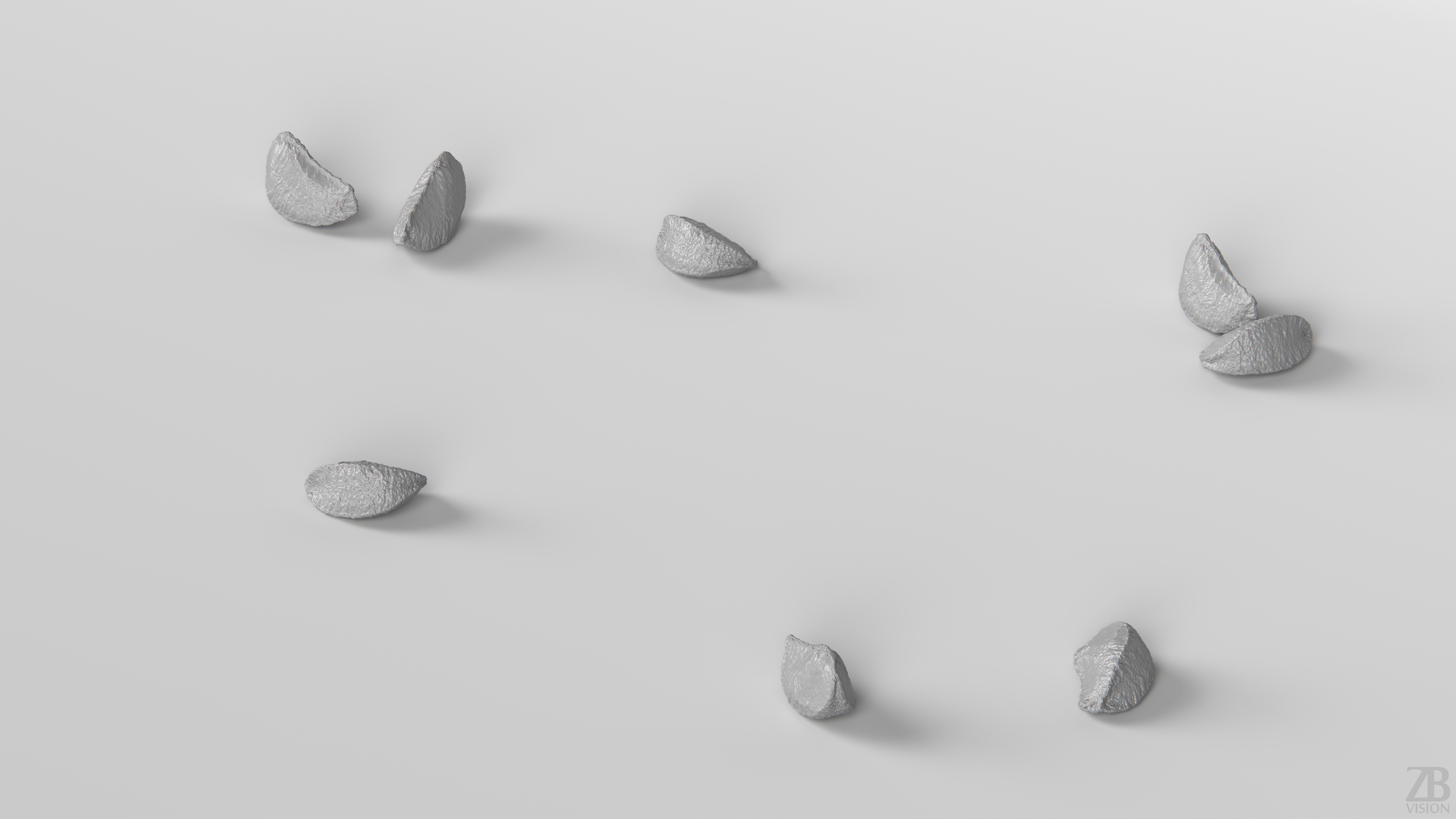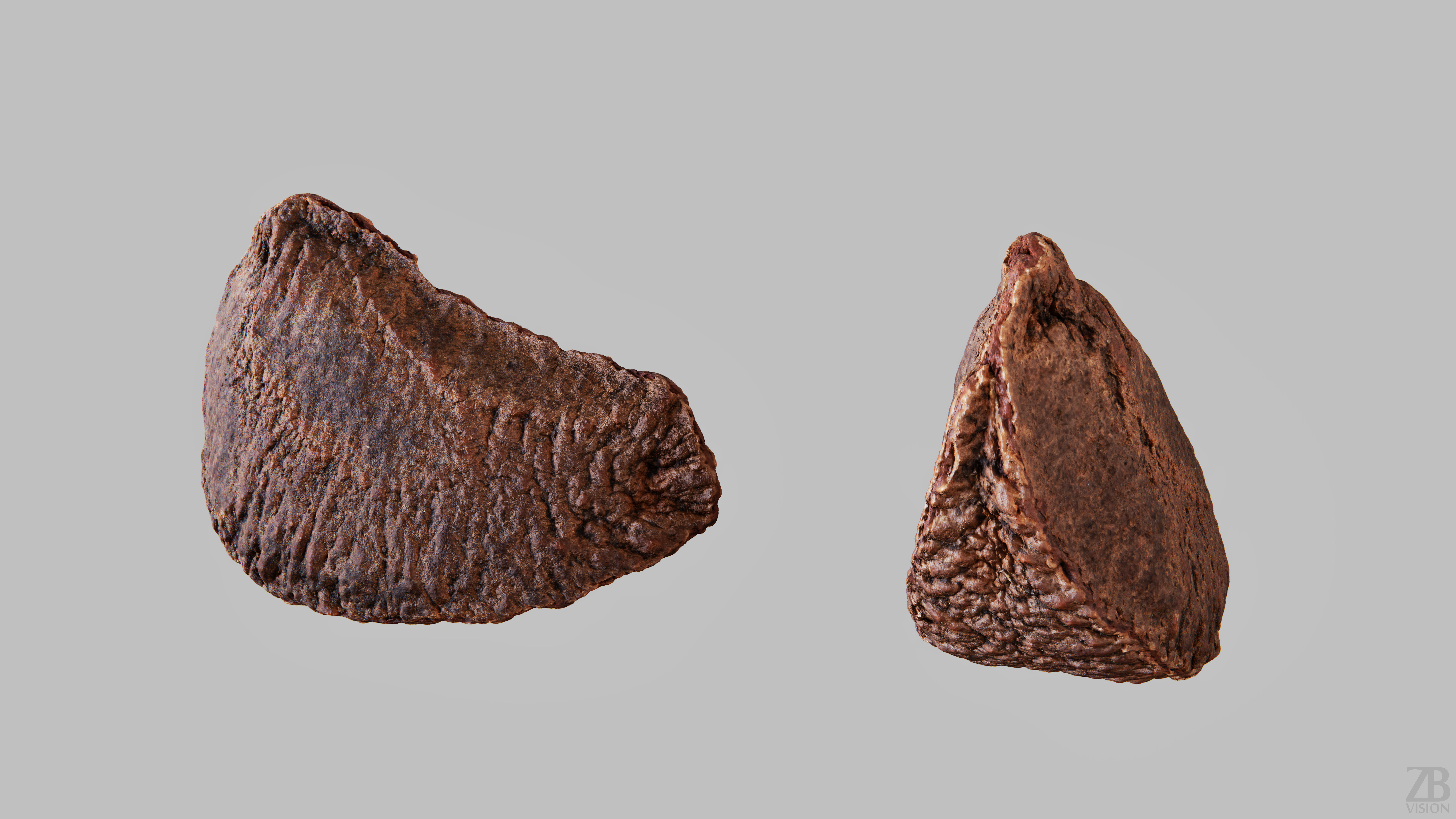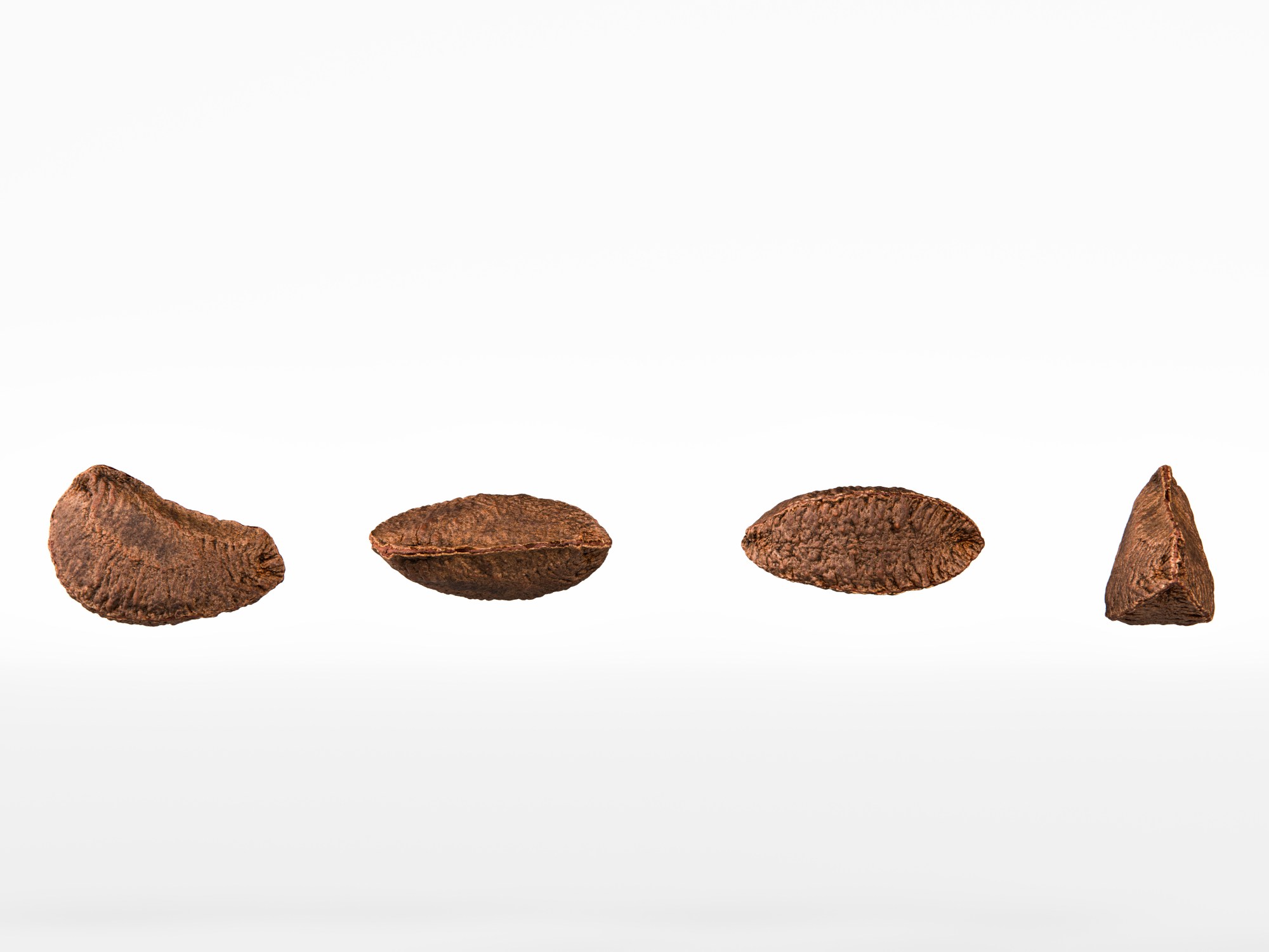 5 maps are supplied with this model. 8192×8192 PNGs and downsampled versions in 2048×2048 JPGs. The maps include ao, diffuse, glossiness, normal and displacement(tif). A 16K diffuse texture map is also included. The brazil nut seed model is uvw unwrapped.