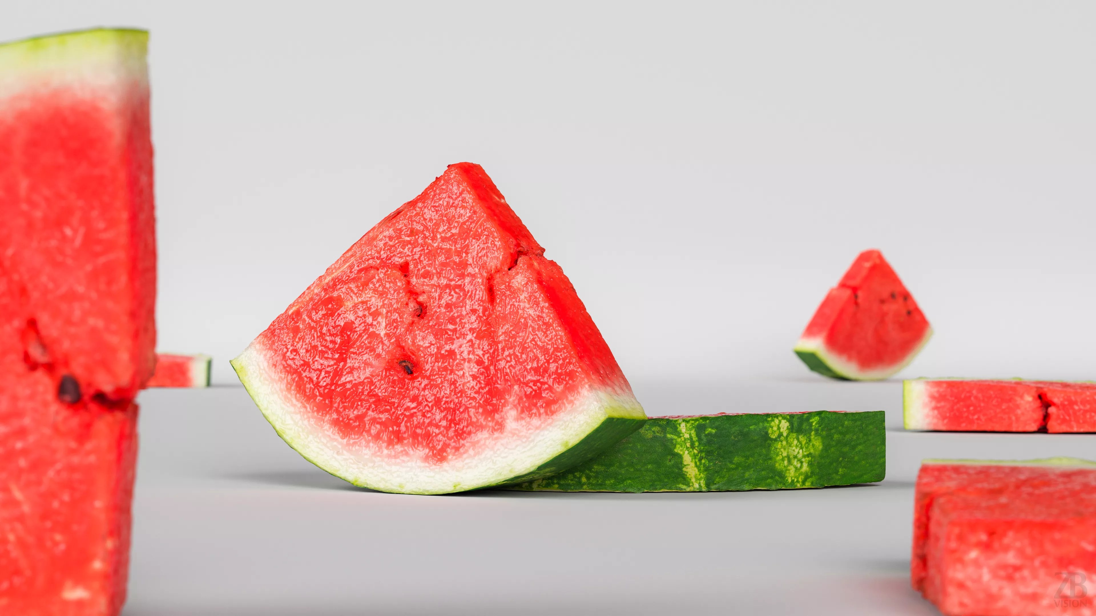 Watermelon 3D model is available here: https://www.cgtrader.com/3d-models/food/fruit/watermelon-001