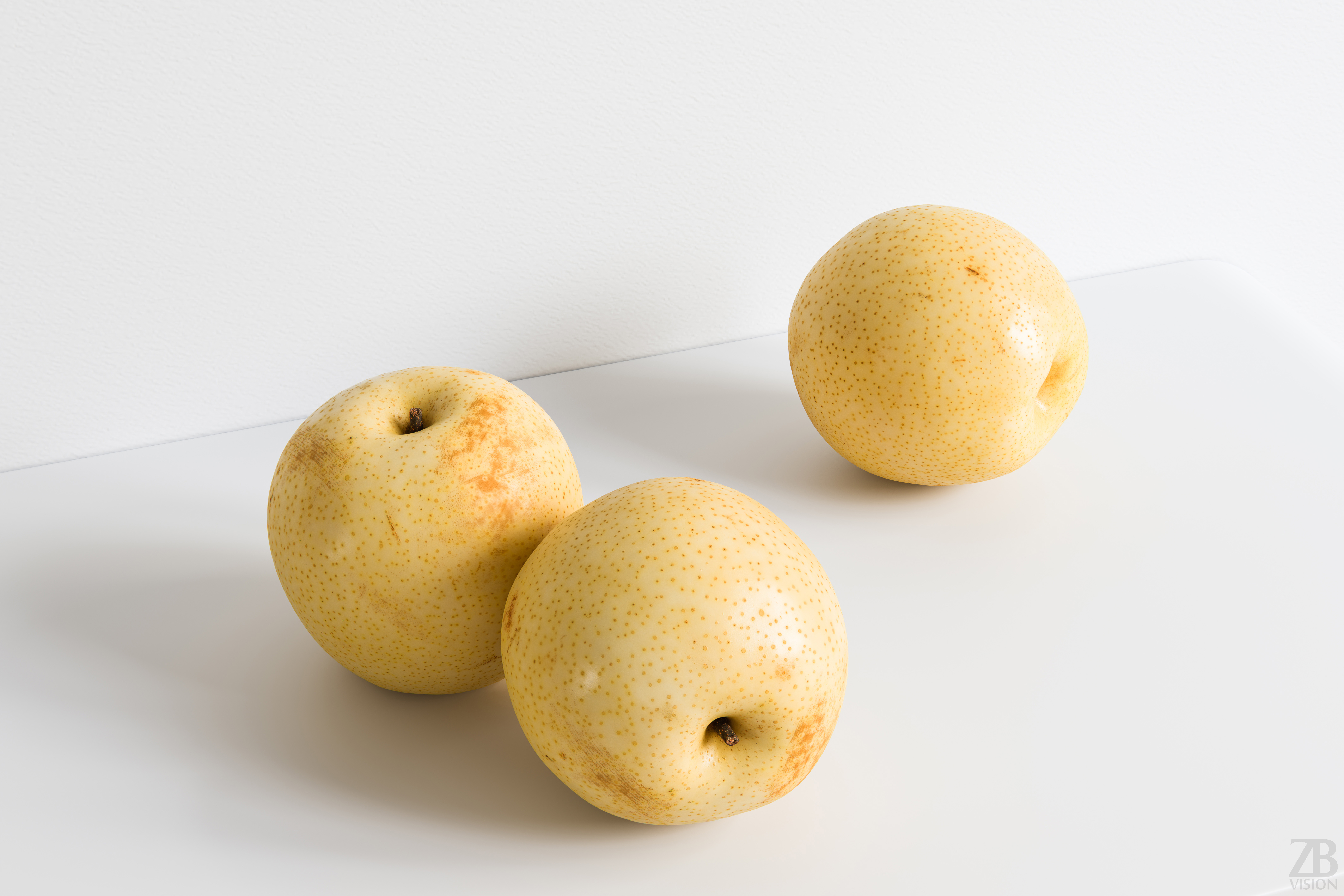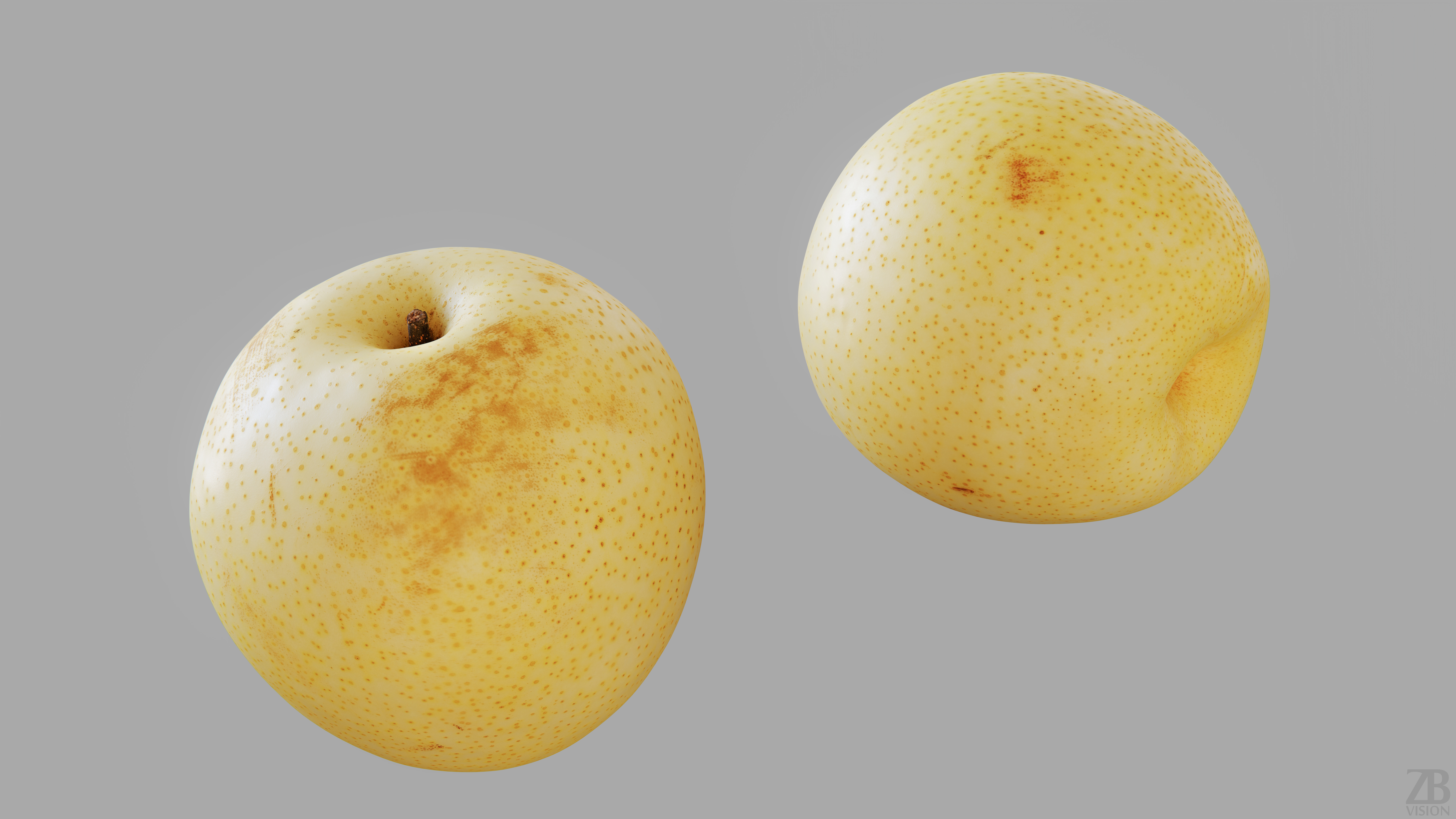All preview images were rendered with Corona. You will get only the chinese pear and not the scenes used for the preview renders. Please also take into consideration that the preview images are the result of the post-production and the look of nashi pear 3d model in your scene may differ due to the specific settings of your own scene. Product is ready to render out-of-the-box. Please note that the lights, cameras, and any background not described above objects are not included in the product. The model is clean and alone in the provided files, centered at origin and has real-world scale.
