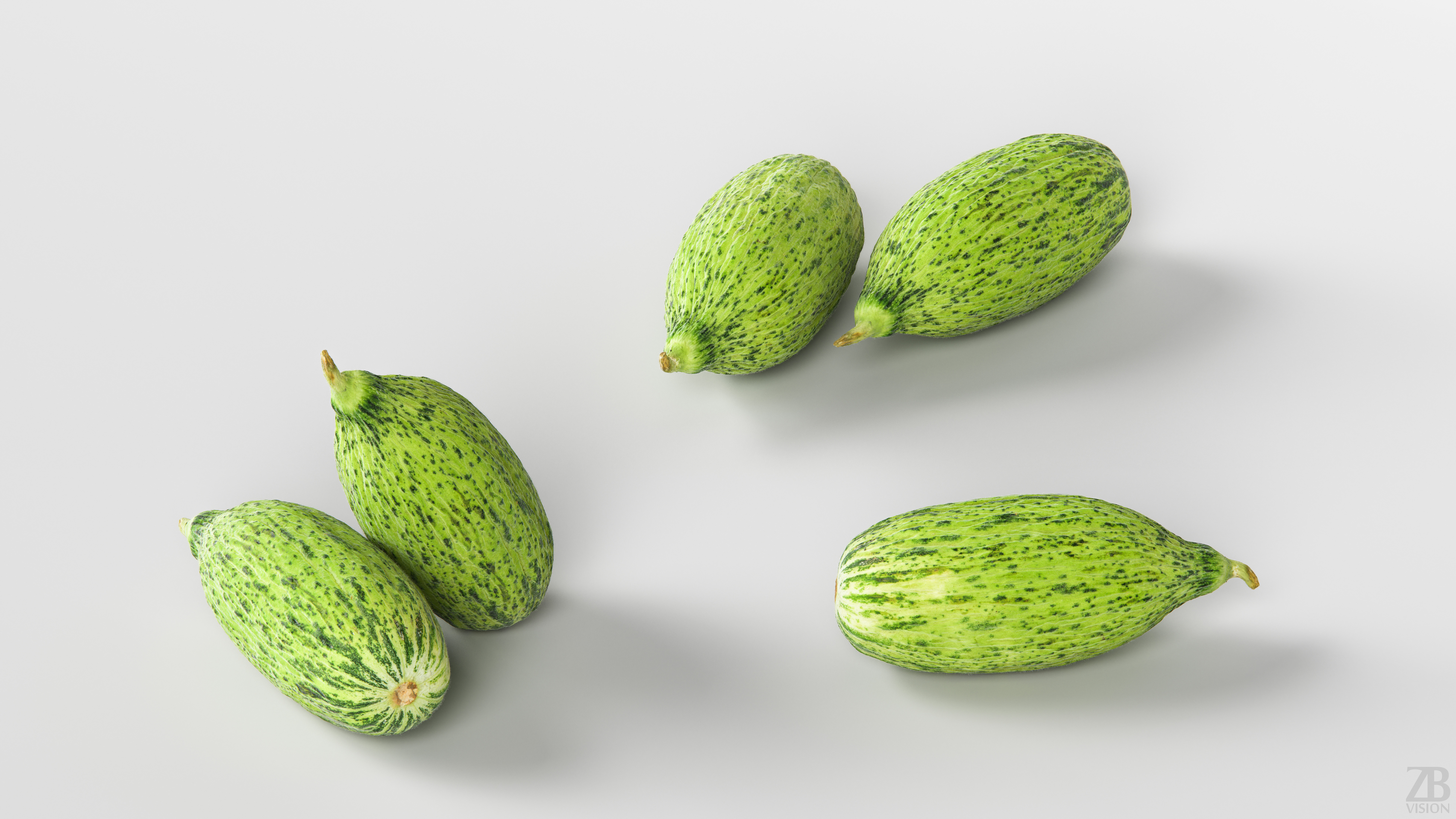 All preview images were rendered with Corona. You will get only the cucumber gourd and not the scenes used for the preview renders. Please also take into consideration that the preview images are the result of the post-production and the look of gourd melon 3d model in your scene may differ due to the specific settings of your own scene. Product is ready to render out-of-the-box. Please note that the lights, cameras, and any background not described above objects are not included in the product. The model is clean and alone in the provided files, centered at origin and has real-world scale.