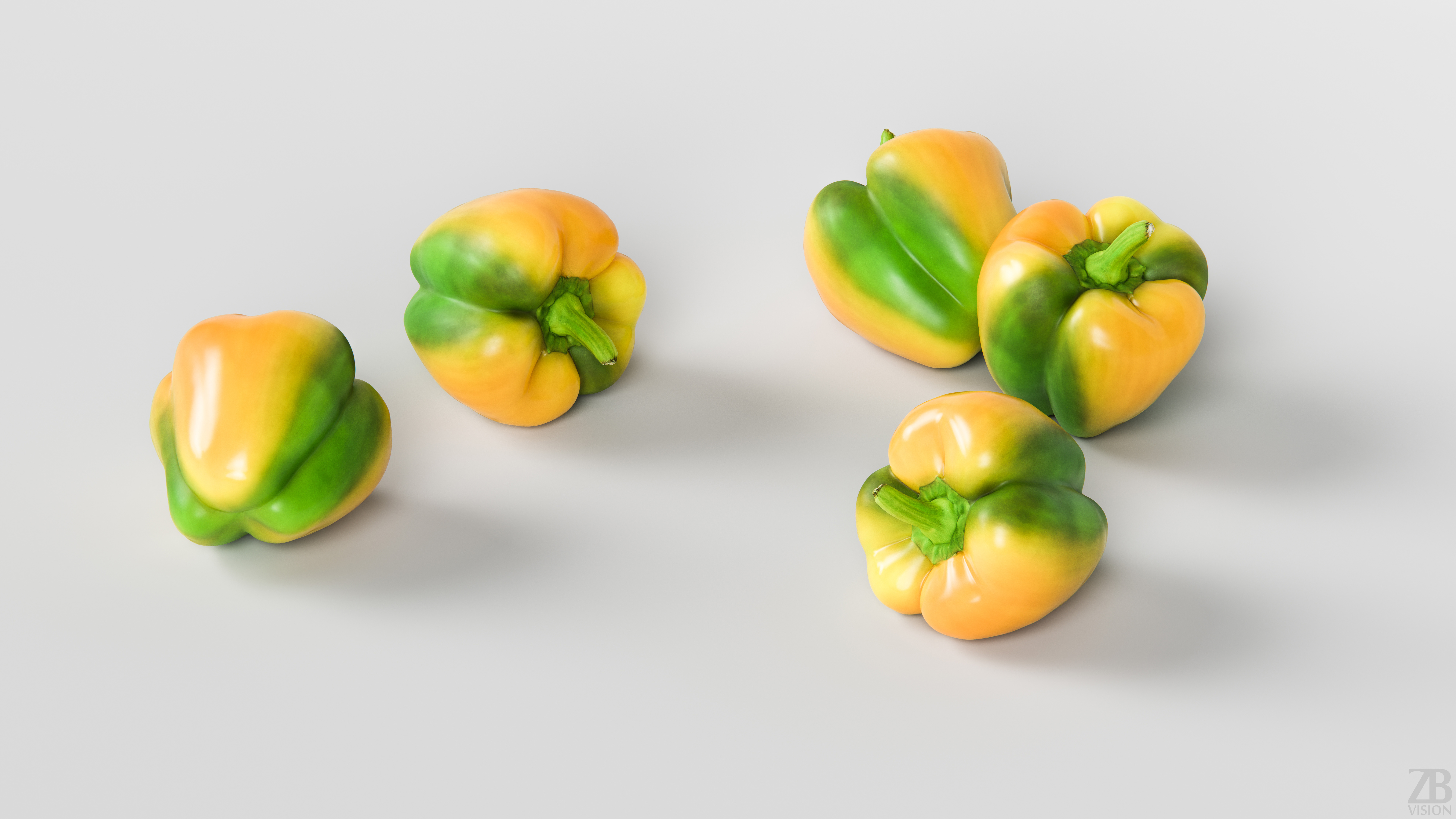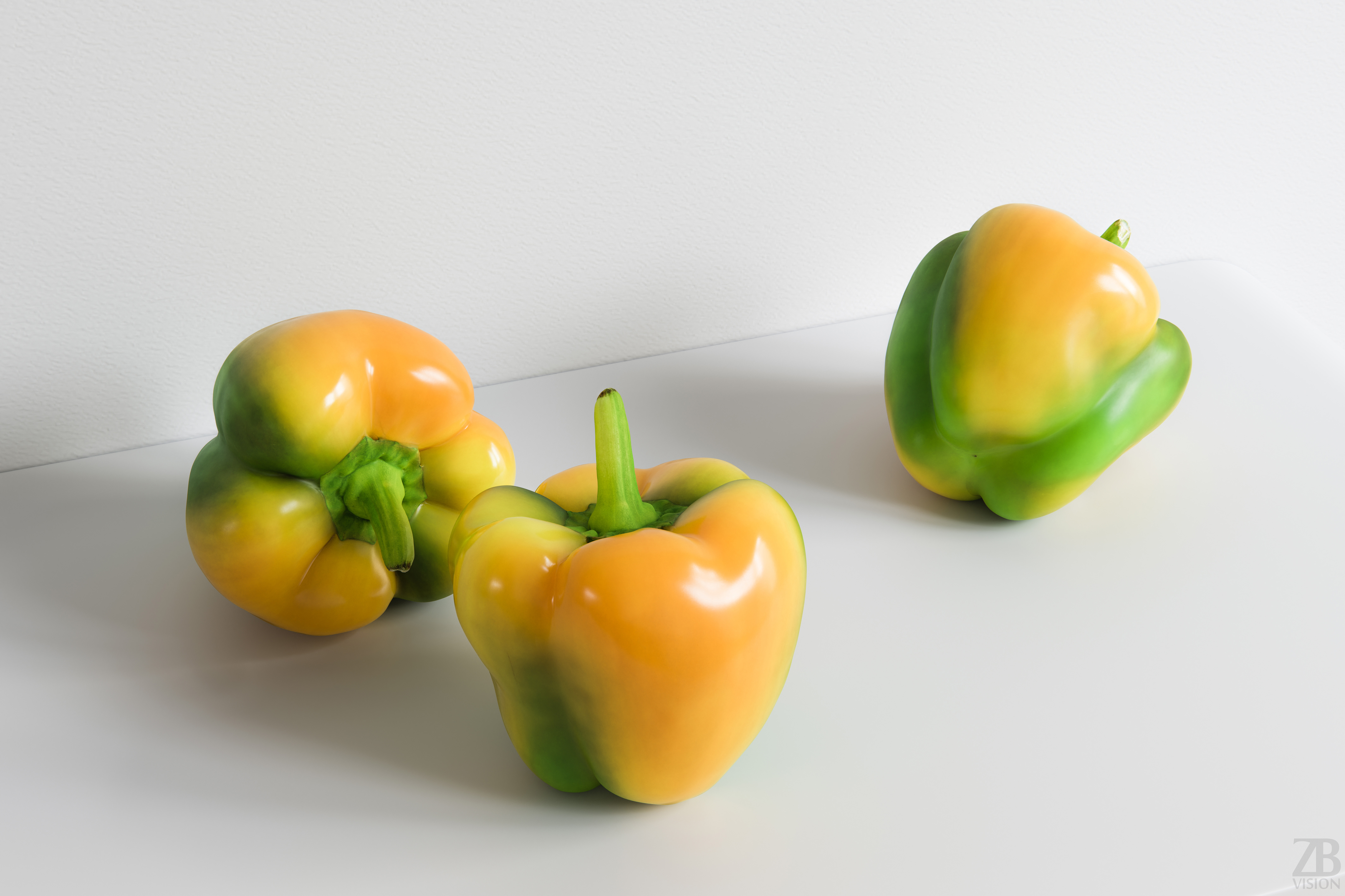 All preview images were rendered with Corona. You will get only the paprika bell and not the scenes used for the preview renders. Please also take into consideration that the preview images are the result of the post-production and the look of bell pepper 3d model in your scene may differ due to the specific settings of your own scene. Product is ready to render out-of-the-box. Please note that the lights, cameras, and any background not described above objects are not included in the product. The model is clean and alone in the provided files, centered at origin and has real-world scale.