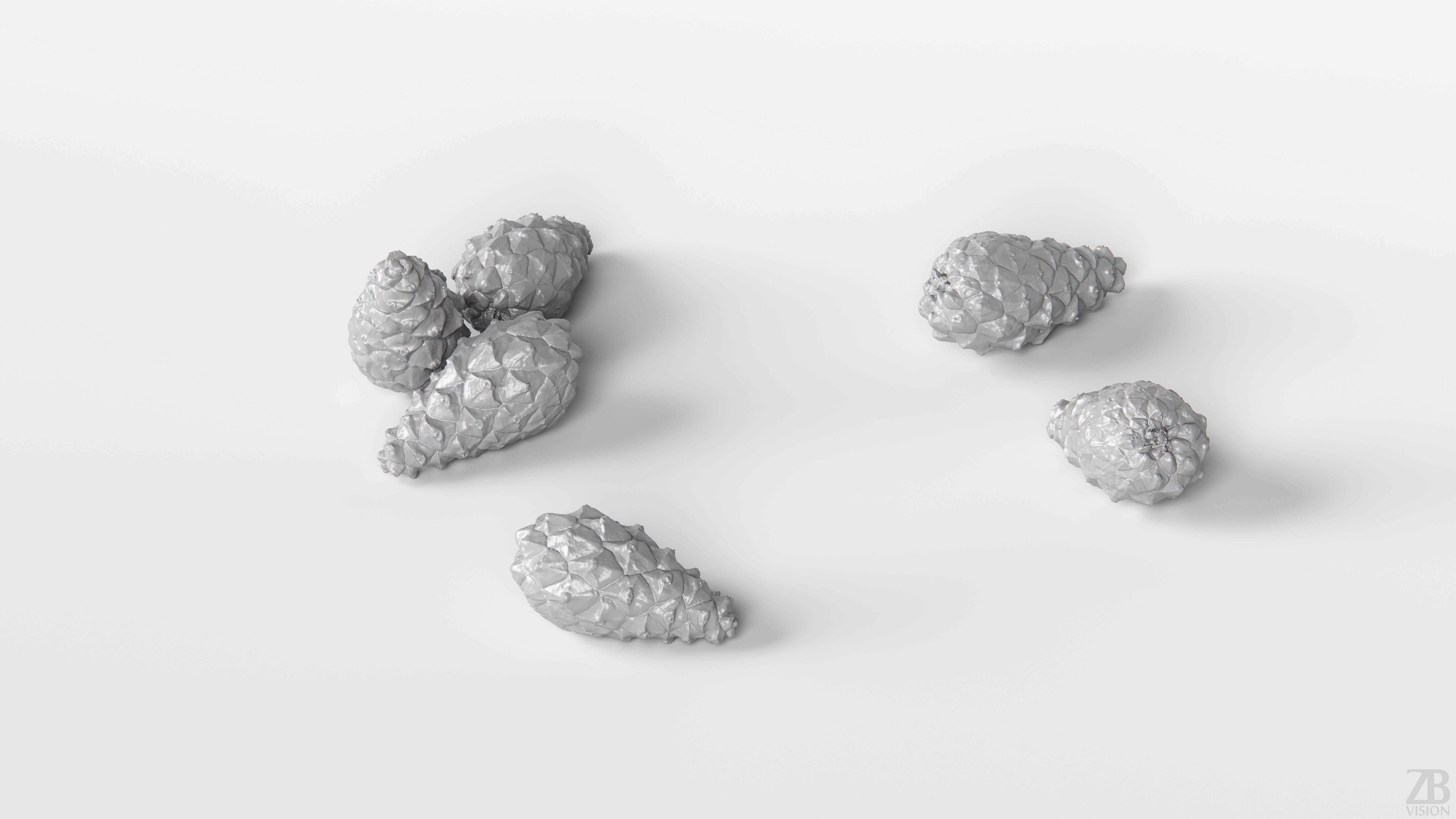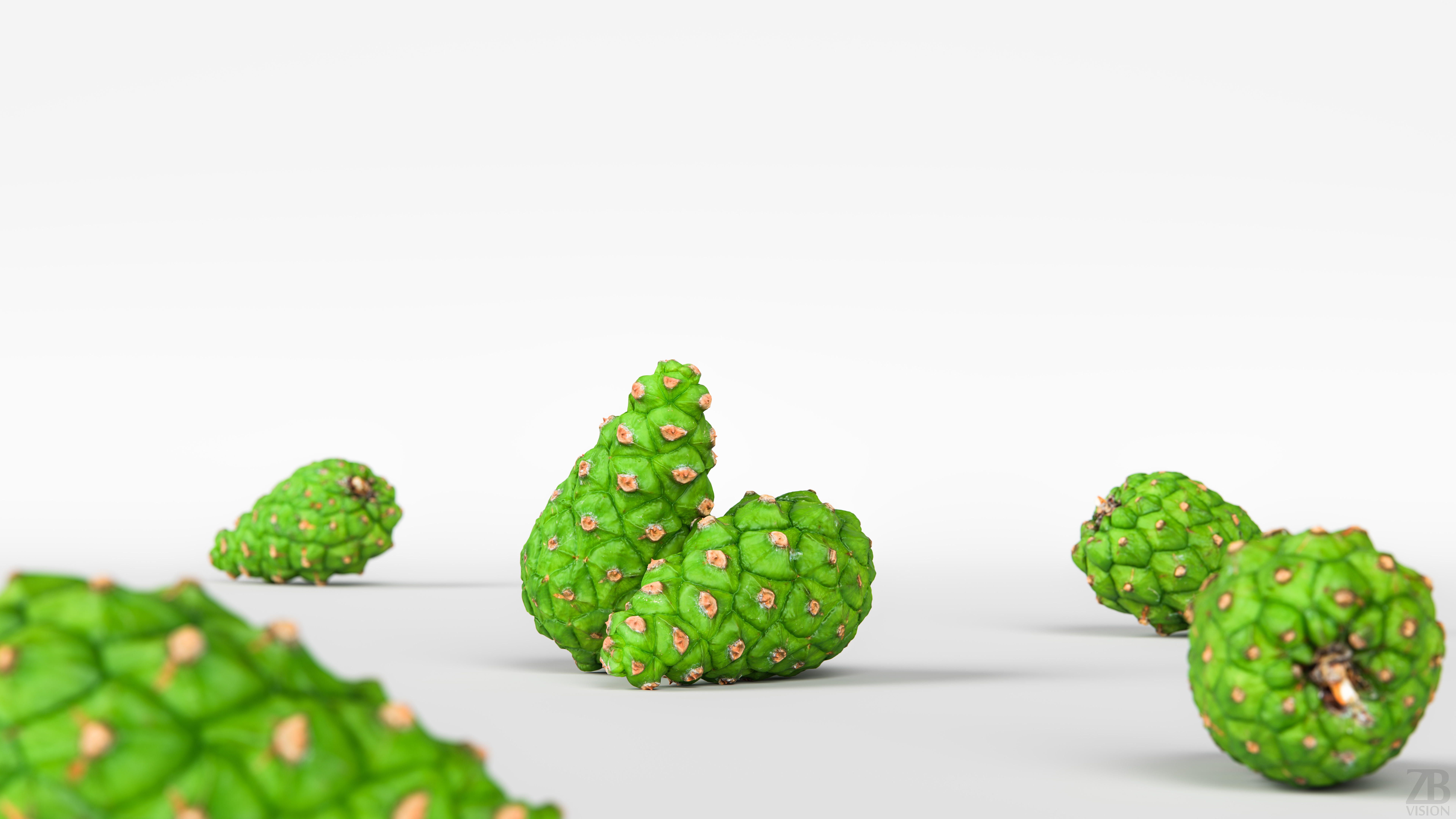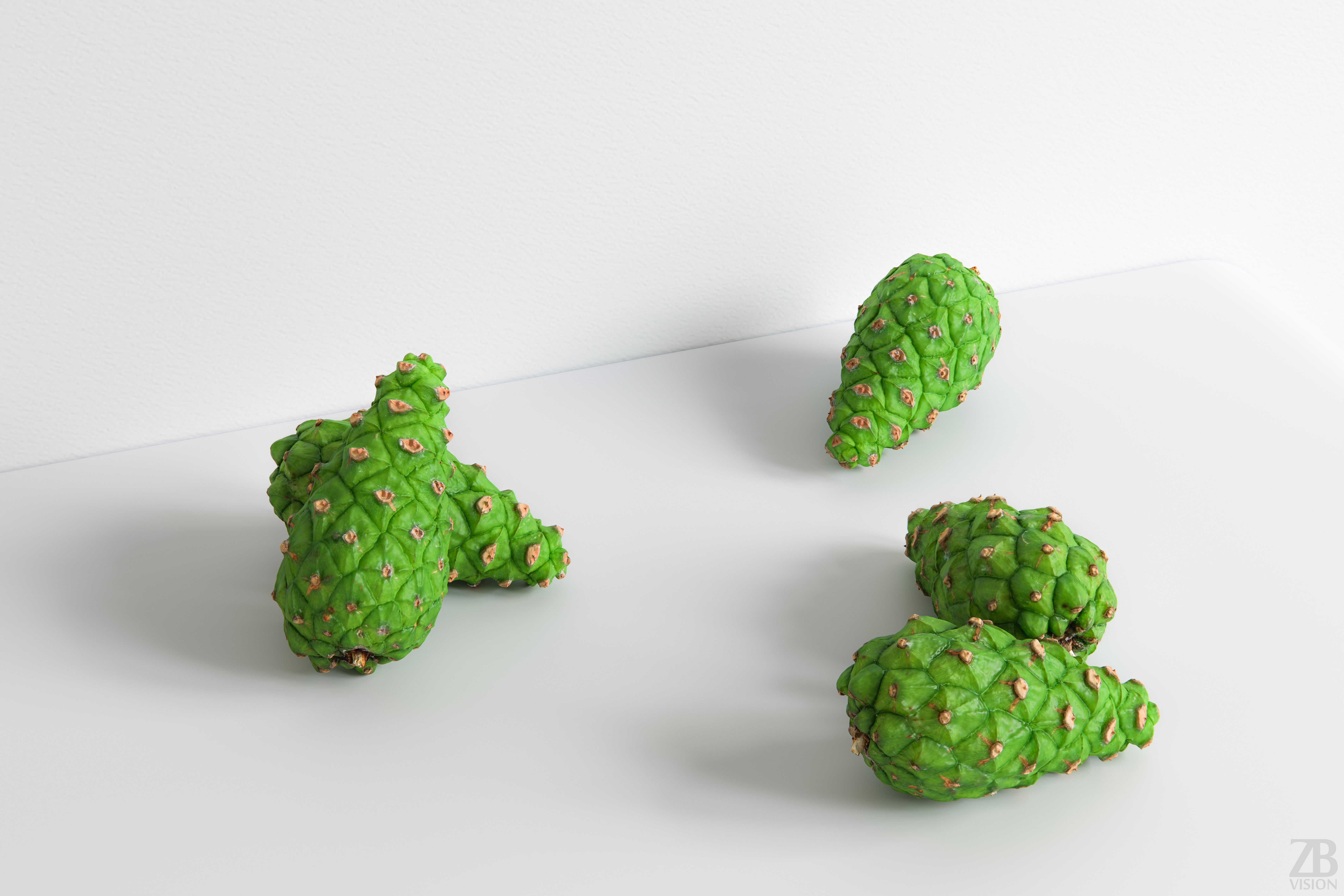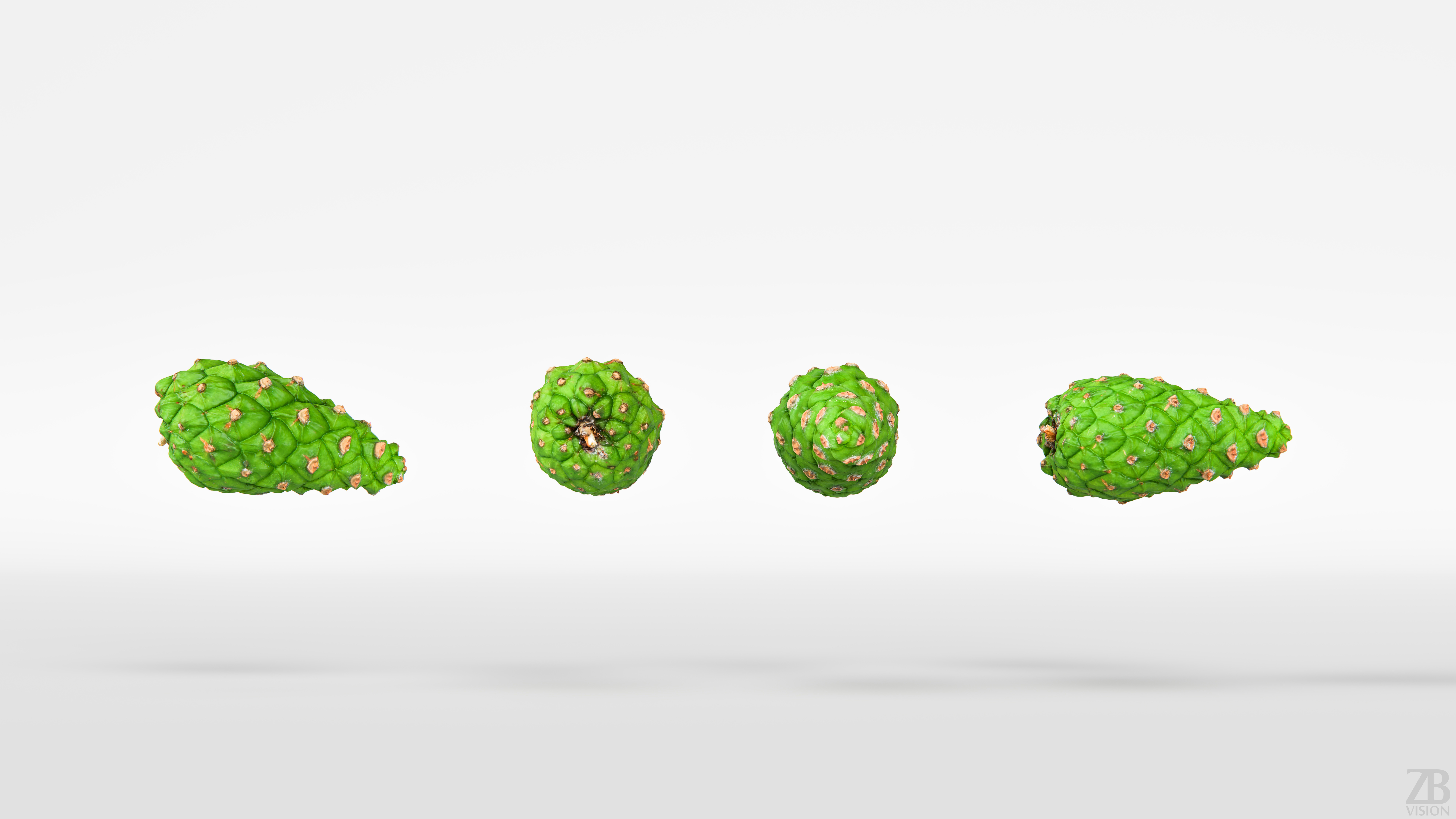 This is a 3d model of a green pine cone. It was scanned and prepared for photorealistic renderings, close-ups, stills and animation. The pinecone model is ready to be inserted in your scene out of the box.
