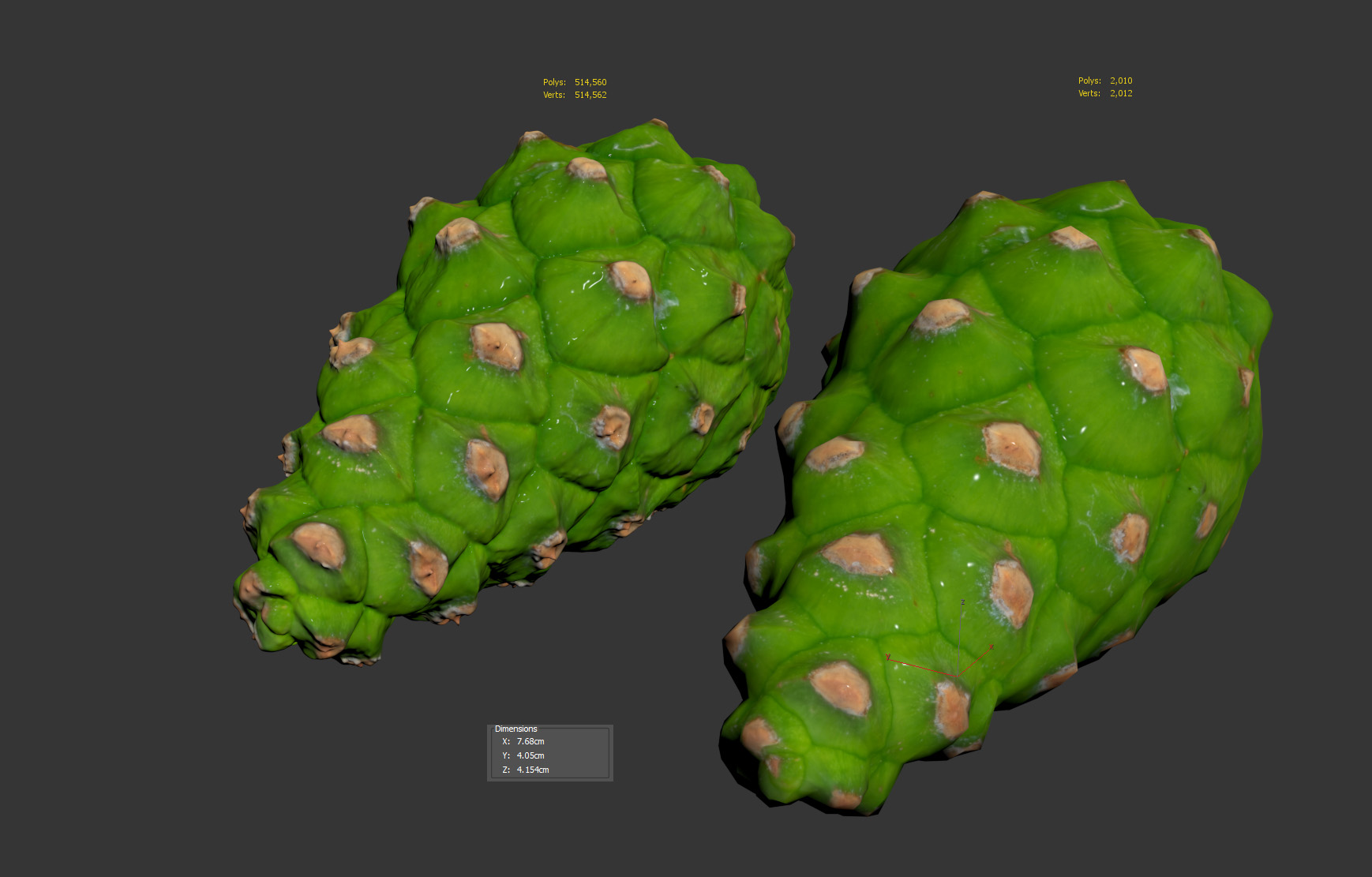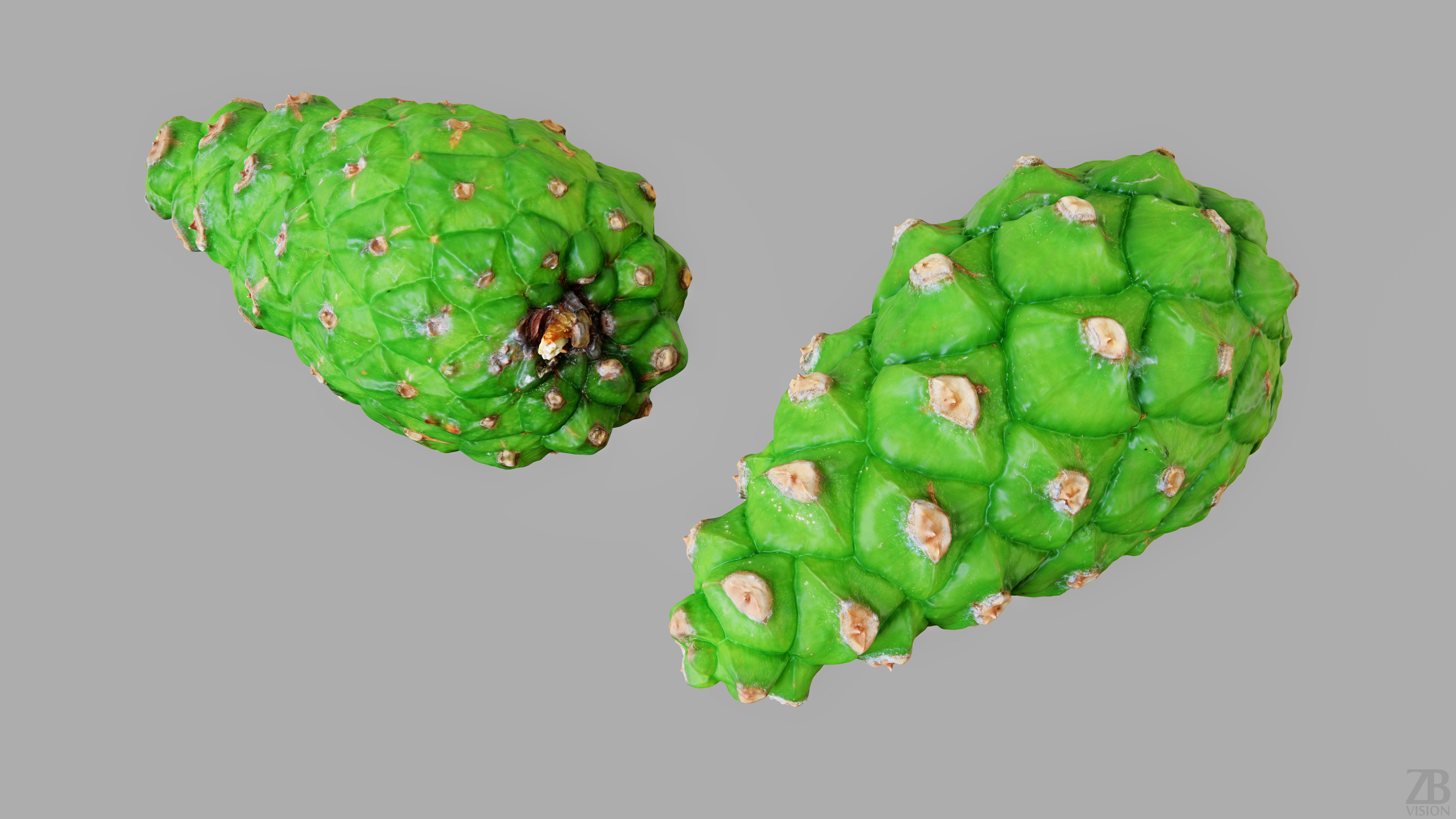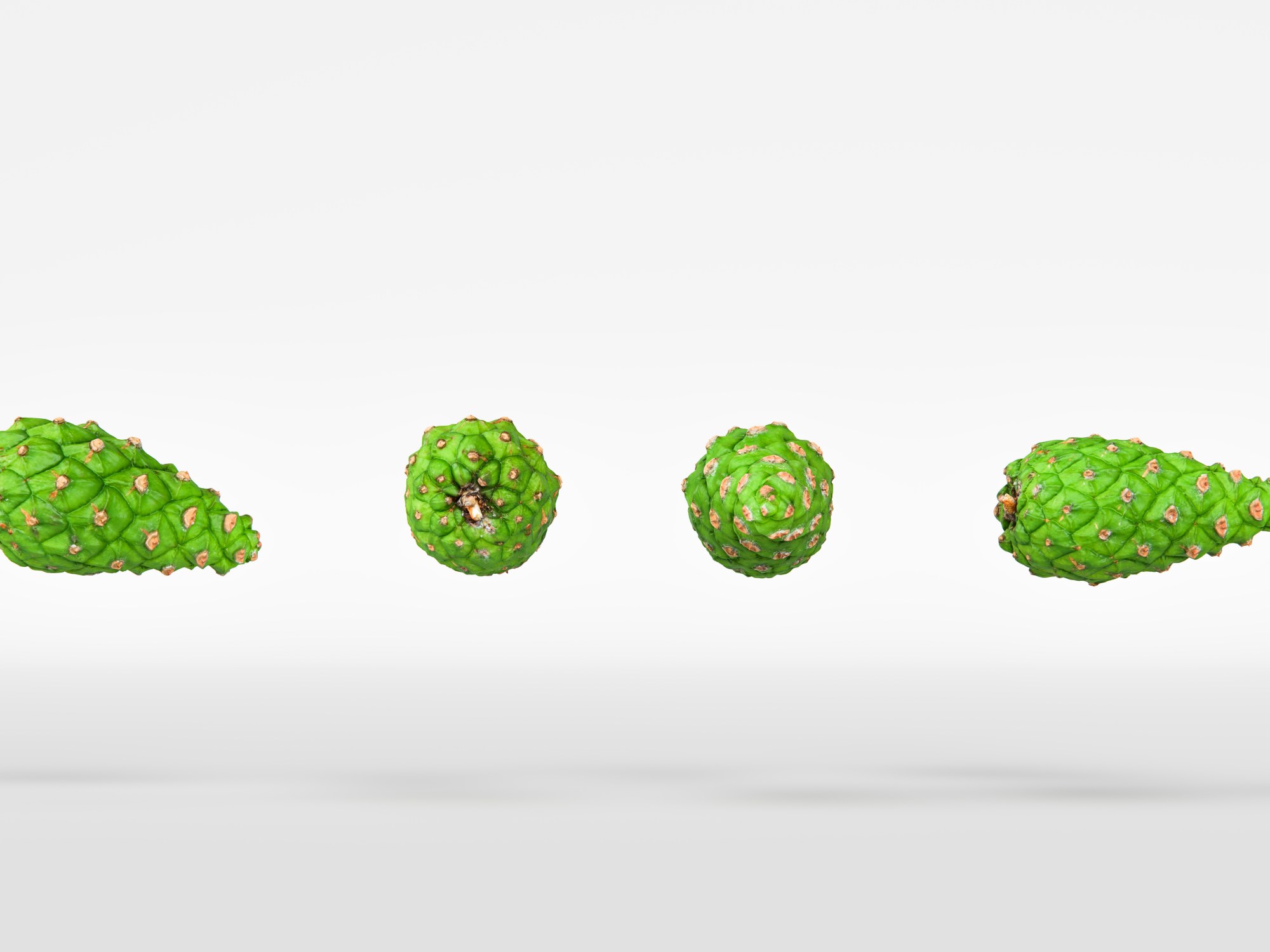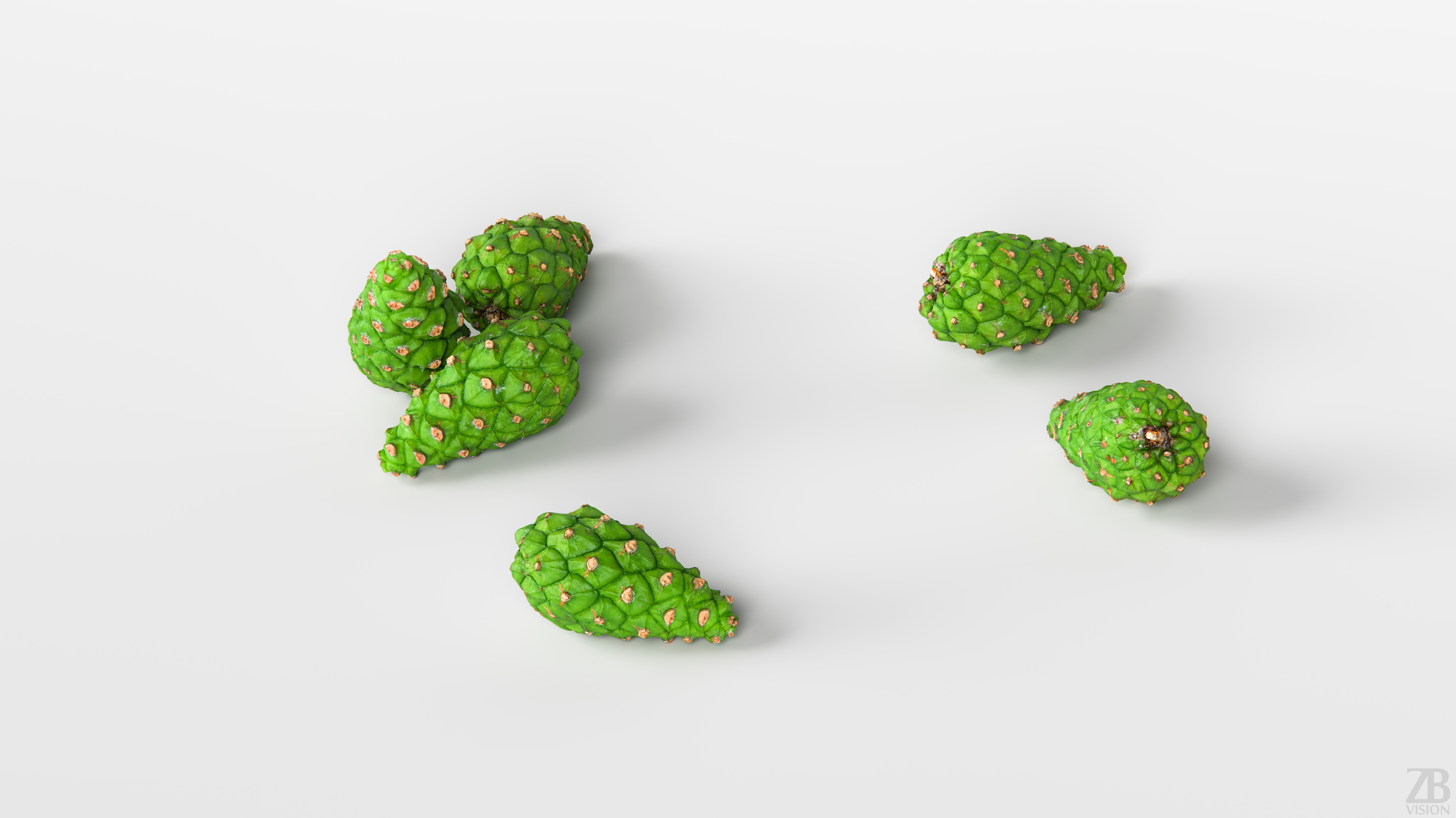 Green pinecone 3D model is available here: https://www.cgtrader.com/3d-models/scanned/various/pinecone-002