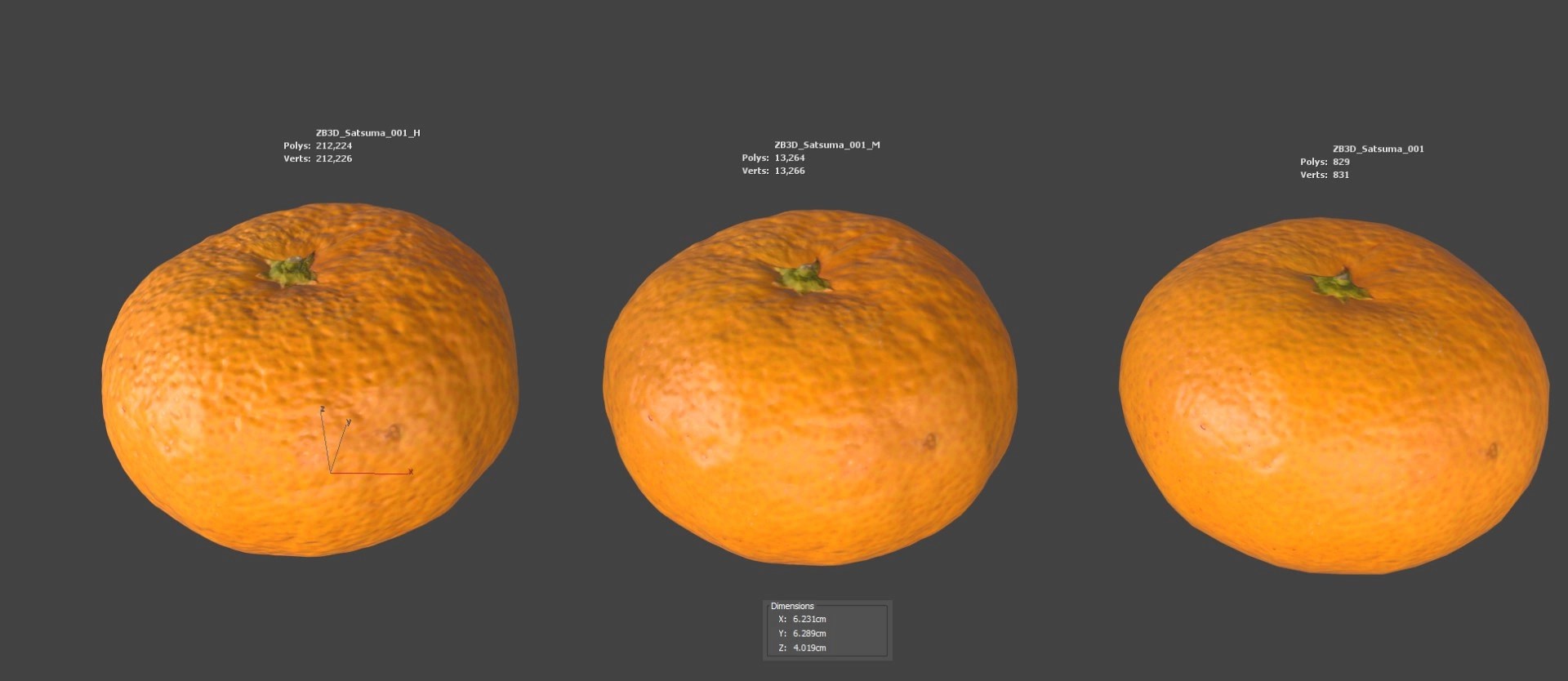 Enhance your visualizations, product designs, or still-life projects with this ultra-realistic 3D satsuma model. Meticulously photogrammetry scanned and textured, it boasts multiple levels of detail (829, 13K, 212K polycounts) for close-ups and broader scenes.