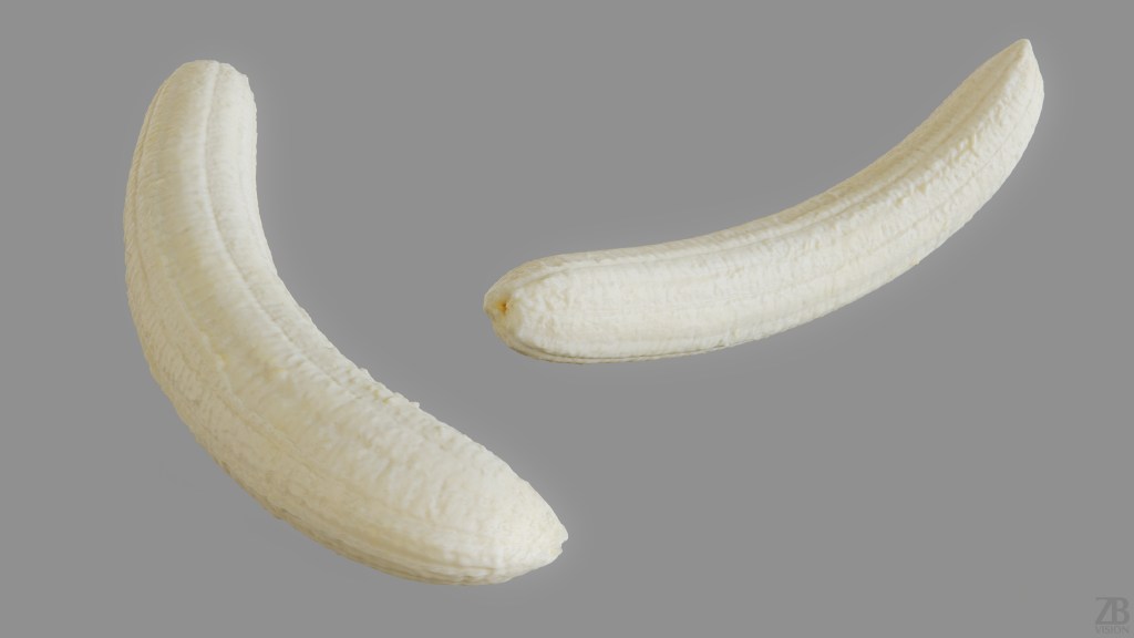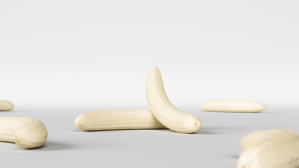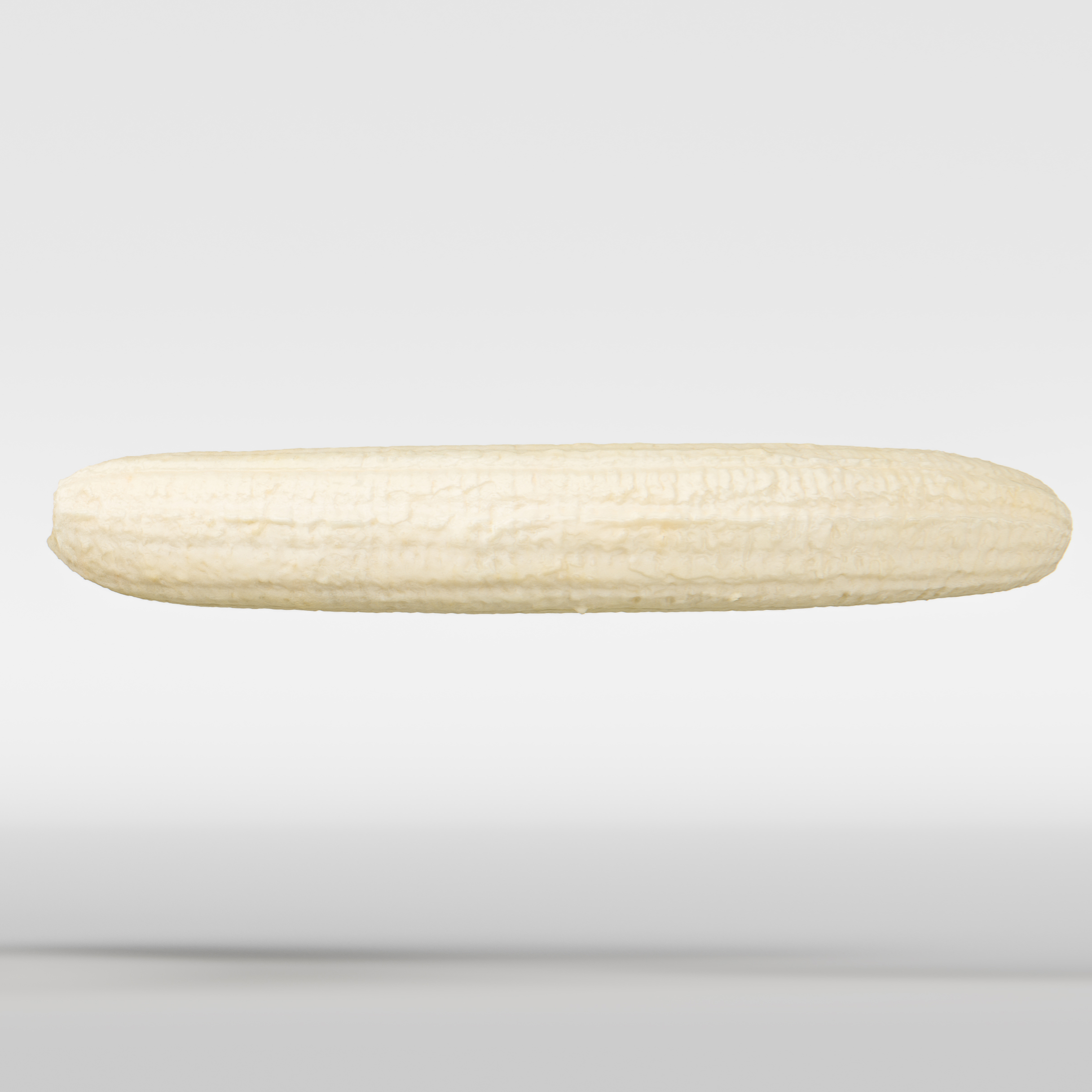 This is a 3d model of a peeled banana fruit. It was scanned and prepared for photorealistic renderings, close-ups, stills and animation. The banana model is ready to be inserted in your scene out of the box.
