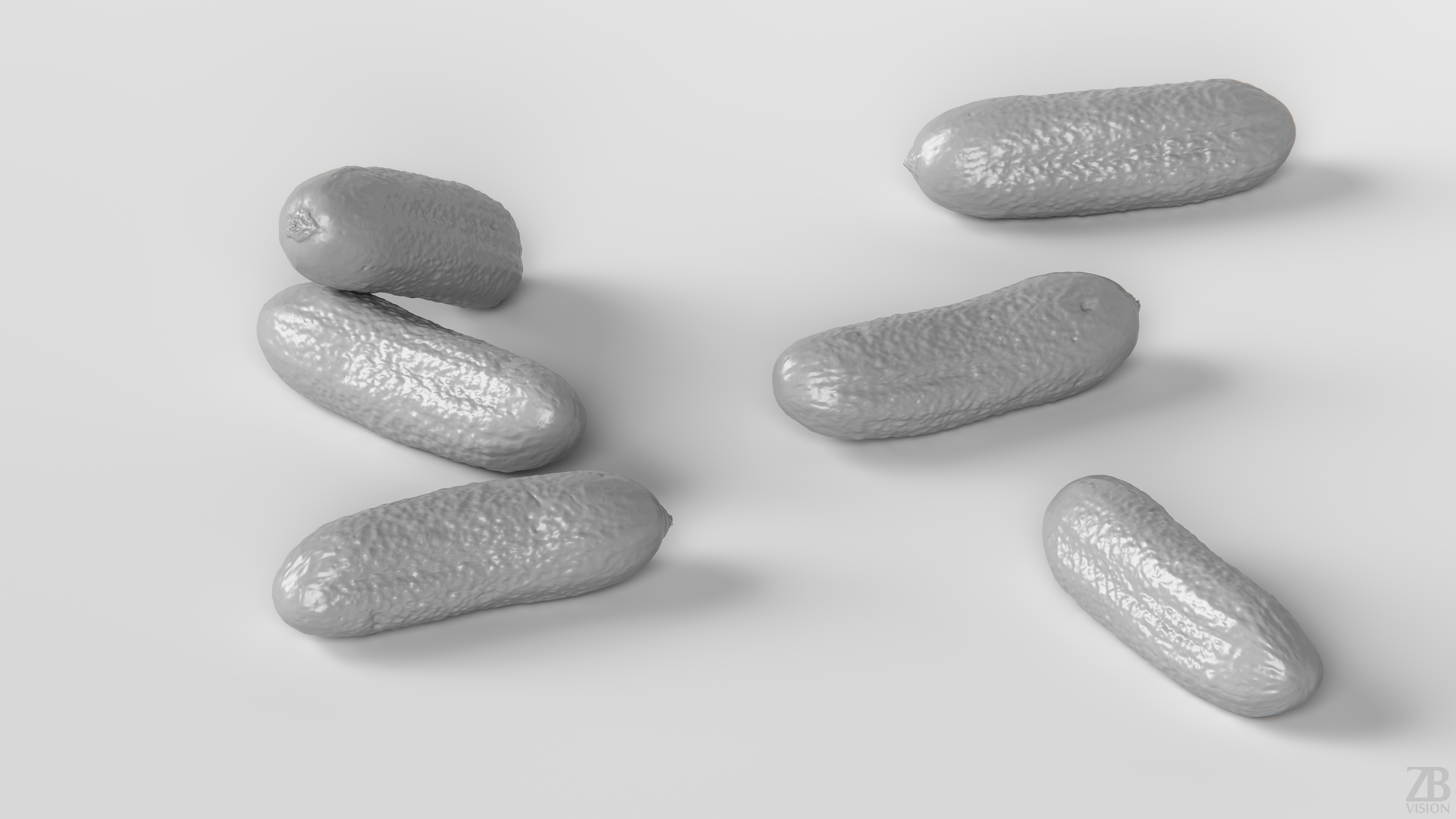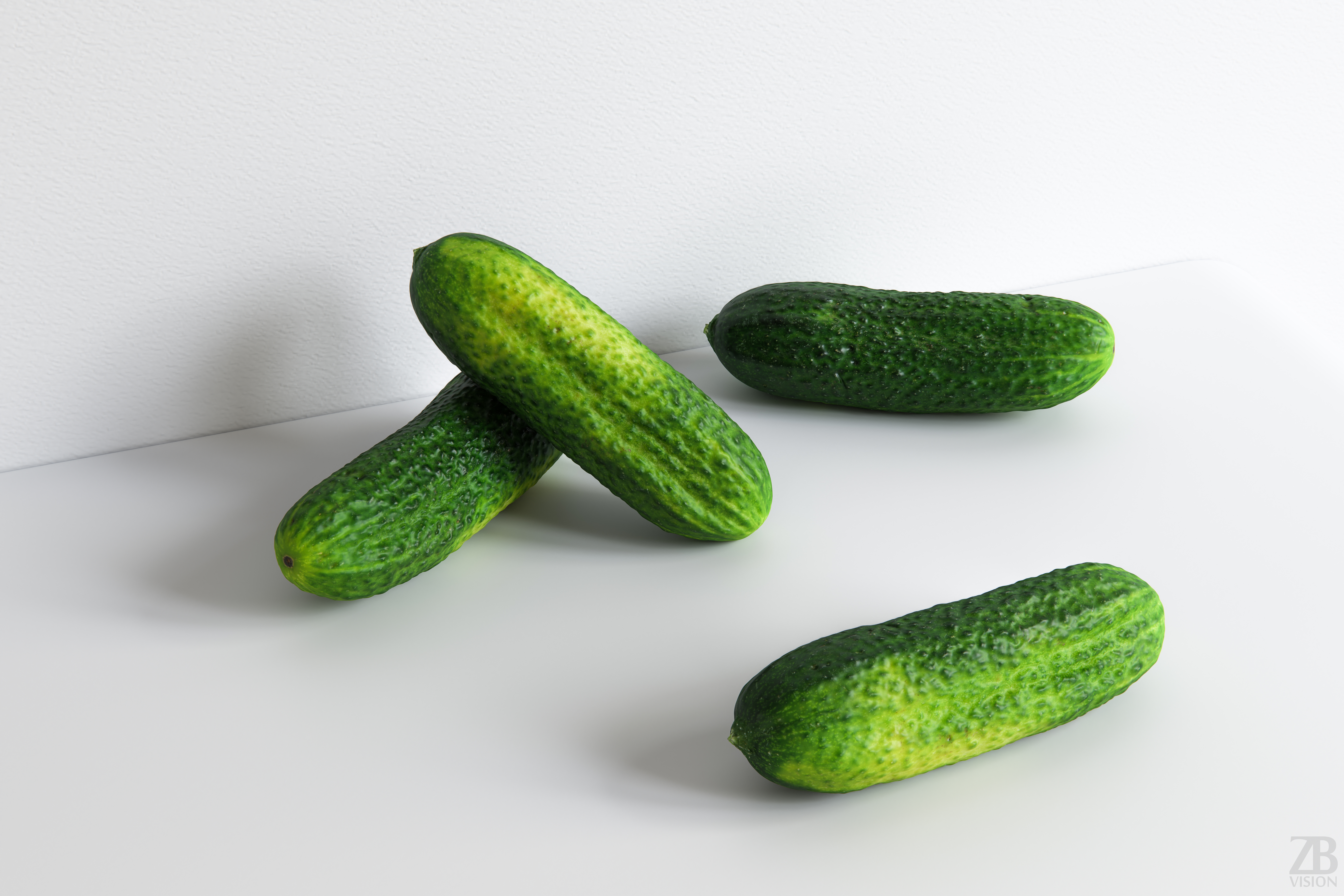 This is a 3d model of a cucumber, västerås variety. It was scanned and prepared for photorealistic renderings, close-ups, stills and animation. The gherkin cucumber model is ready to be inserted in your scene out of the box.