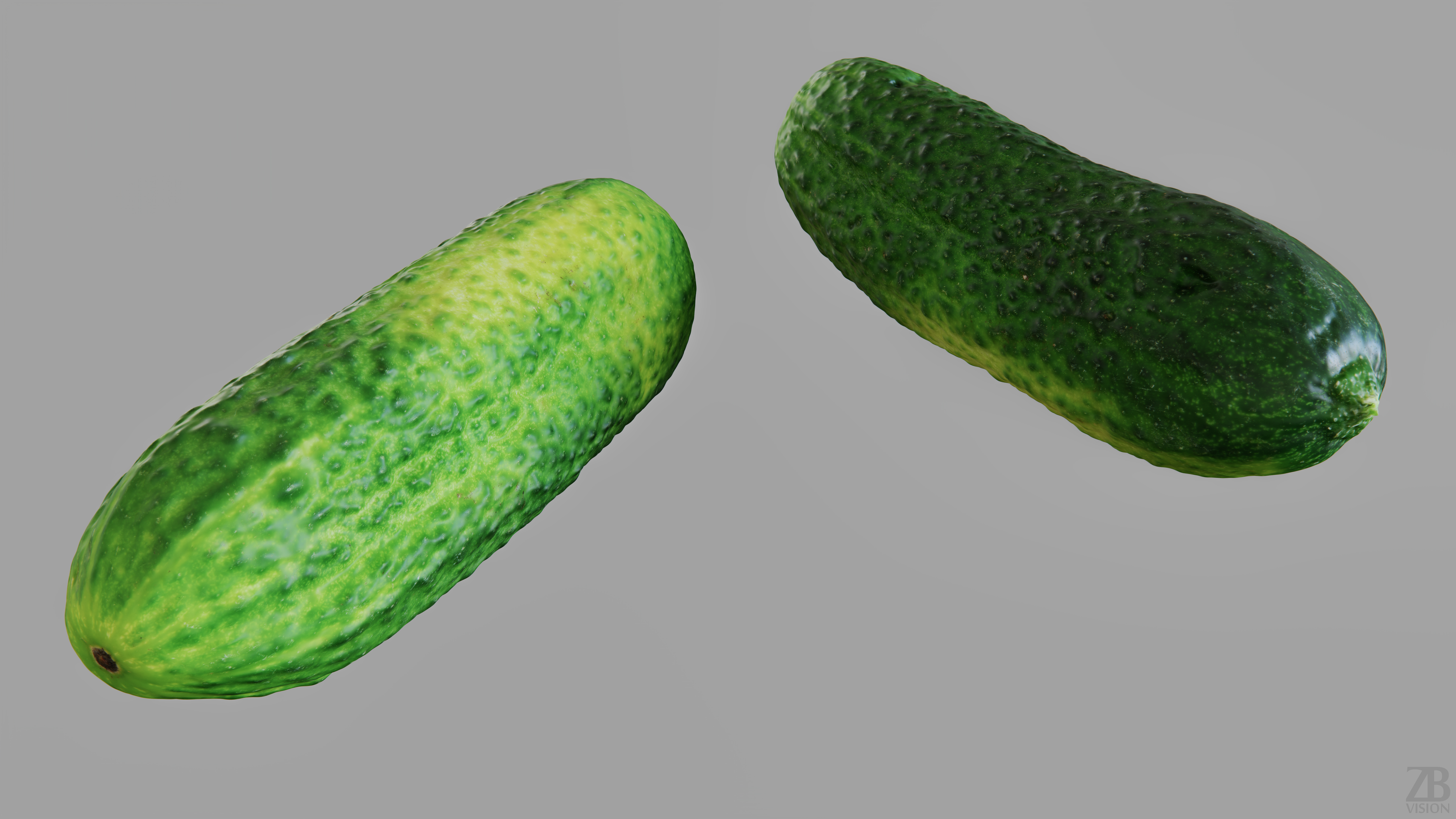 5 maps are supplied with this model. 8192×8192 PNGs and downsampled versions in 2048×2048 JPGs. The maps include ao, diffuse, glossiness, normal, and displacement(tif). A 16K diffuse texture map is also included. The cucumber model is uvw unwrapped.