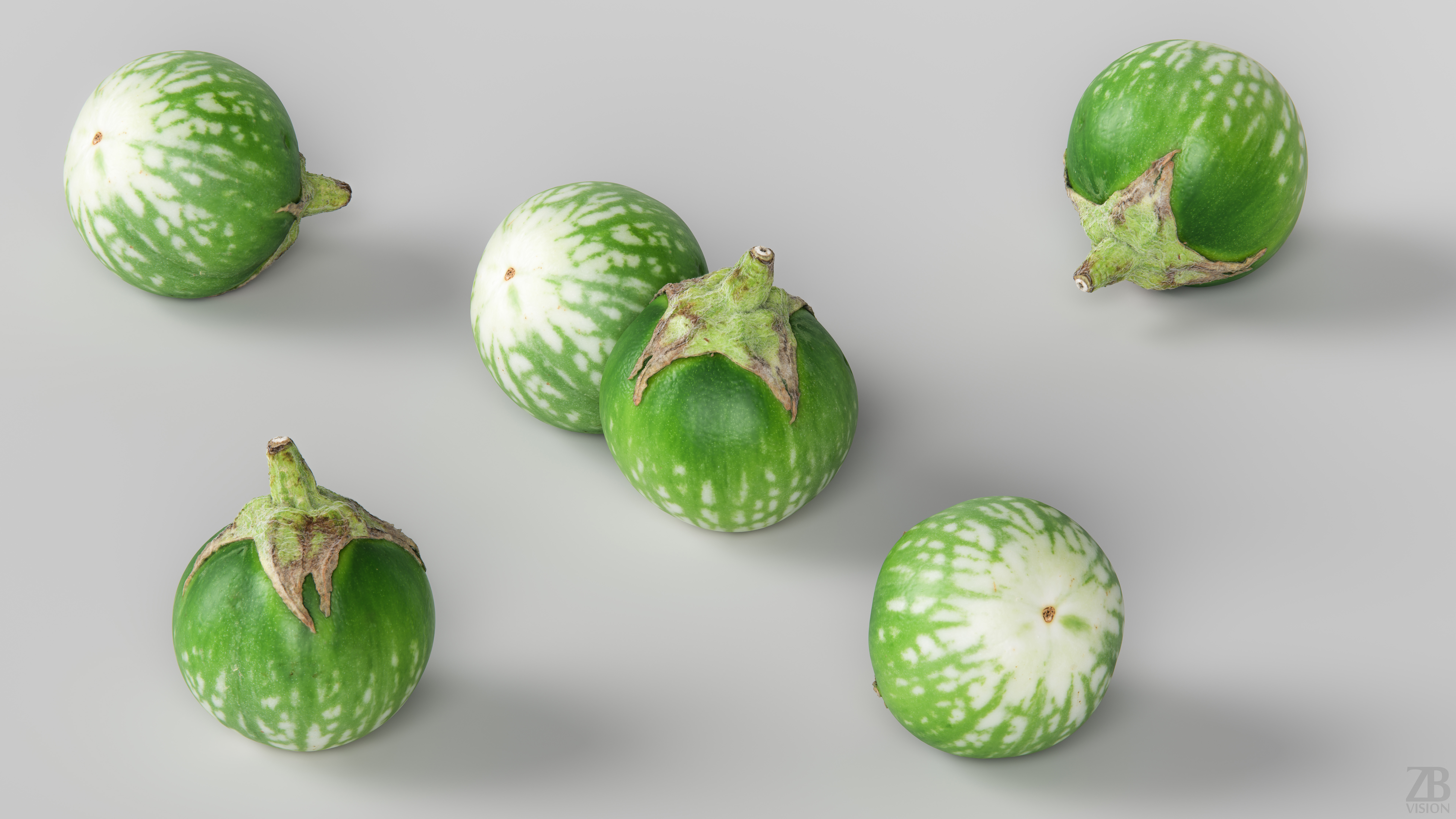 All preview images were rendered with Corona. You will get only the thai apple eggplant and not the scenes used for the preview renders. Please also take into consideration that the preview images are the result of the post-production and the look of green white eggplant 3d model in your scene may differ due to the specific settings of your own scene. Product is ready to render out-of-the-box. Please note that the lights, cameras, and any background not described above objects are not included in the product. The model is clean and alone in the provided files, centred at origin and has real-world scale.