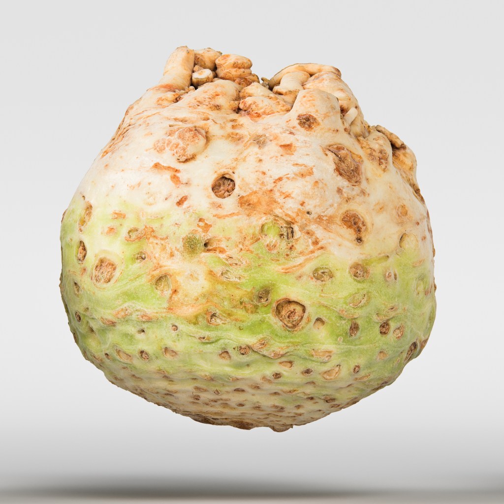 Celery root 3D model is available here: https://www.cgtrader.com/3d-models/food/vegetable/celeriac-001