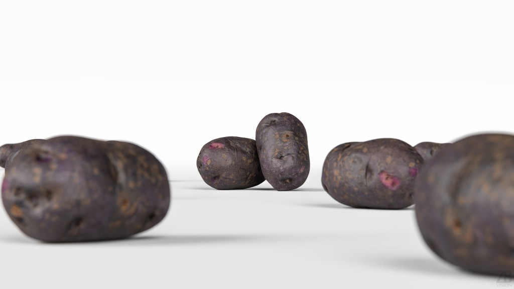 This is a 3d model of a purple potato. It was scaned and prepared for photorealistic renderings, close-ups, stills and animation. The potato model is ready to be inserted in your scene out of the box.