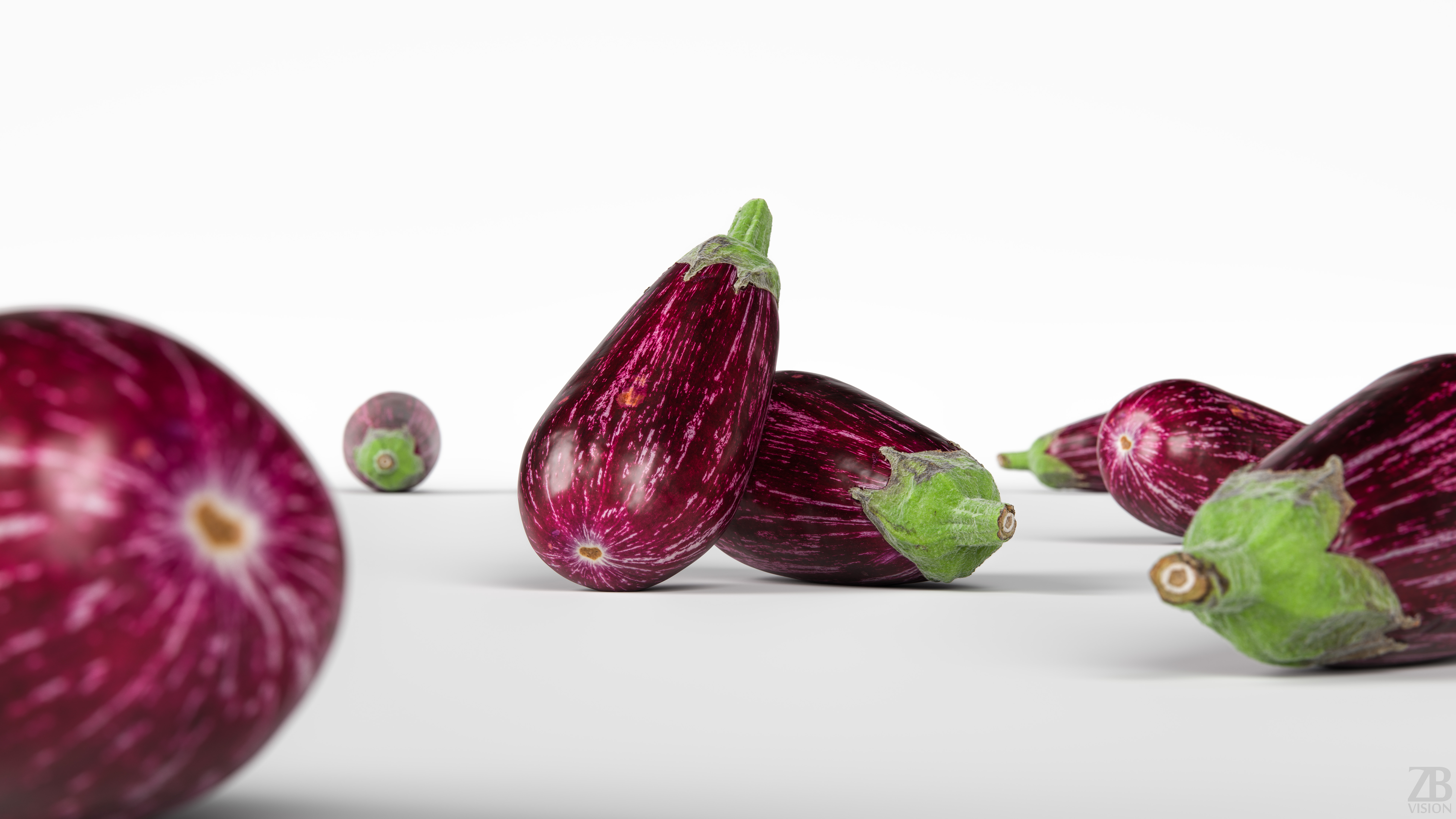 This is a 3d model of an eggplant. It was scanned and prepared for photorealistic renderings, close-ups, stills and animation. The aubergine model is ready to be inserted in your scene out of the box.