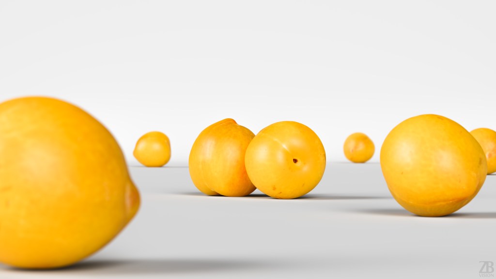 This is a 3d model of a yellow plum. It was scanned and prepared for photorealistic renderings, close-ups, stills and animation. The plum model is ready to be inserted in your scene out of the box.