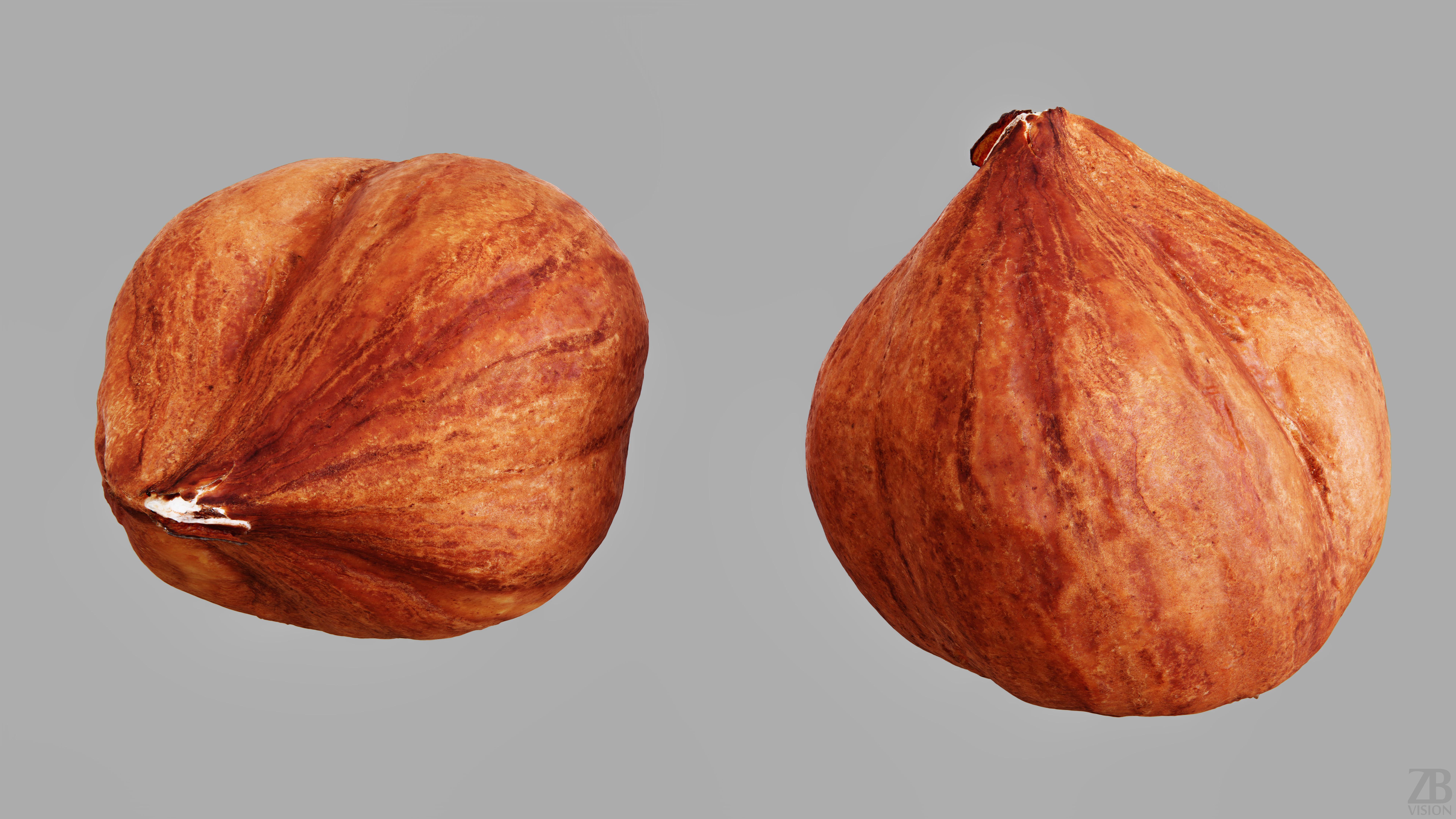 This is a 3d model of a hazelnut. It was scanned and prepared for photorealistic renderings, close-ups, stills and animation. The hazelnut shell model is ready to be inserted in your scene out of the box.