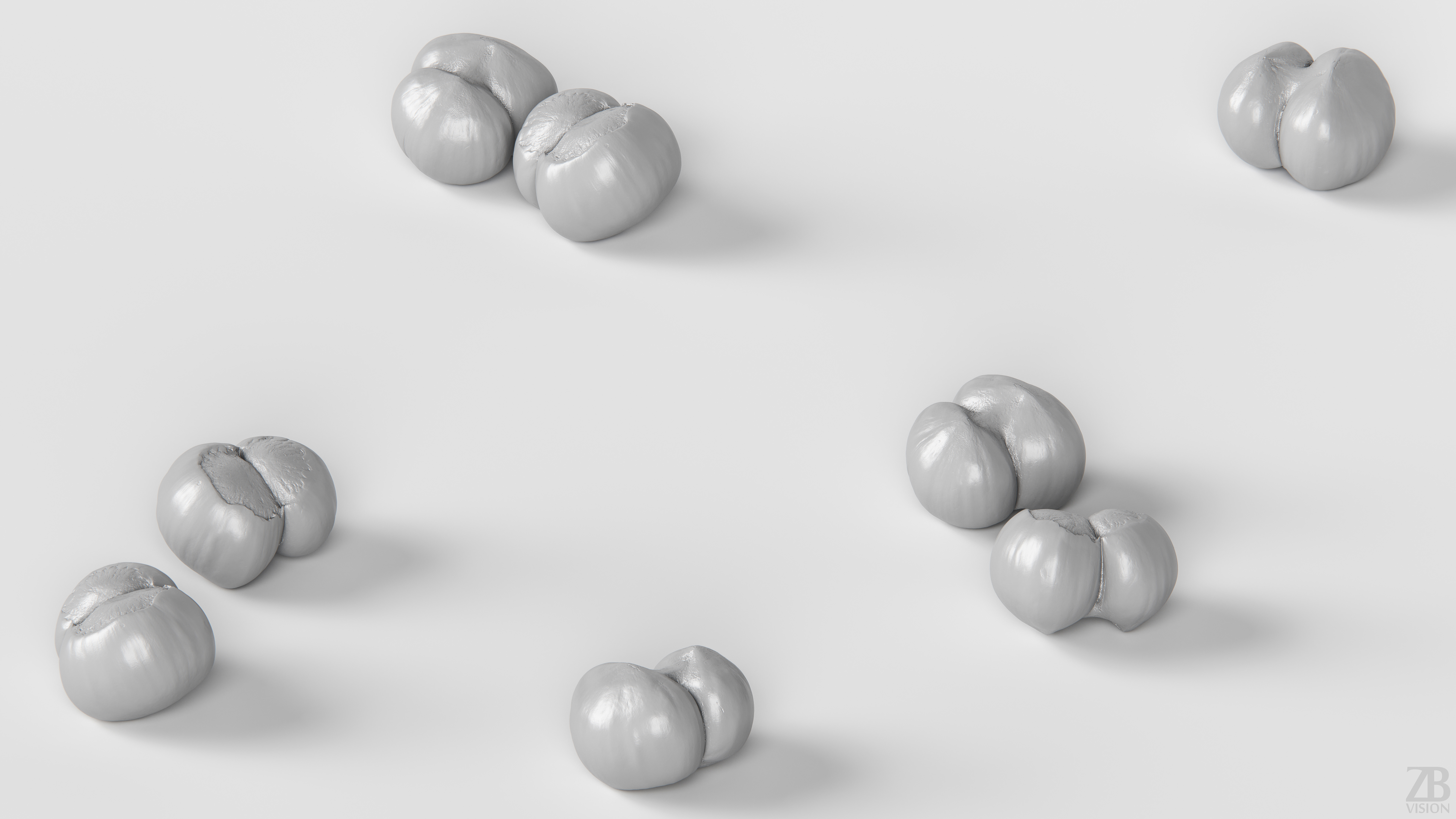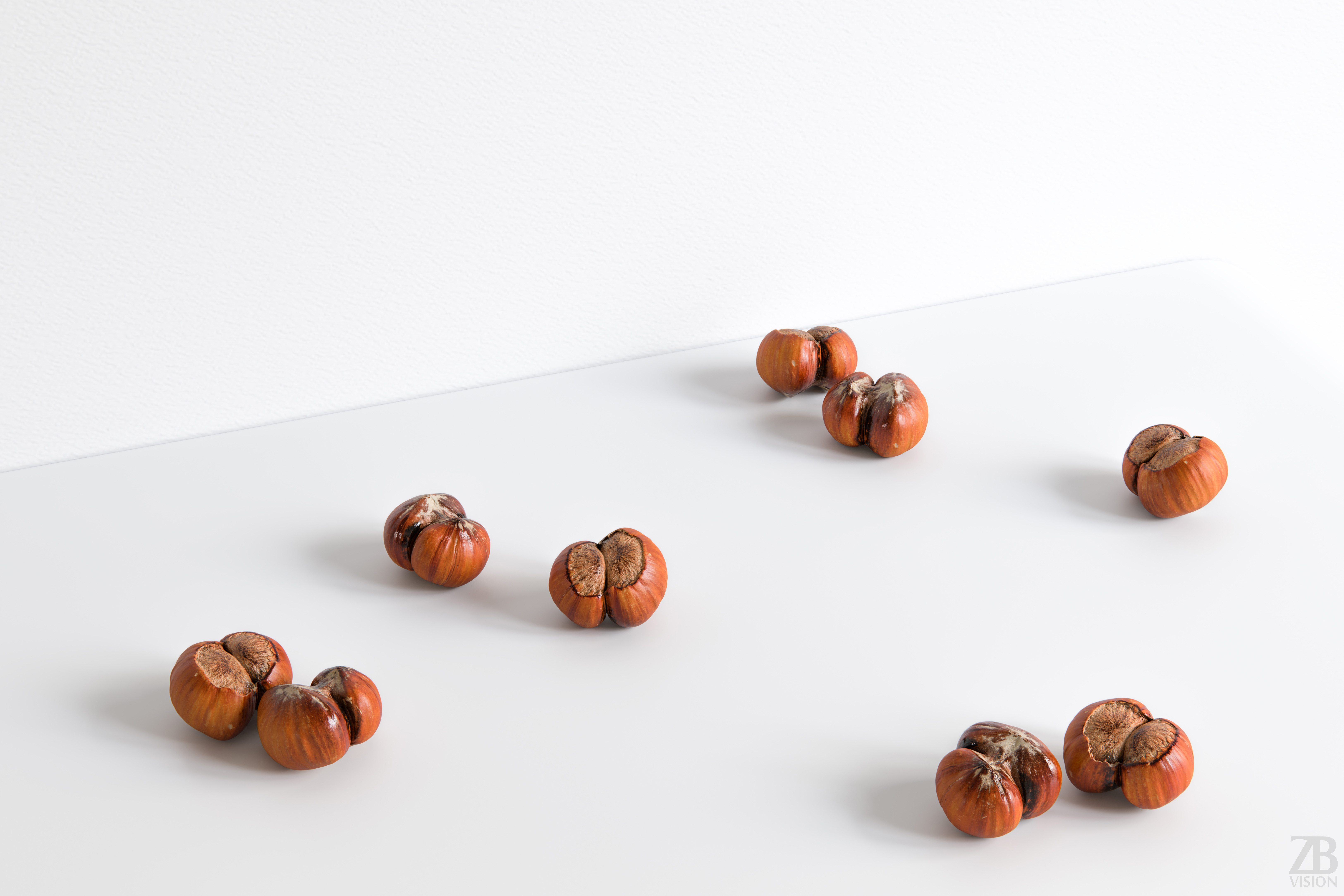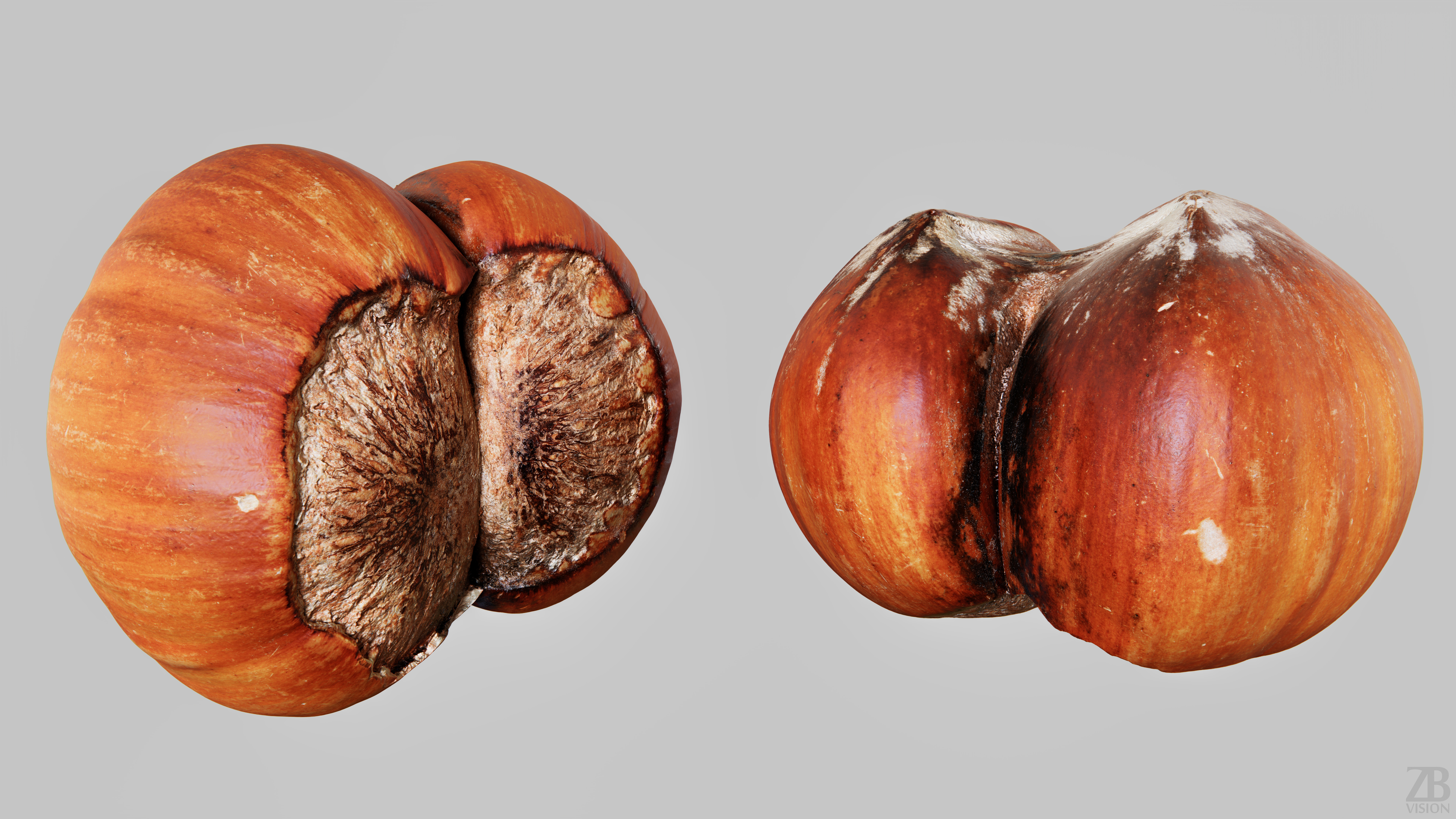 This is a 3d model of a twin hazelnut. It was scanned and prepared for photorealistic renderings, close-ups, stills and animation. The hazelnut shell model is ready to be inserted in your scene out of the box.
