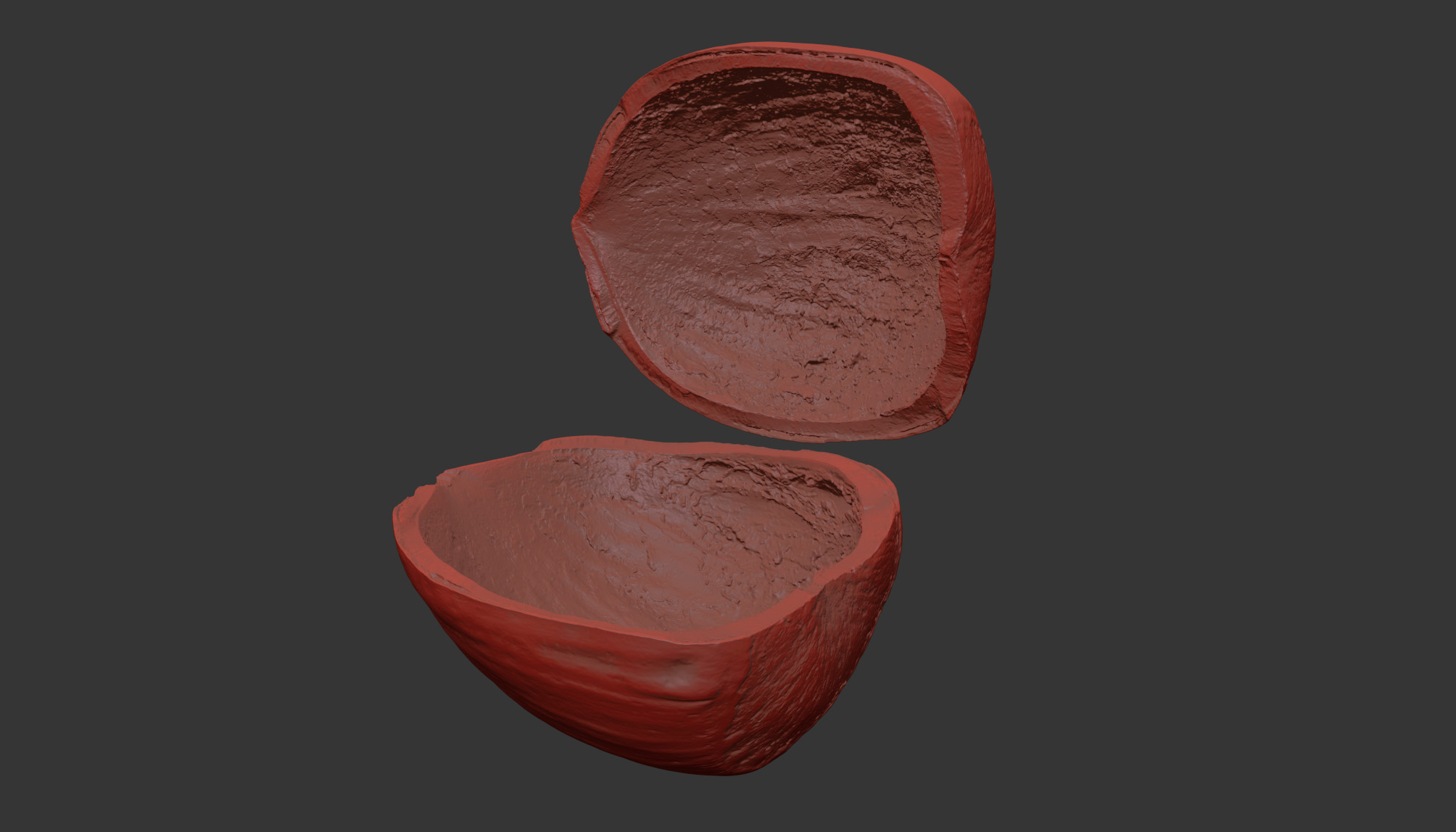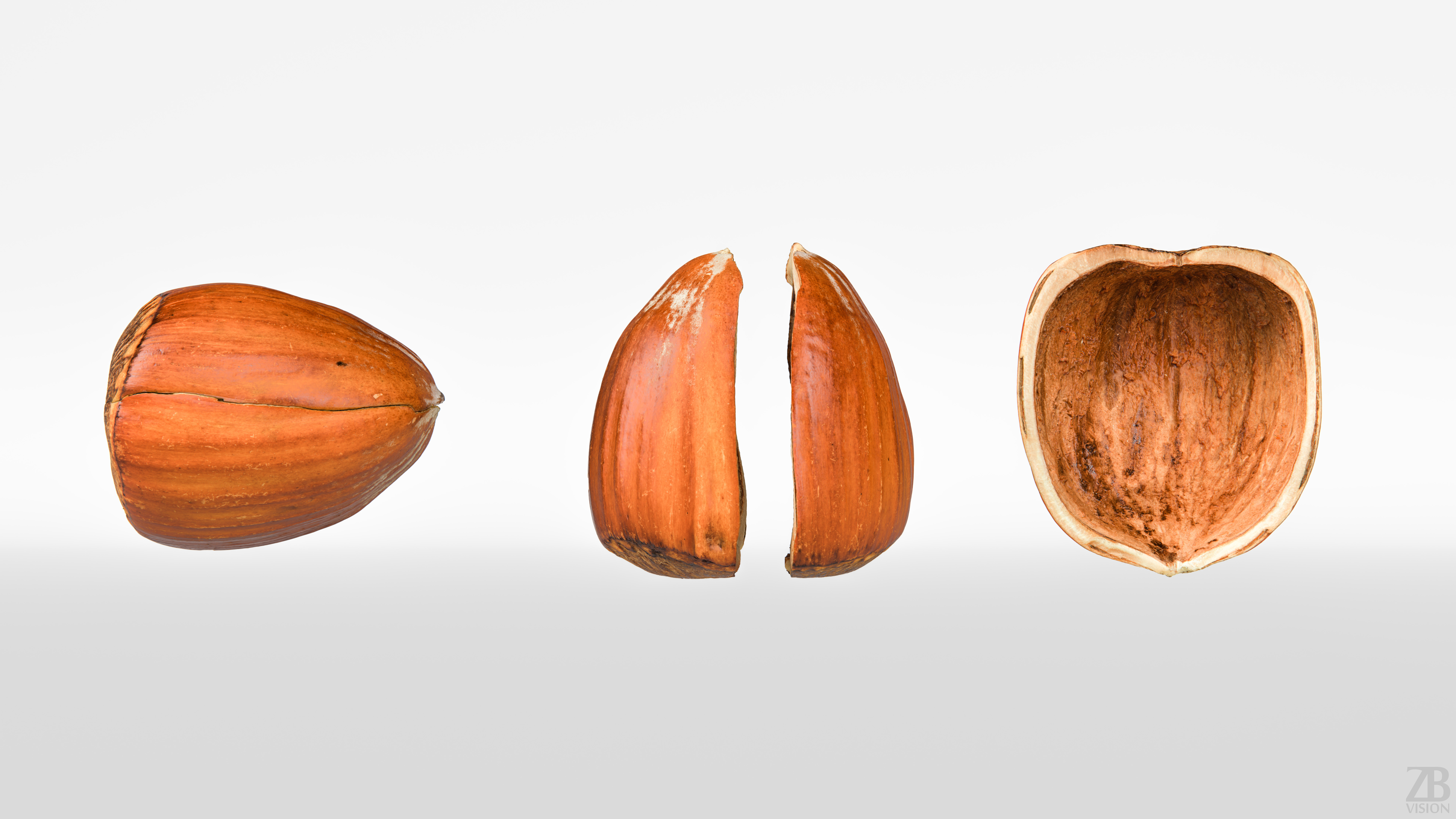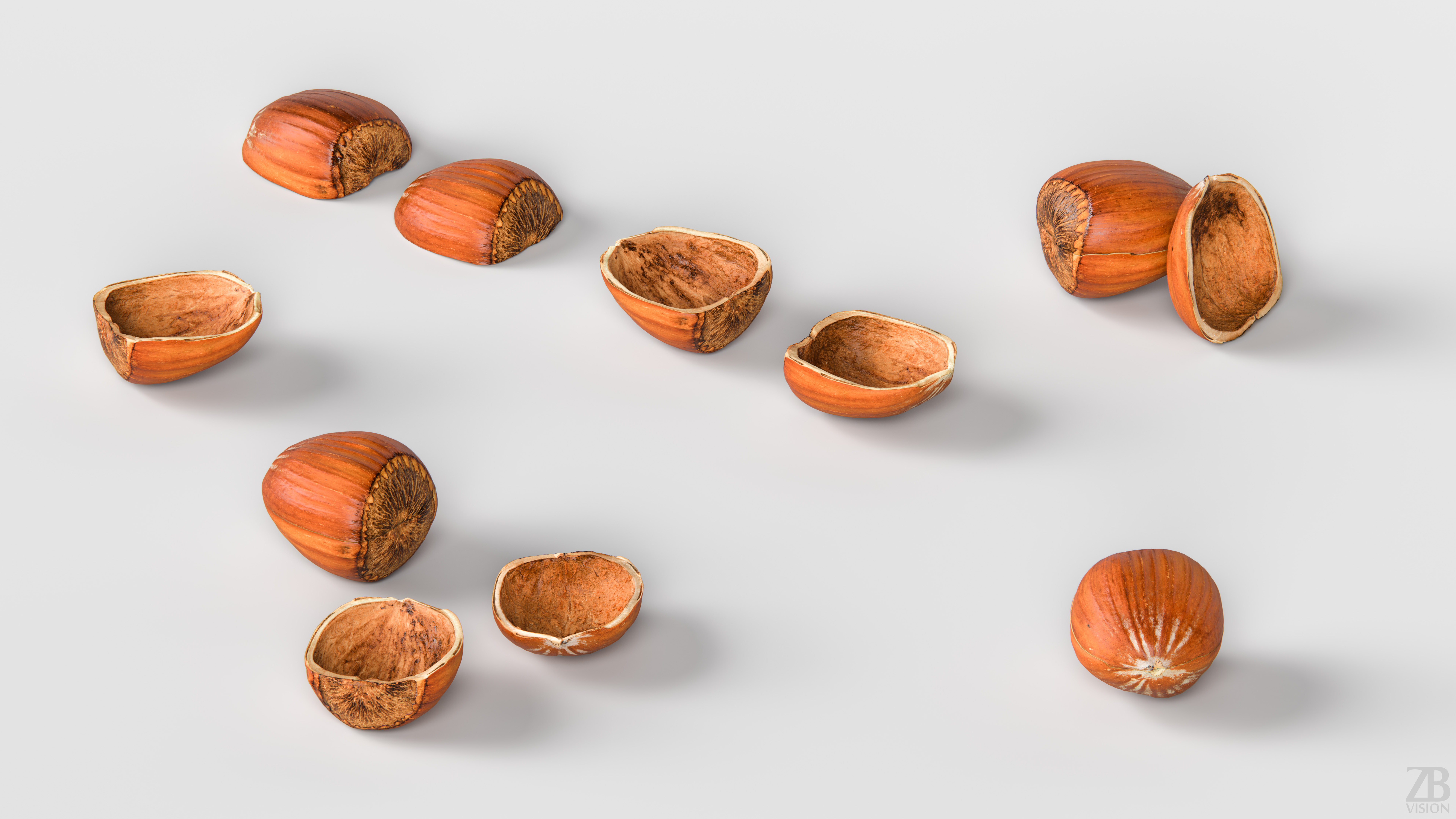 This is a 3d model of a two hazelnut shell halves. It was scanned and prepared for photorealistic renderings, close-ups, stills and animation. The hazelnut shells model are ready to be inserted in your scene out of the box.