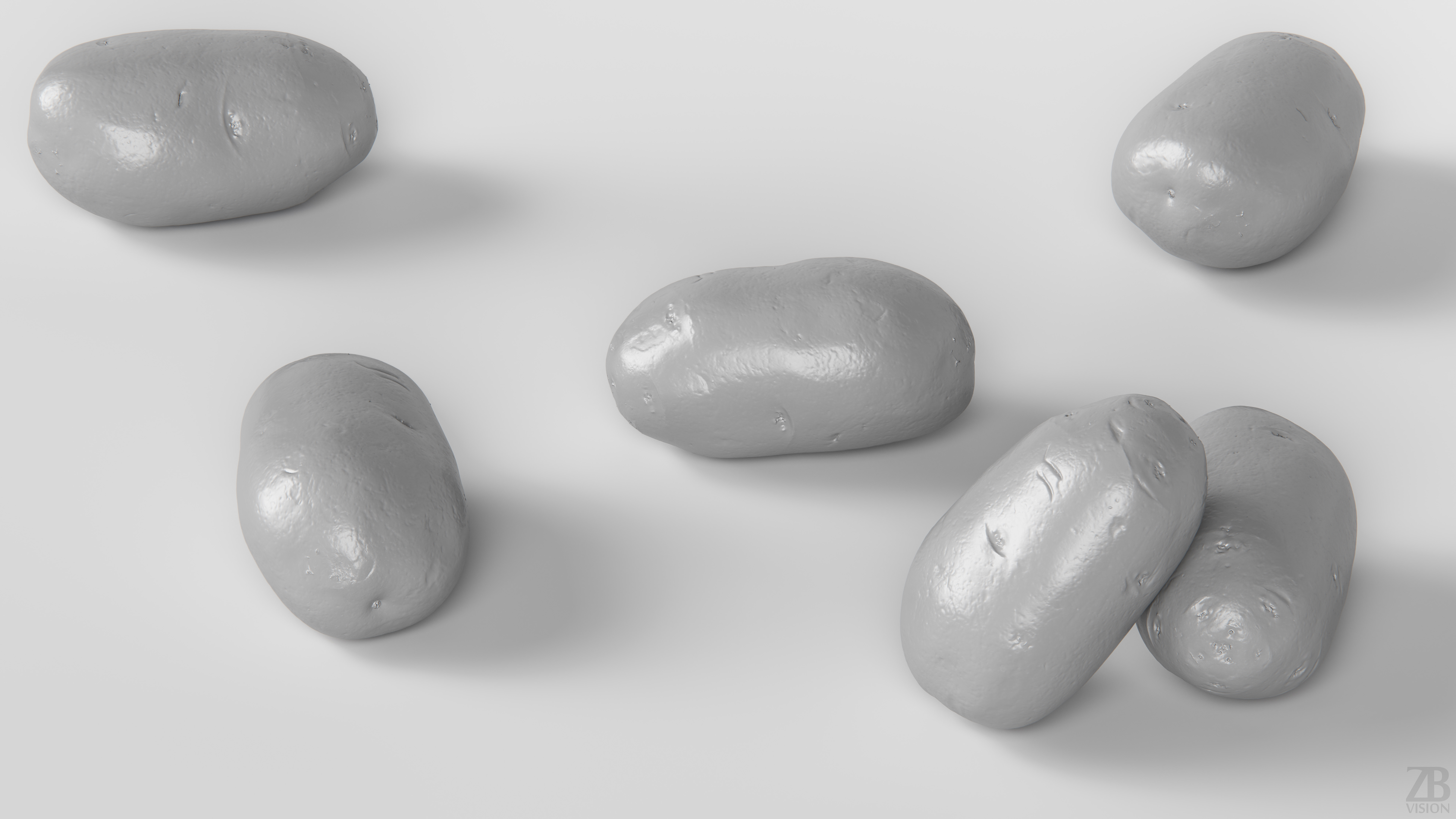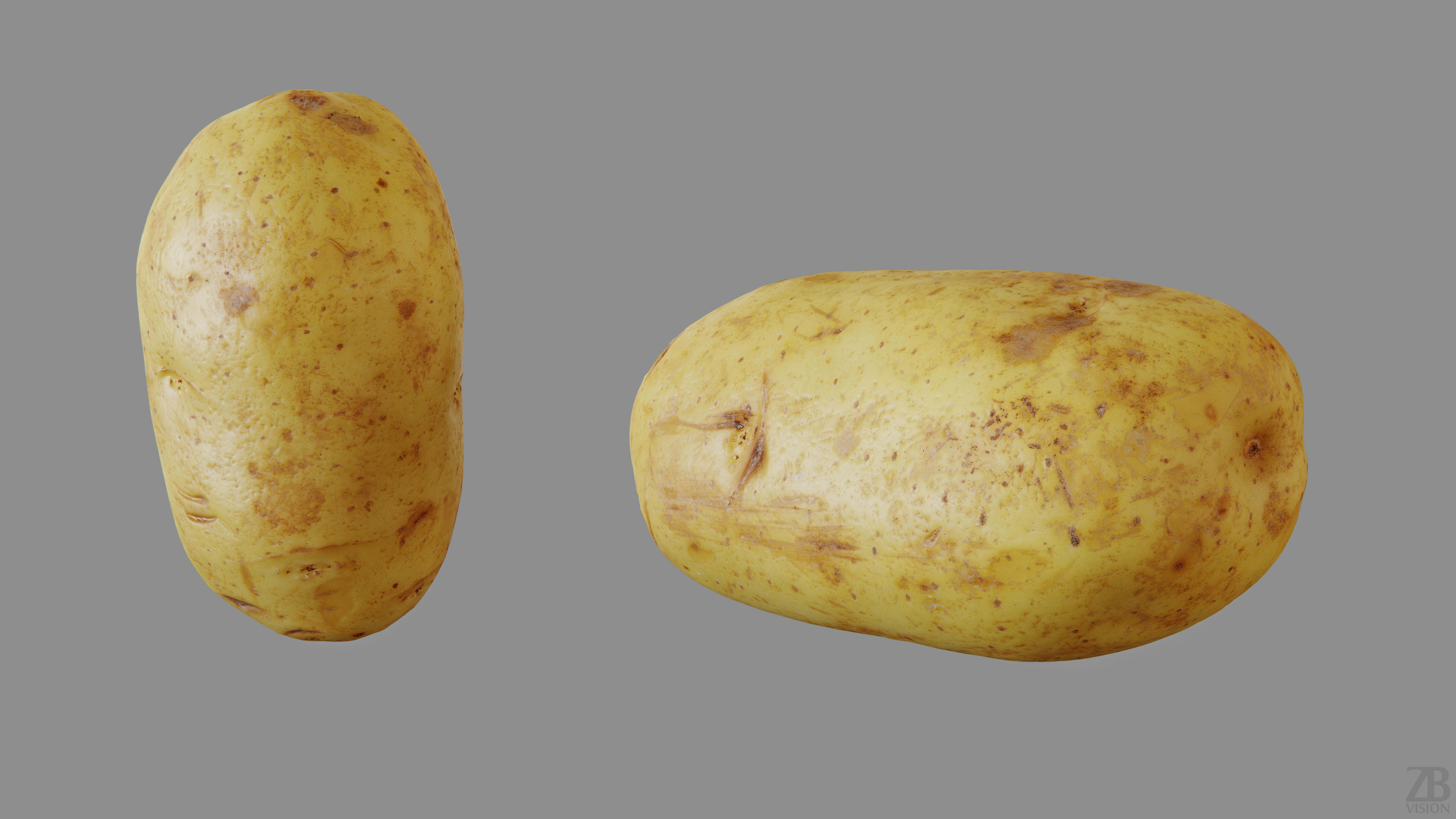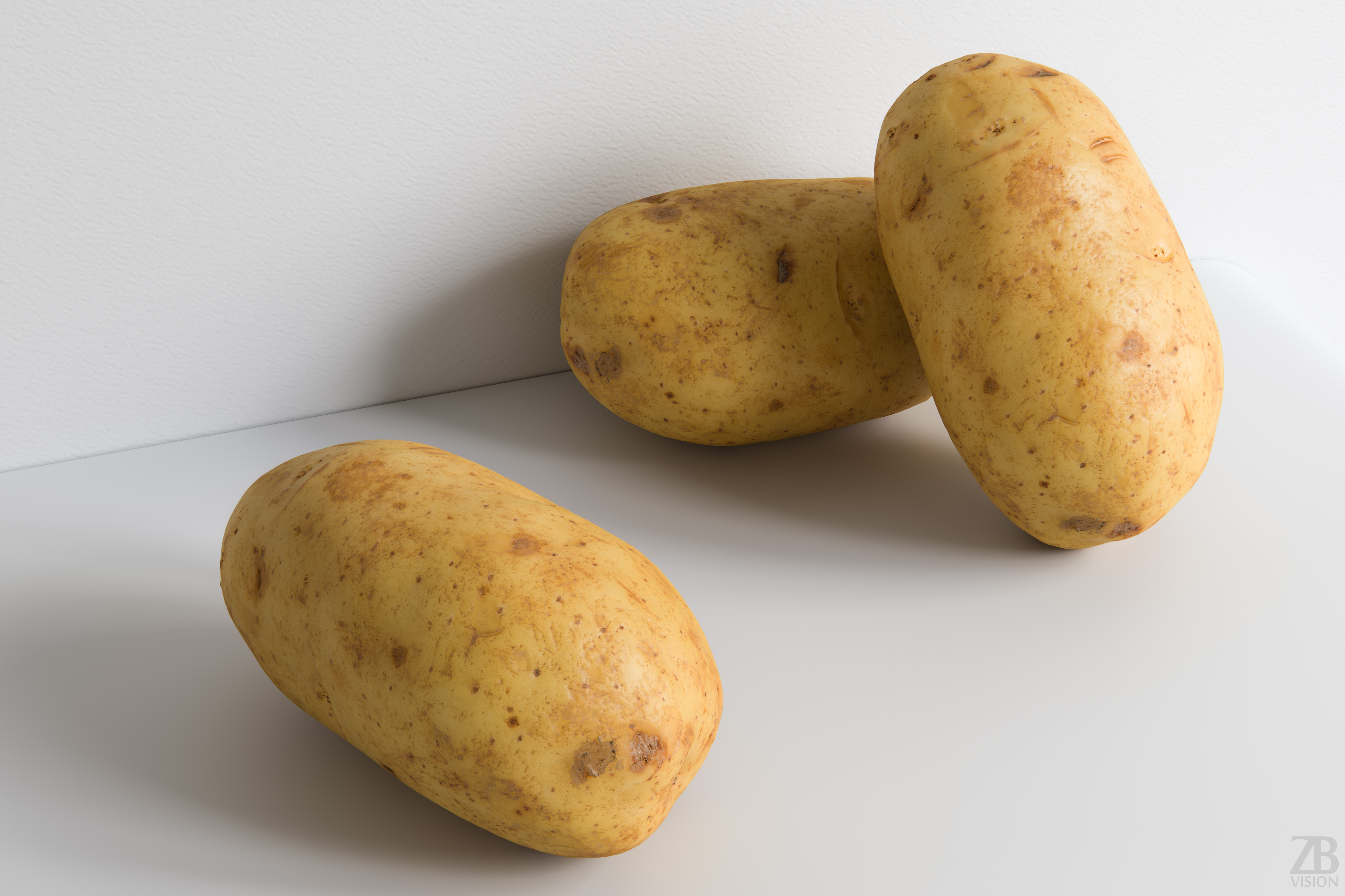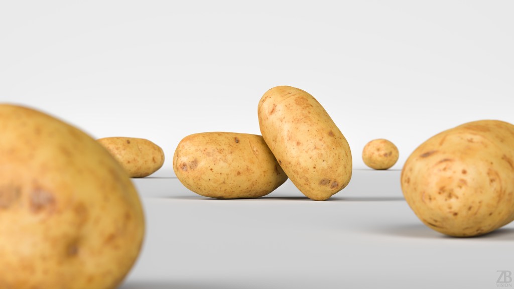 This is a 3d model of a potato. It was scanned and prepared for photorealistic renderings, close-ups, stills and animation. The potato model is ready to be inserted in your scene out of the box.