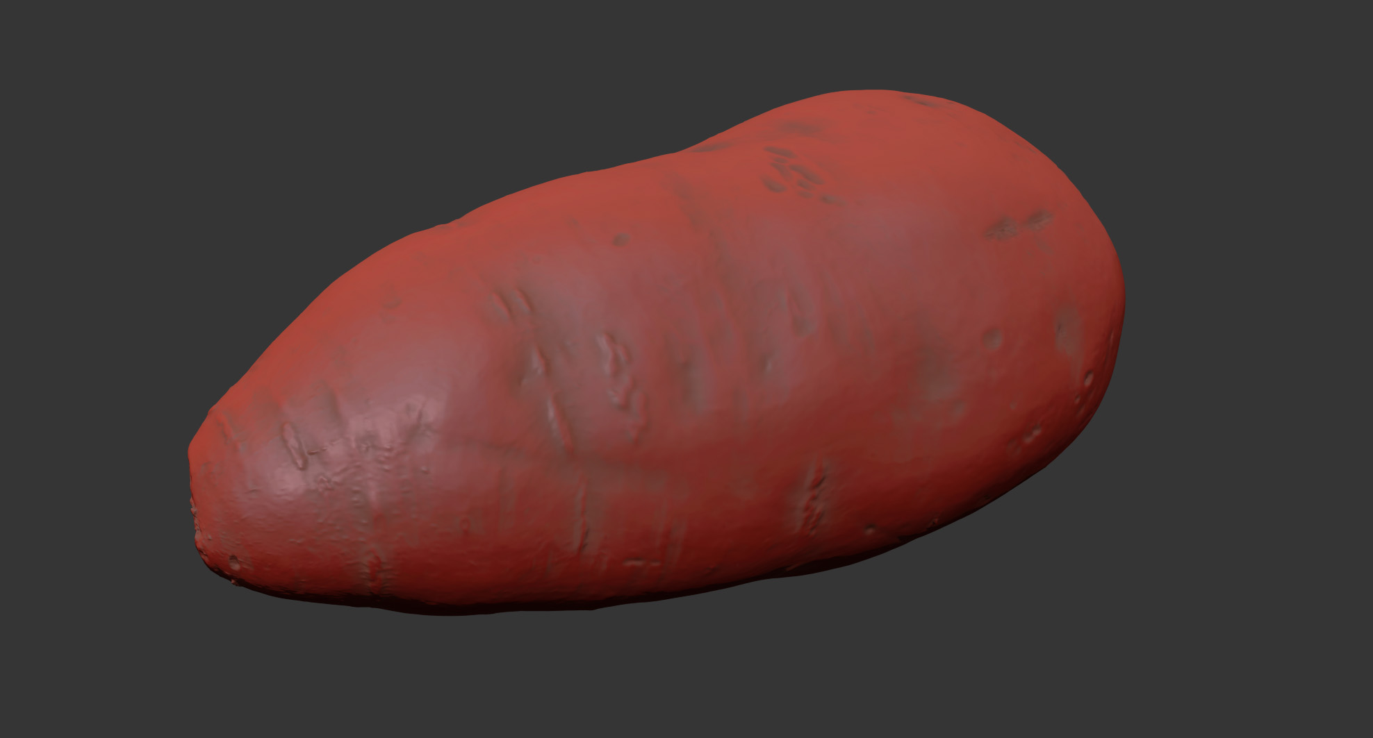 This is a 3d model of a sweet potato. It was scanned and prepared for photorealistic renderings, close-ups, stills and animation. The sweet potato model is ready to be inserted in your scene out of the box.