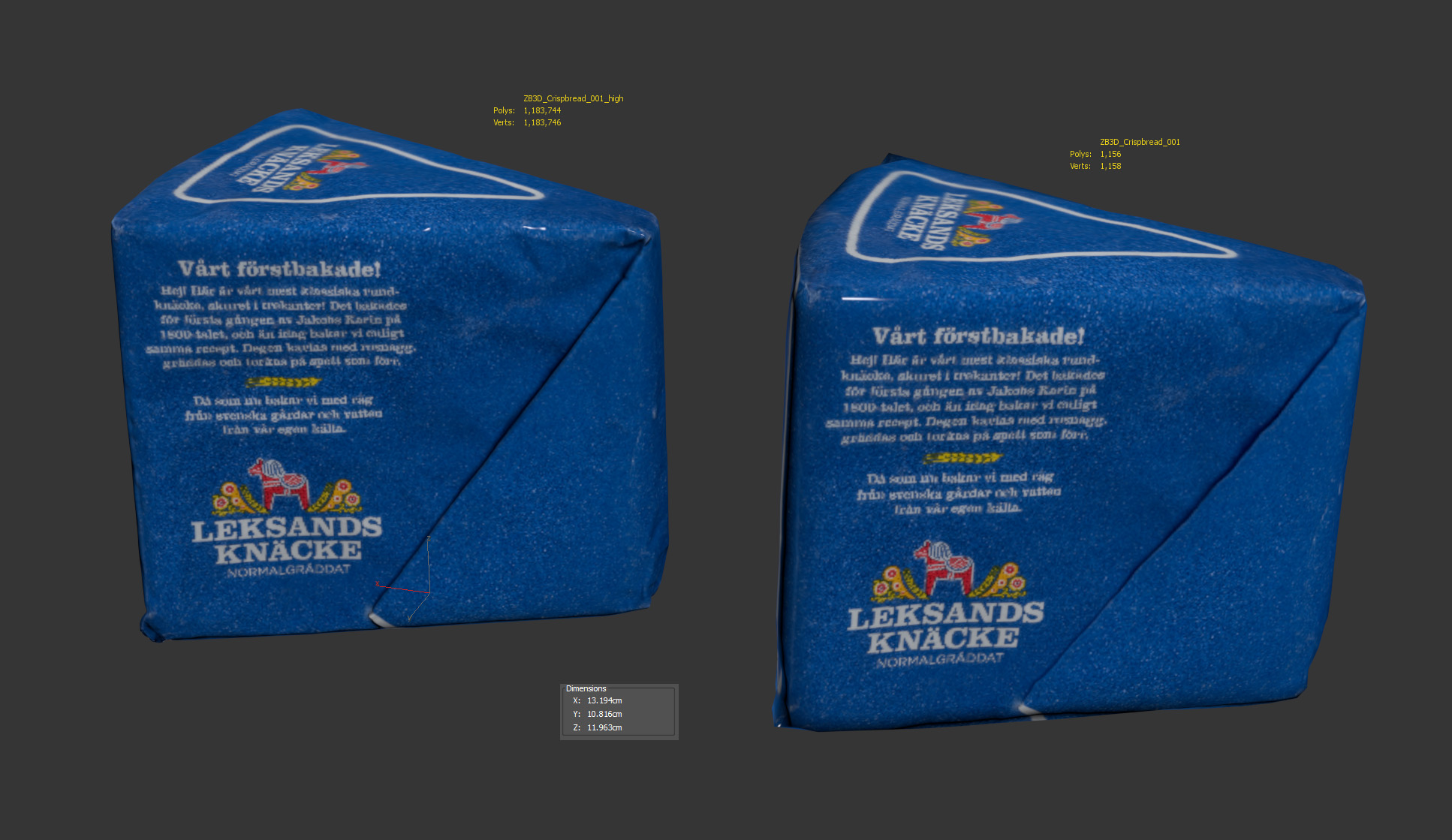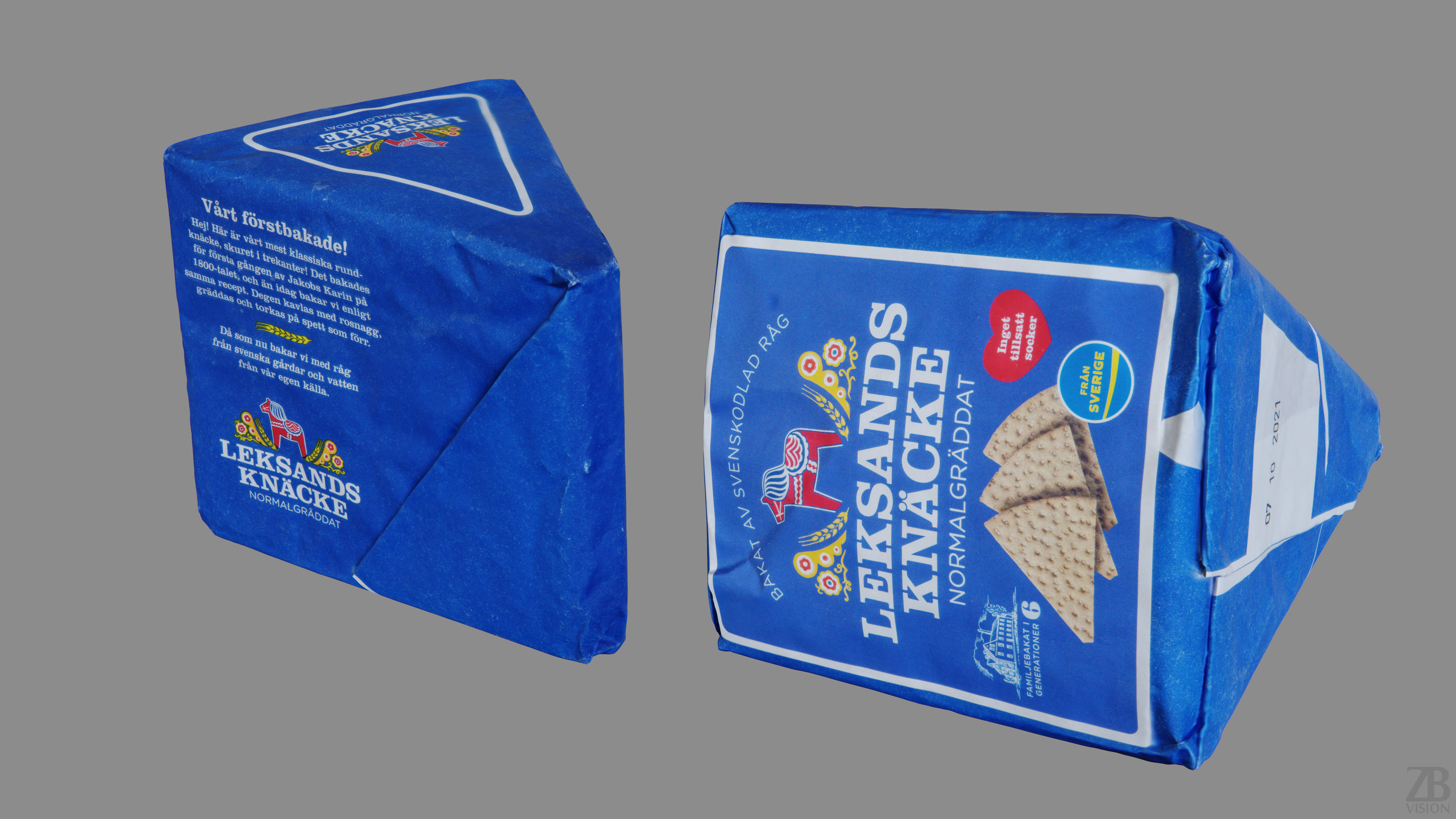 This is a 3d model of a crispbread package. It was scanned and prepared for photorealistic renderings, close-ups, stills and animation. The crispbread package model is ready to be inserted in your scene out of the box.