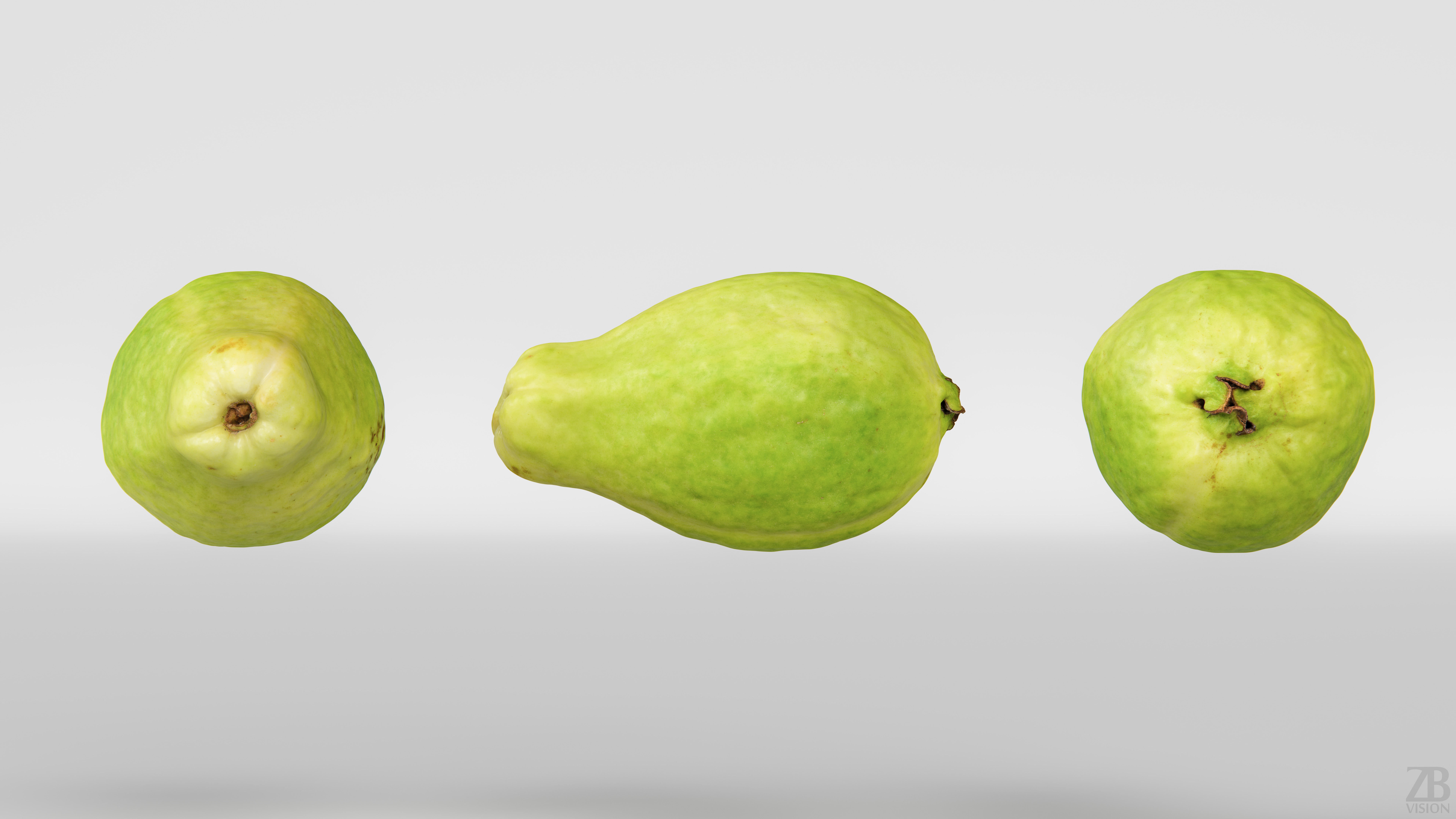 This is a 3d model of a guava. It was scanned and prepared for photorealistic renderings, close-ups, stills and animation. The guava model is ready to be inserted in your scene out of the box.
