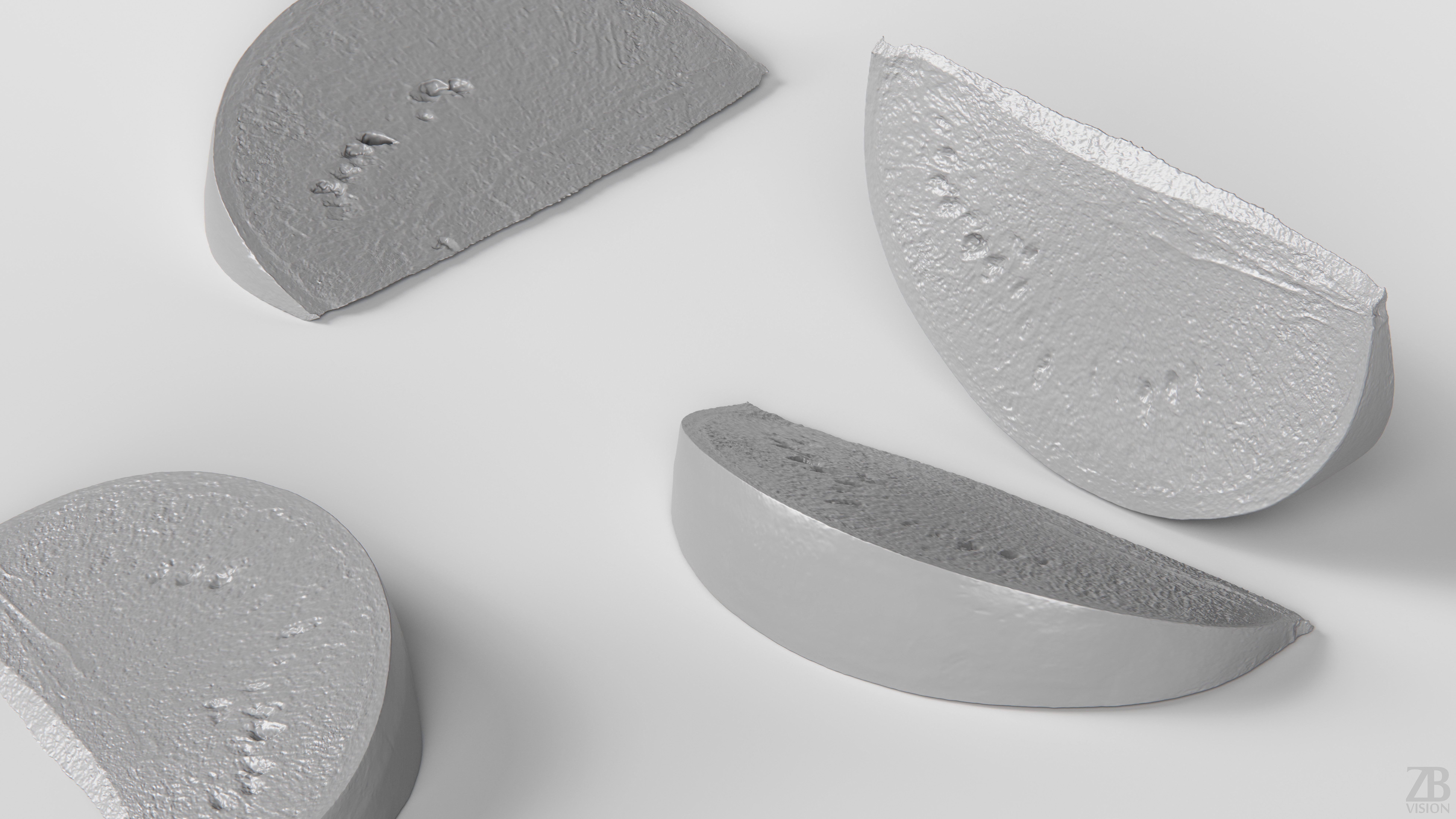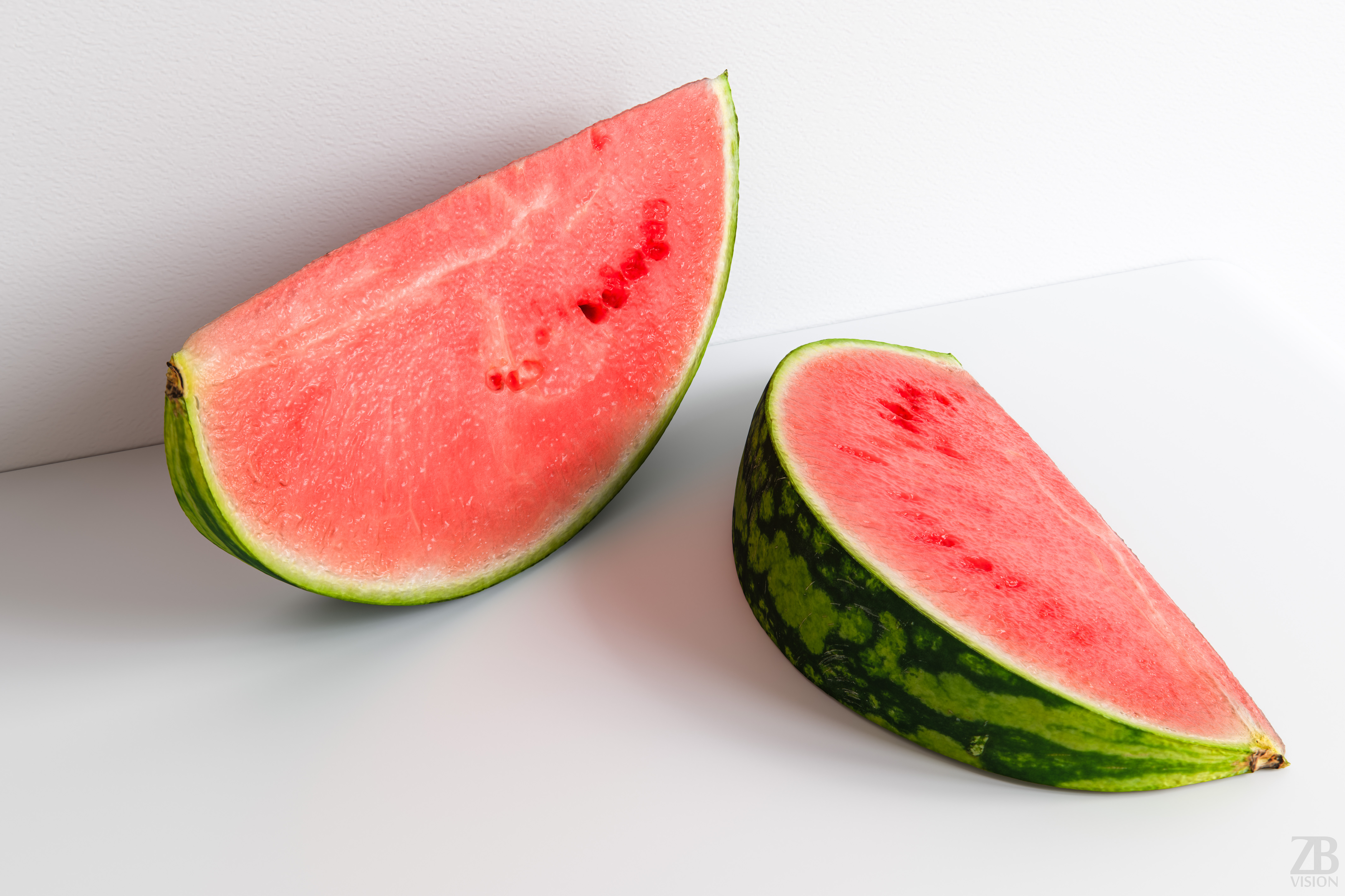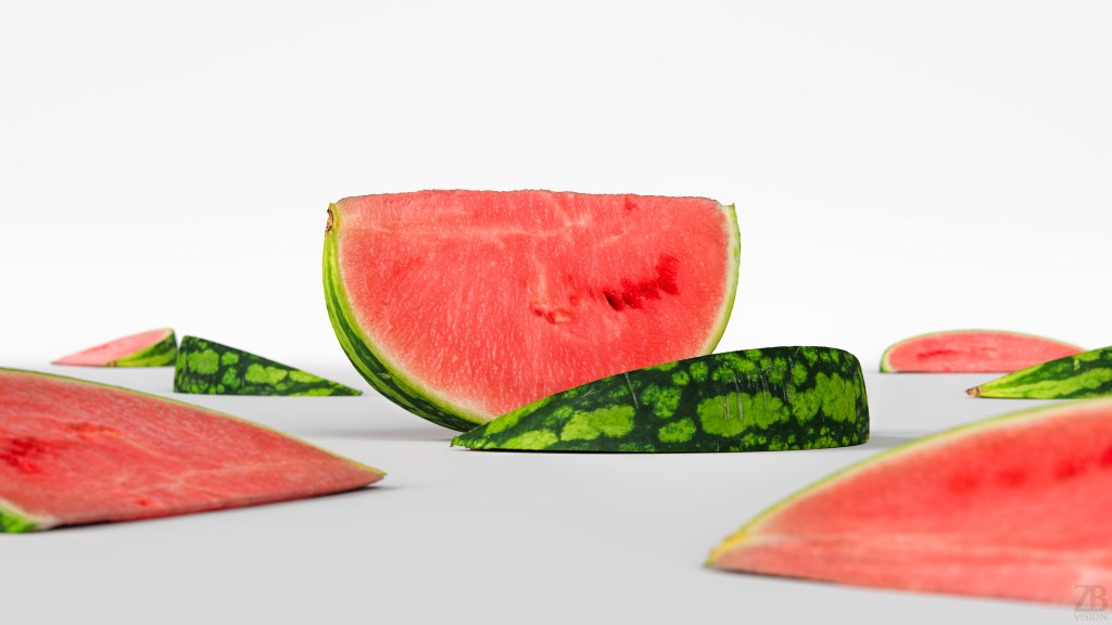 This is a 3d model of a watermelon slice. It was scanned and prepared for photorealistic renderings, close-ups, stills and animation. The watermelon model is ready to be inserted in your scene out of the box.