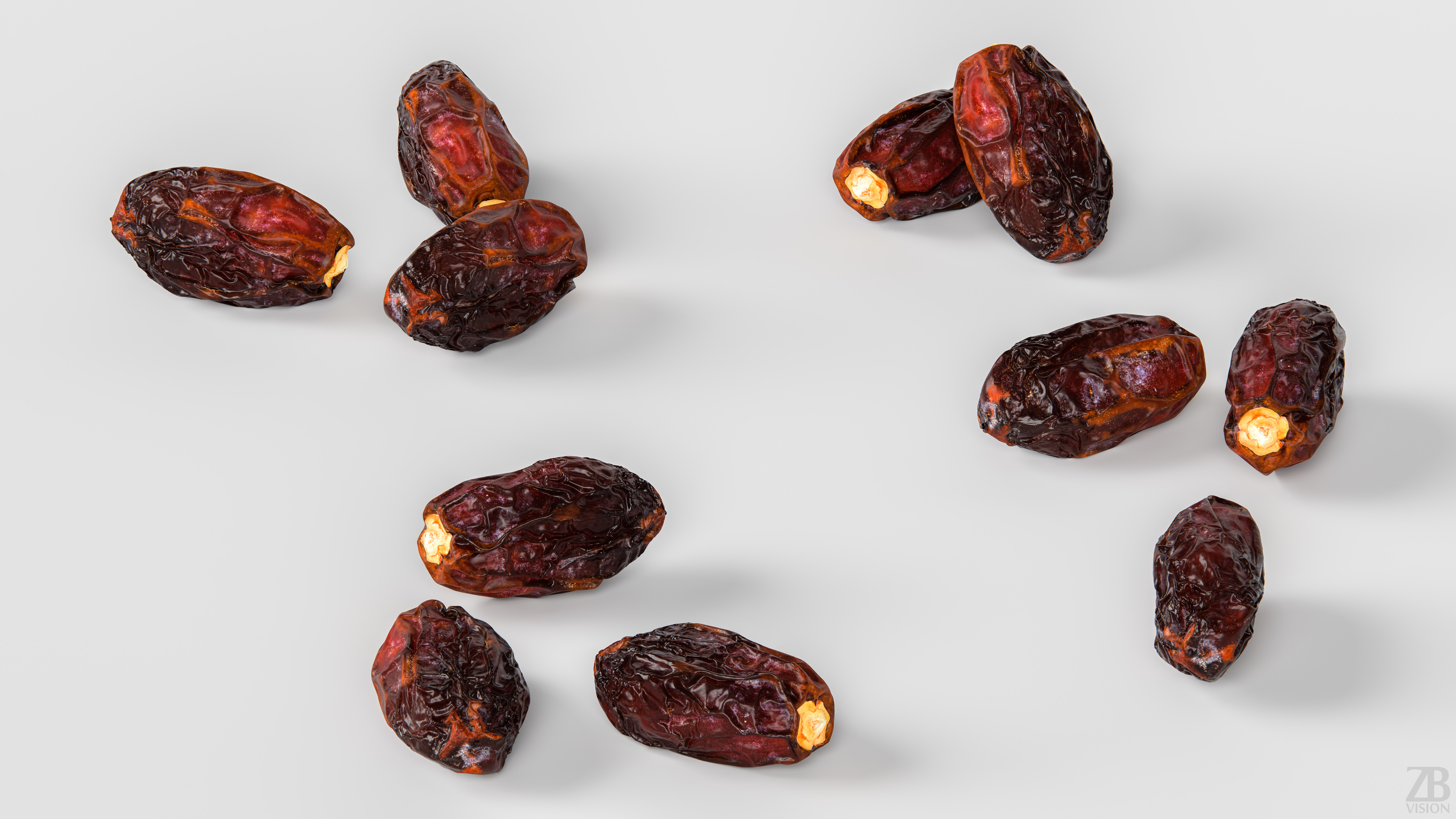 Dried date fruit 3D model is available here: https://www.cgtrader.com/3d-models/food/fruit/date-003