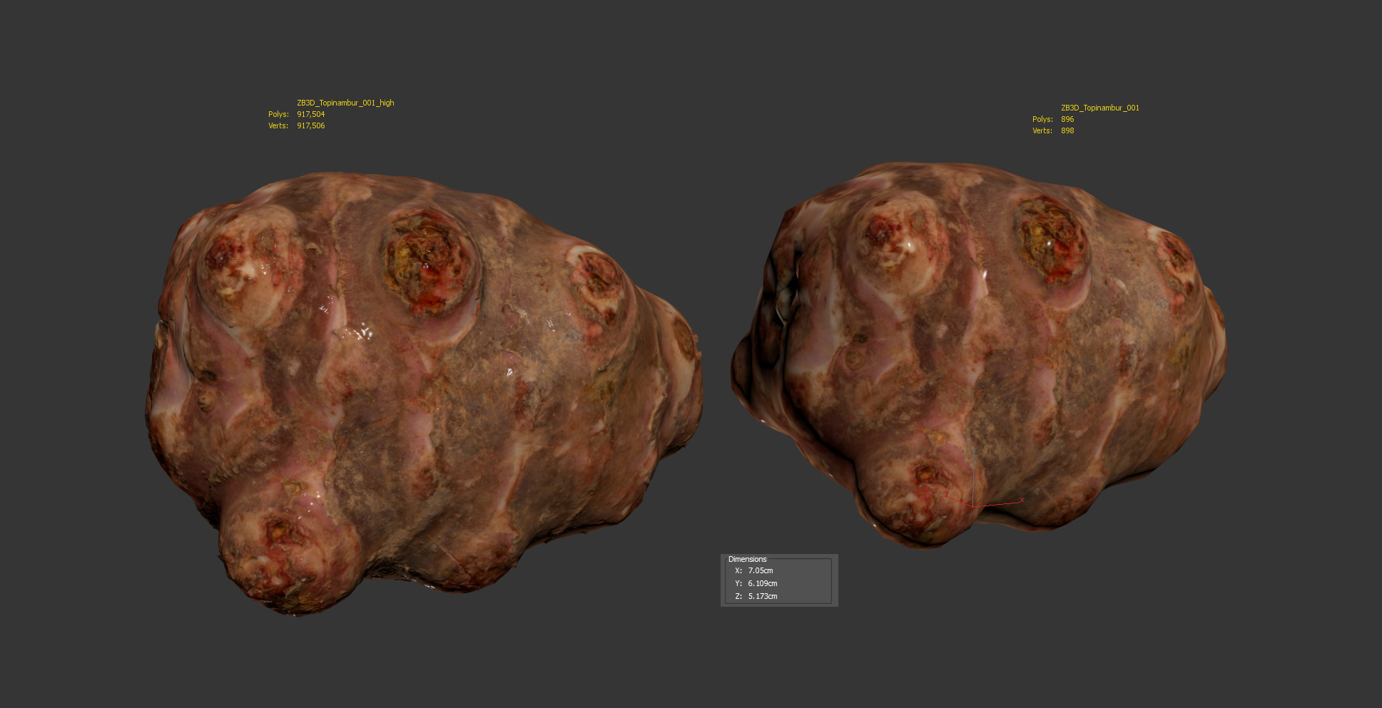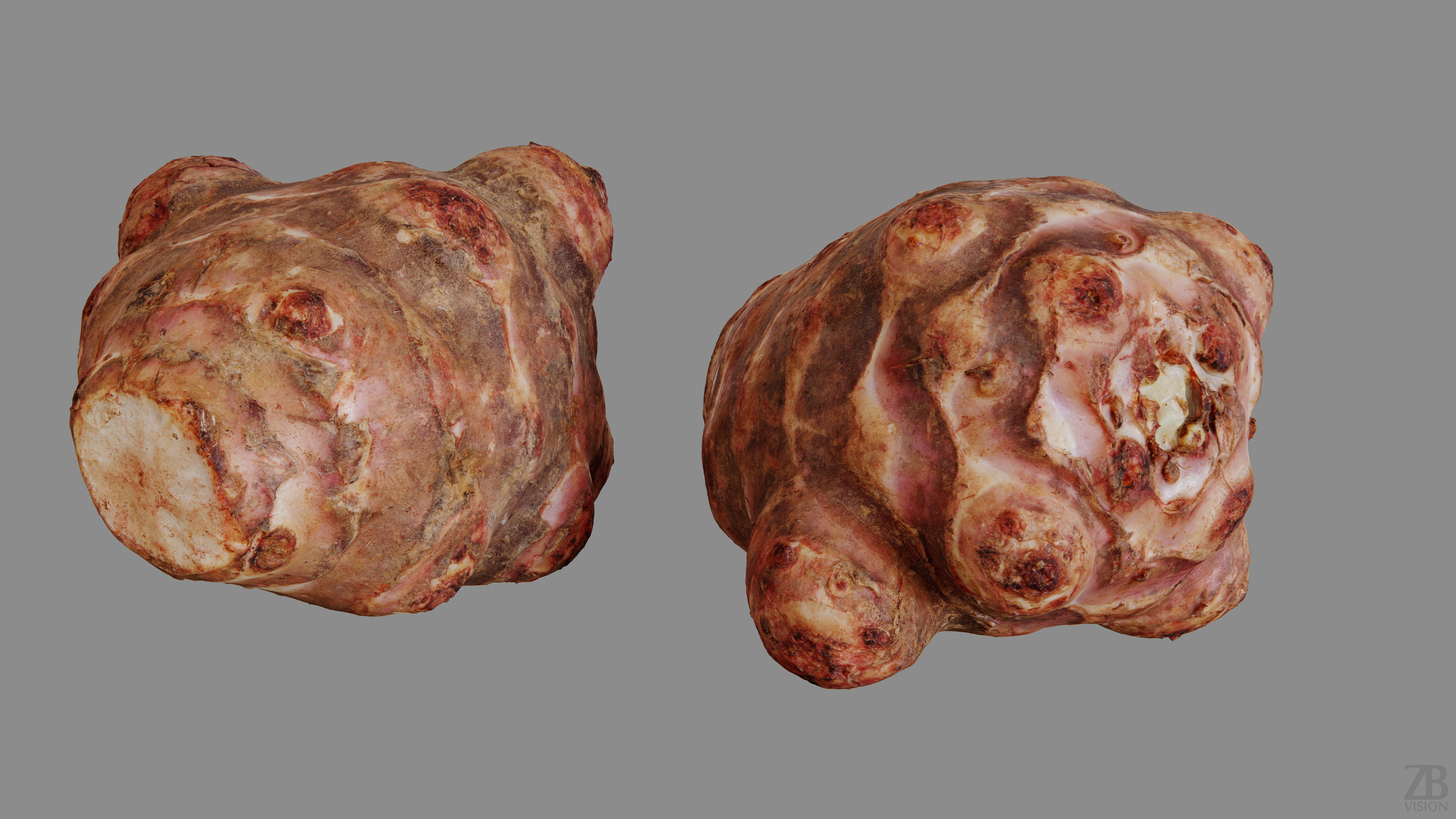 This is a 3d model of a topinambur, aka Jerusalem artichoke. It was scanned and prepared for photorealistic renderings, close-ups, stills and animation. The sunroot model is ready to be inserted in your scene out of the box.