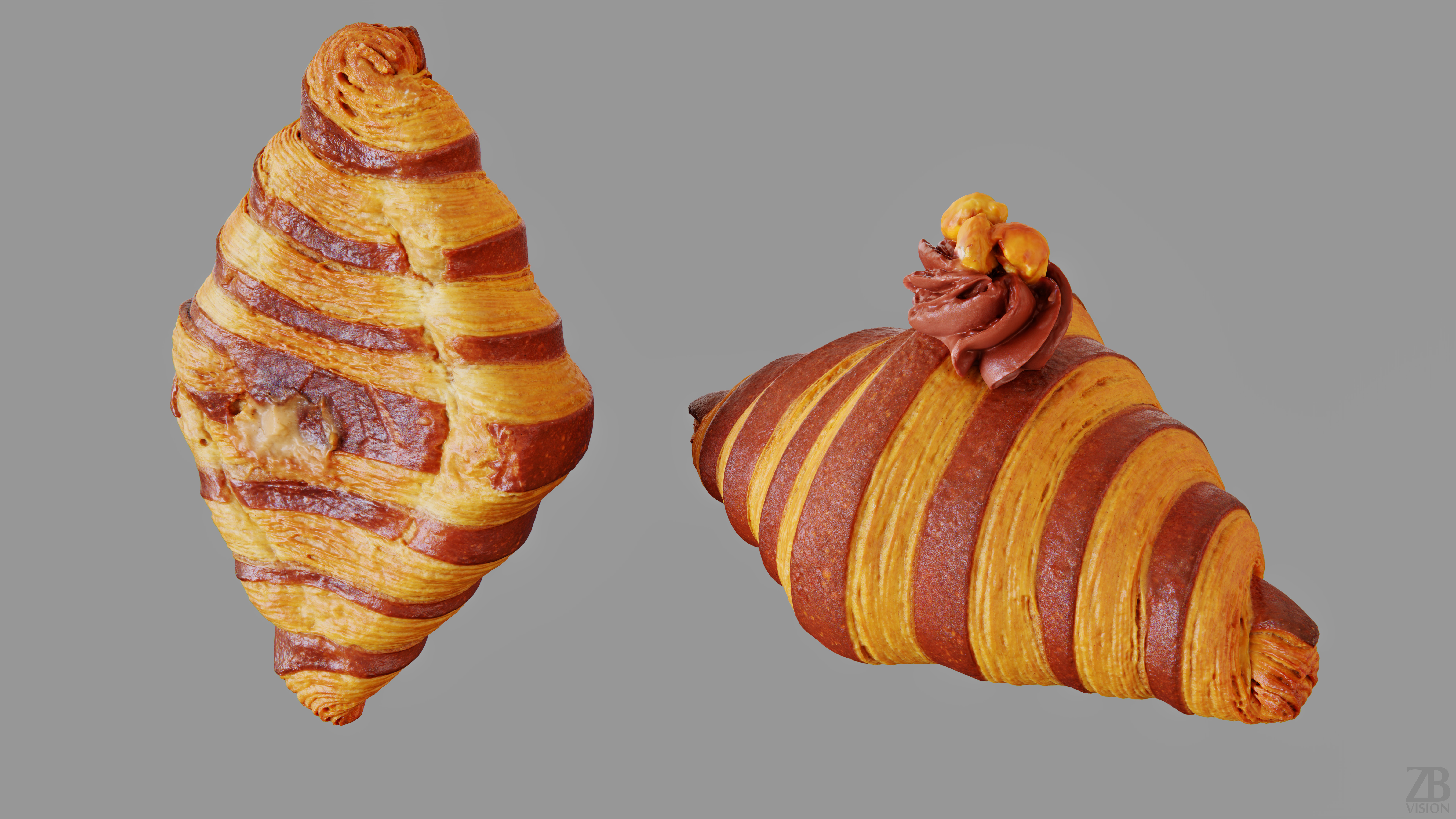 5 maps are supplied with this model. 8192×8192 PNGs and downsampled versions in 2048×2048 JPGs. The maps include ao, diffuse, glossiness, normal and displacement(tif). A 16K diffuse texture map is also included. The croissant model is uvw unwrapped.