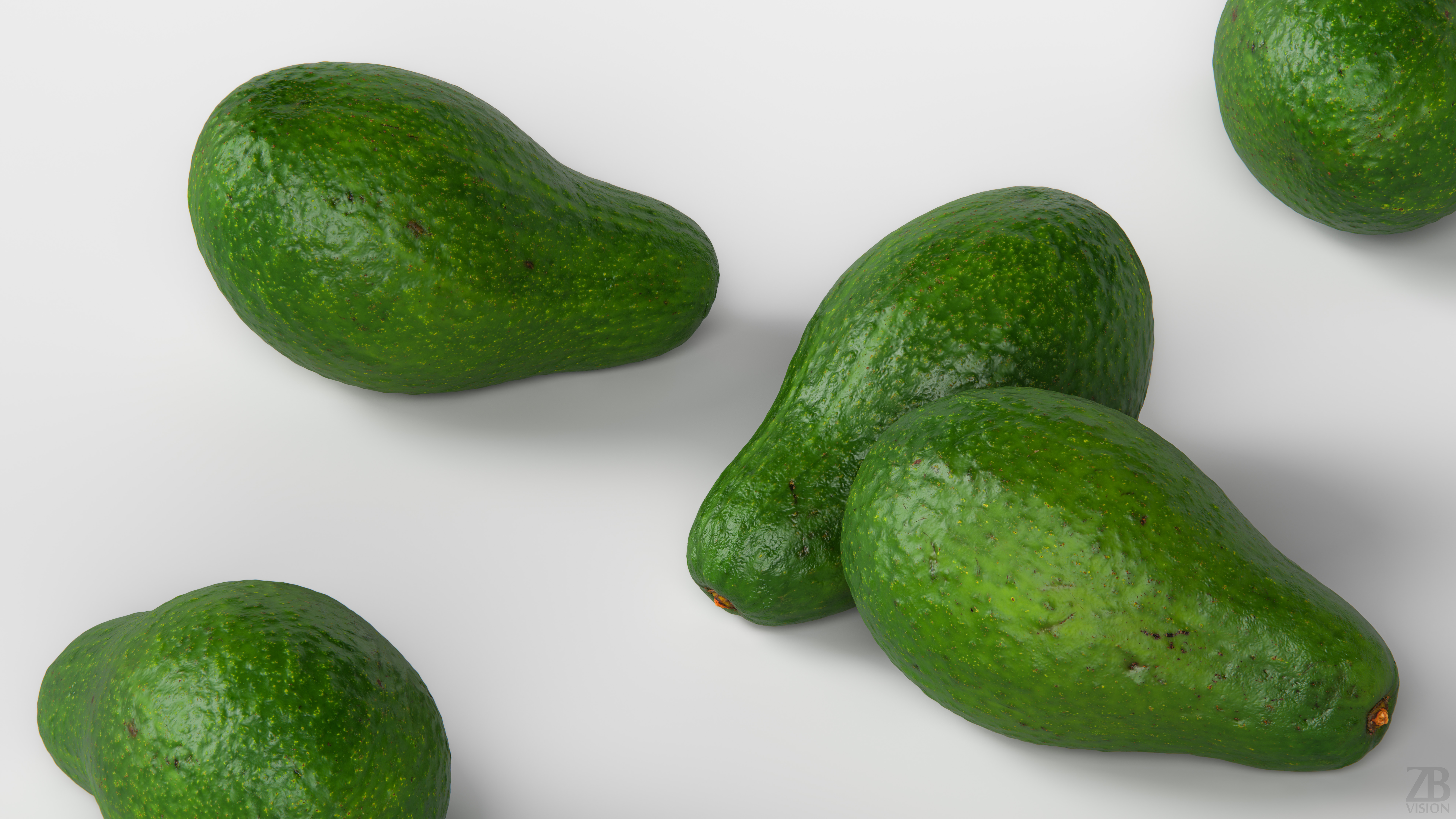 5 maps are supplied with this model. 8192×8192 PNGs and downsampled versions in 2048×2048 JPGs. The maps include ao, diffuse, glossiness, normal and displacement(tif). A 16K diffuse texture map is also included. The avocado model is uvw unwrapped.