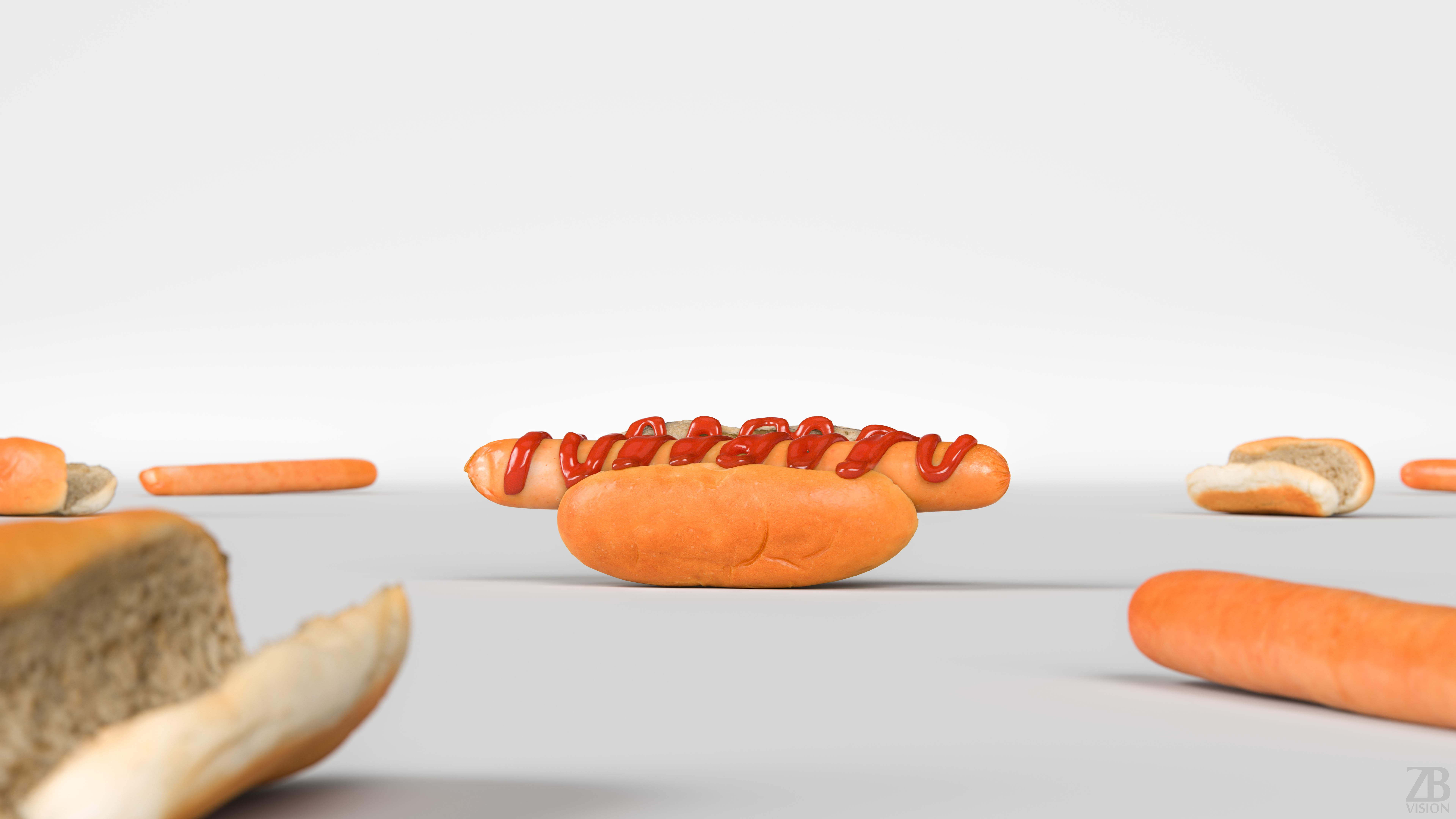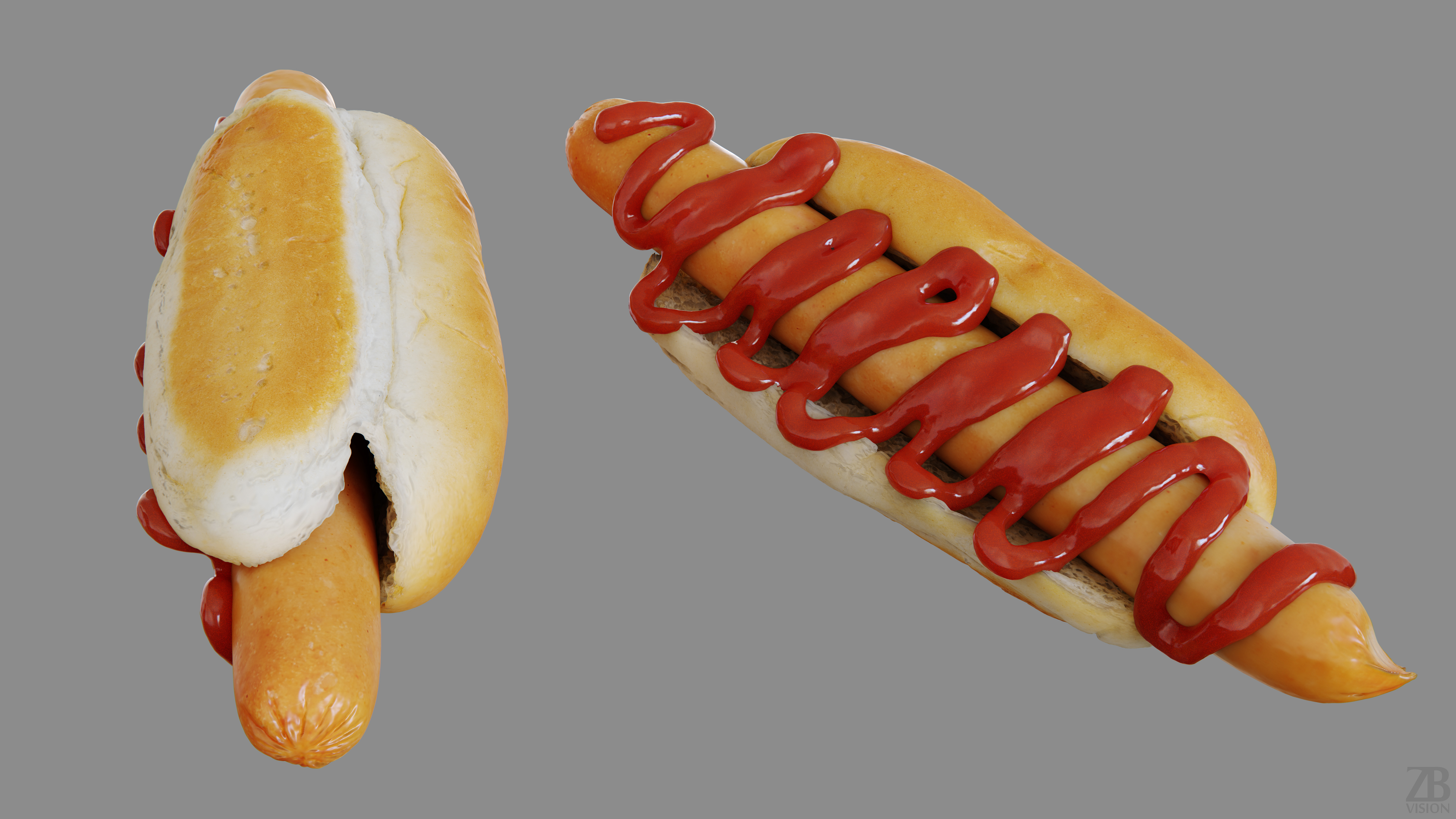 This is a 3d model of a hotdog. It was scanned and prepared for photorealistic renderings, close-ups, stills and animation. The hot dog model is ready to be inserted in your scene out of the box.