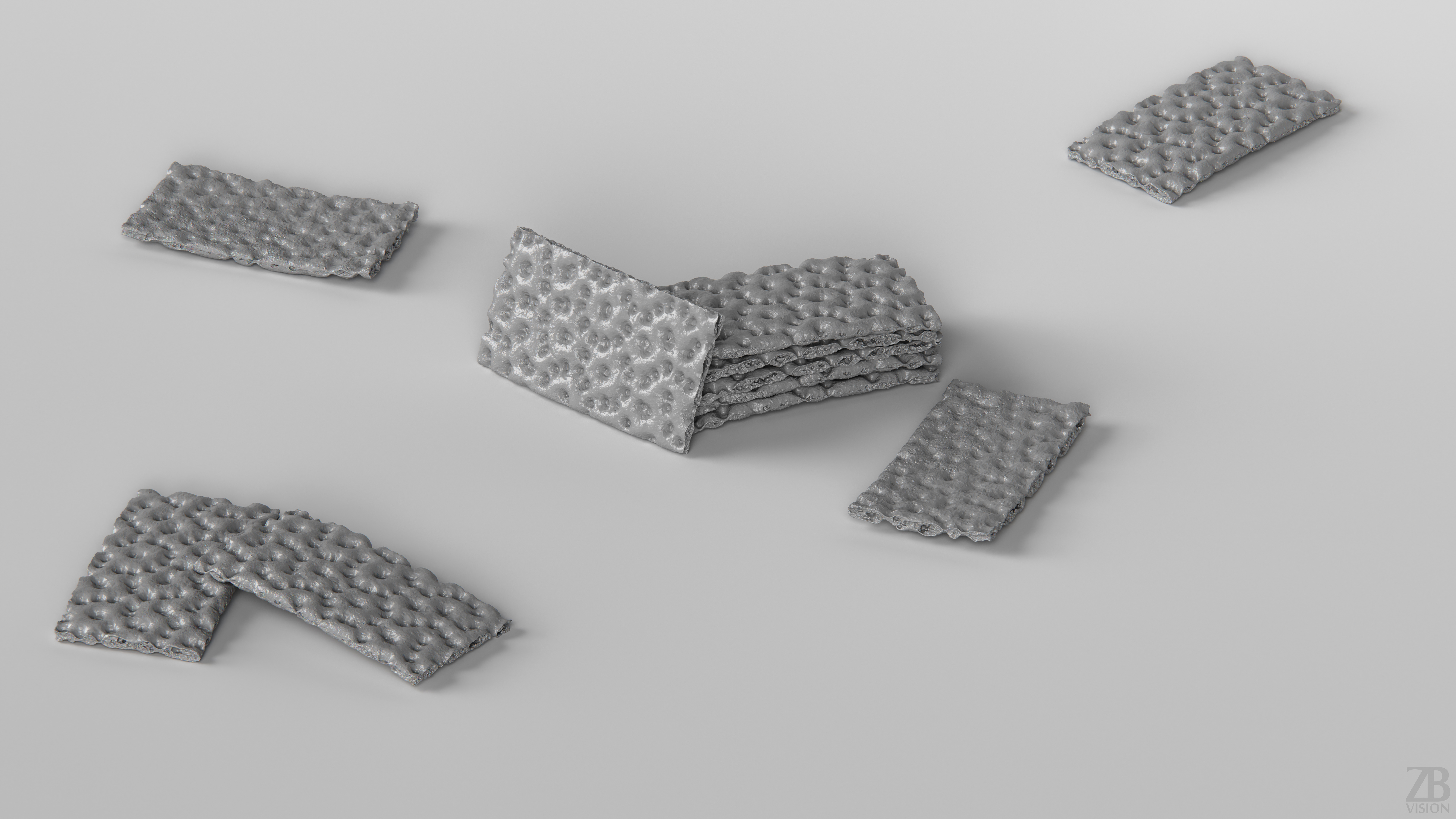 This is a 3d model of a crispbread. It was scanned and prepared for photorealistic renderings, close-ups, stills and animation. The crispbread model is ready to be inserted in your scene out of the box.