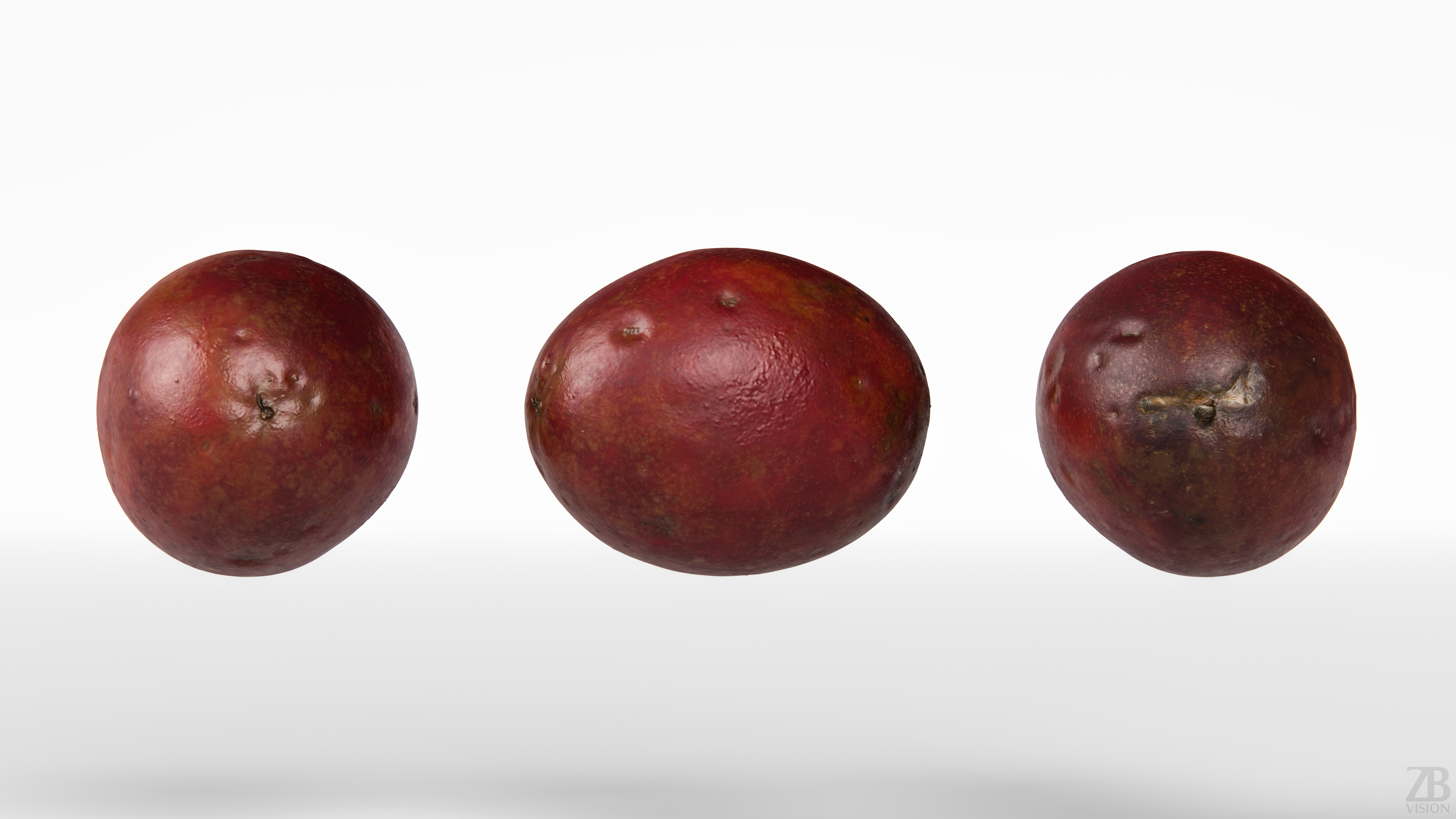 The passion fruit model is presented as single mesh in 2 versions: low and high. Mesh is quad based. Base low model polycount is 896. High detail model included in .max, .fbx, .c4d, .stl and .obj formats. High detail model has 917k quads. The raw scan mesh is also provided in .obj format.
