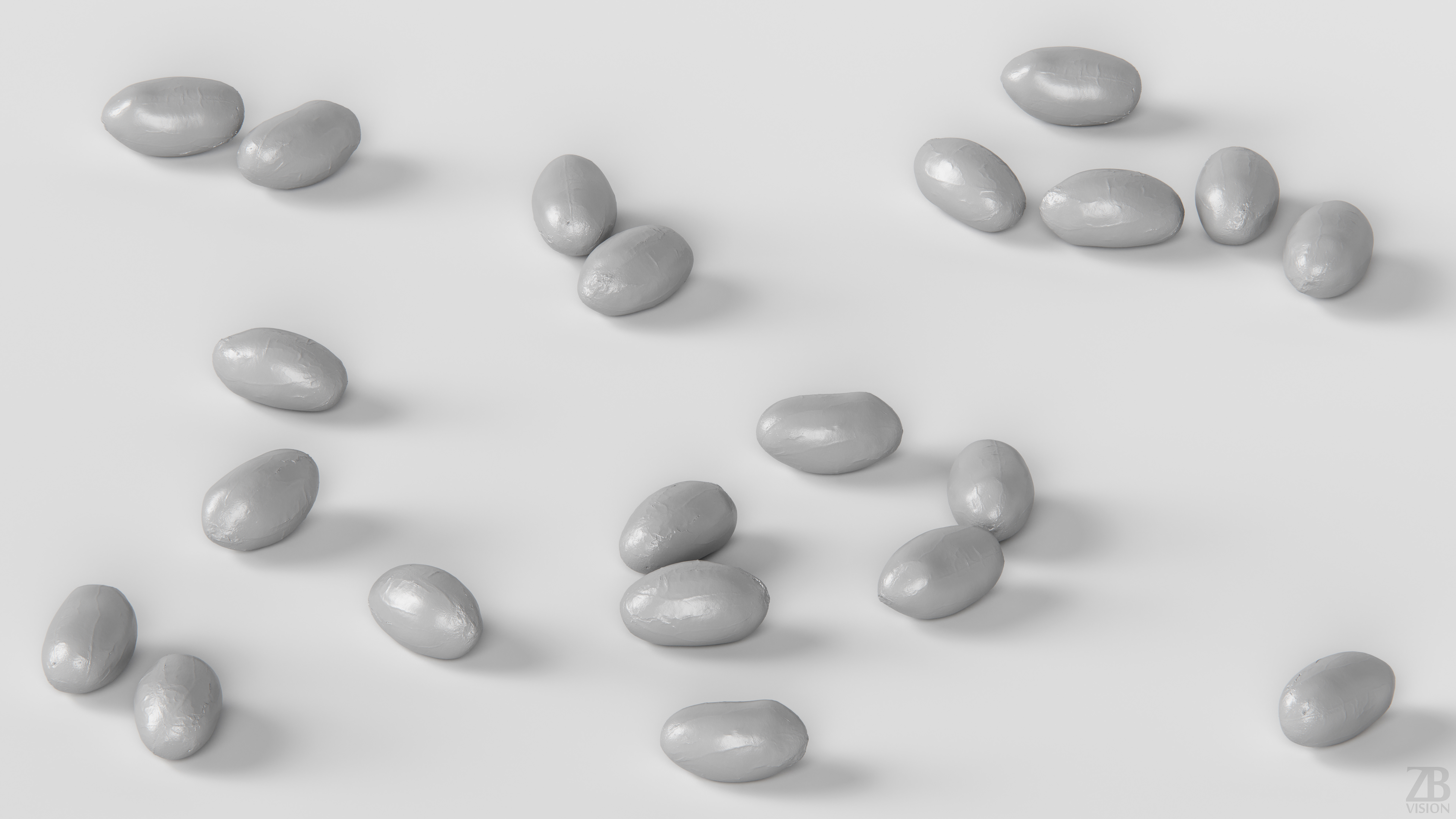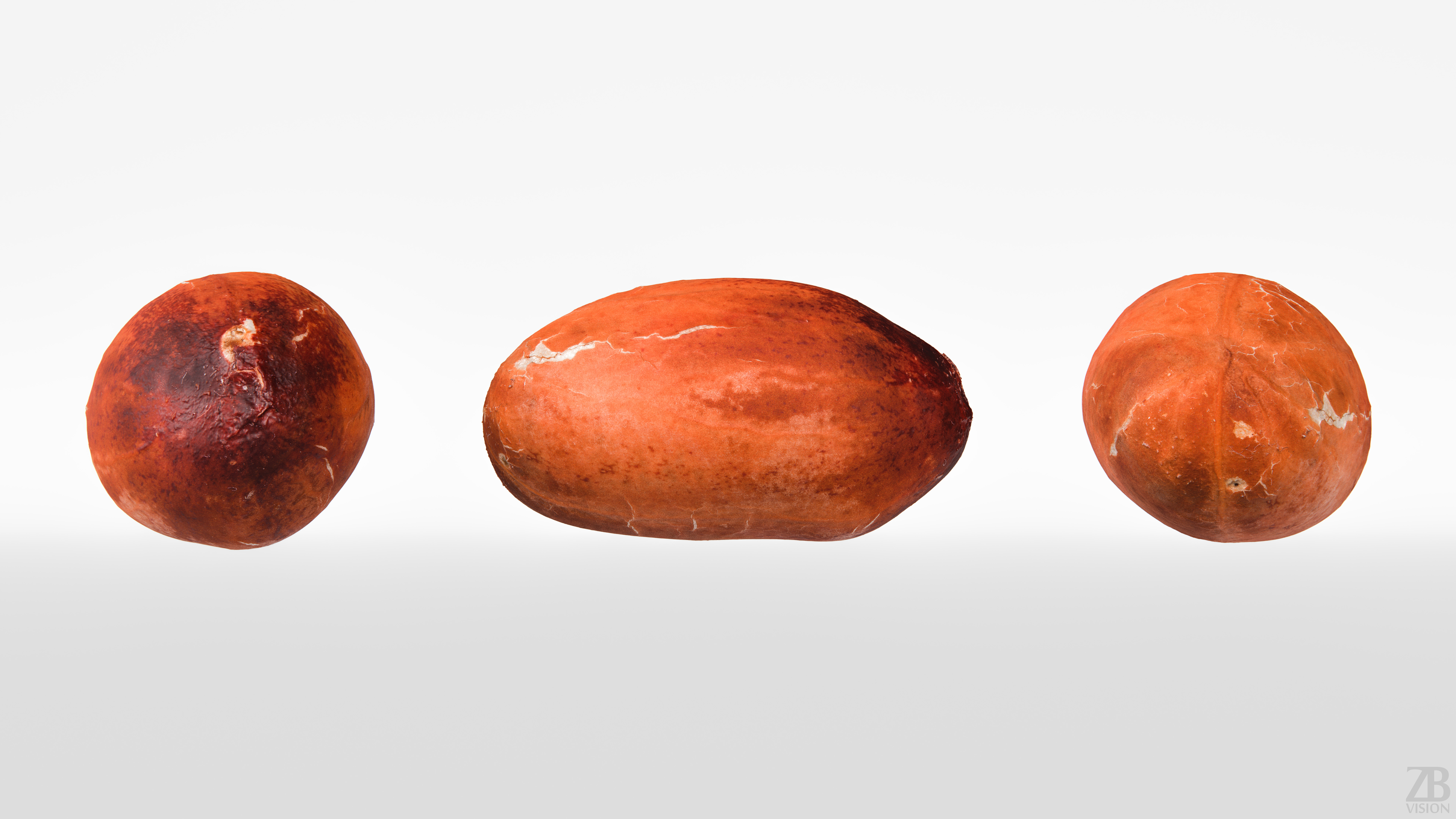 The peanut model is presented as single mesh in 2 versions: low and high. Mesh is quad based. Base low model polycount is 576. High detail model included in .max, .fbx, .c4d, .stl and .obj formats. High detail model has 589k quads. The raw scan mesh is also provided in .obj format. Detail level of the raw scan visible in the red clay previews.